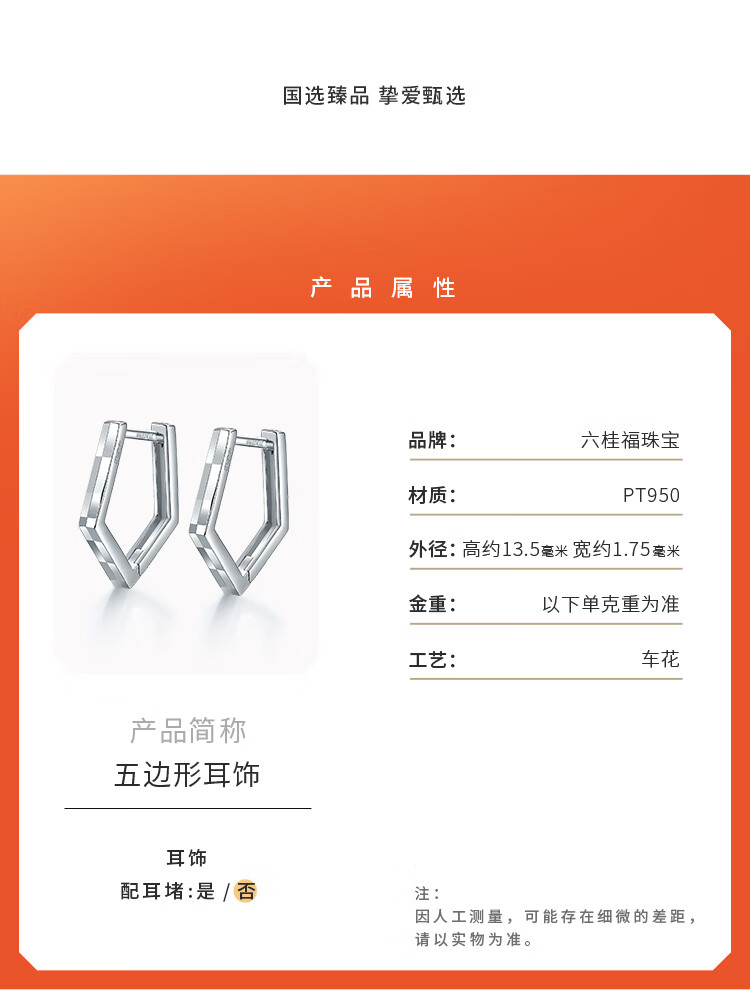 Liuguifu Jewelry Platinum Earrings Women's PT950 Earrings Pentagon Earrings Car Flower Sparkling Earrings Birthday Gift 2.05g