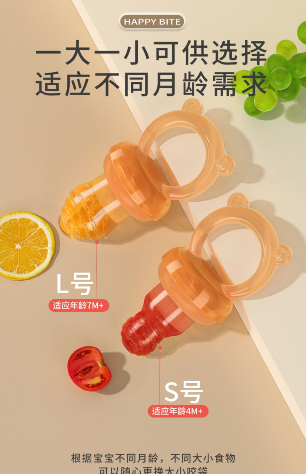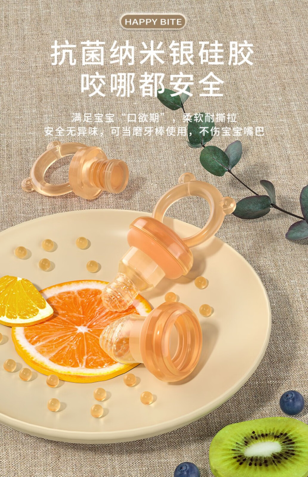 CLCEY Baby Chewable Fruit Food Complementary Fruit and Vegetable Chew Bag Full Silicone Teether Toy 1 Pack S Size - Chewable + Pacifier Set +