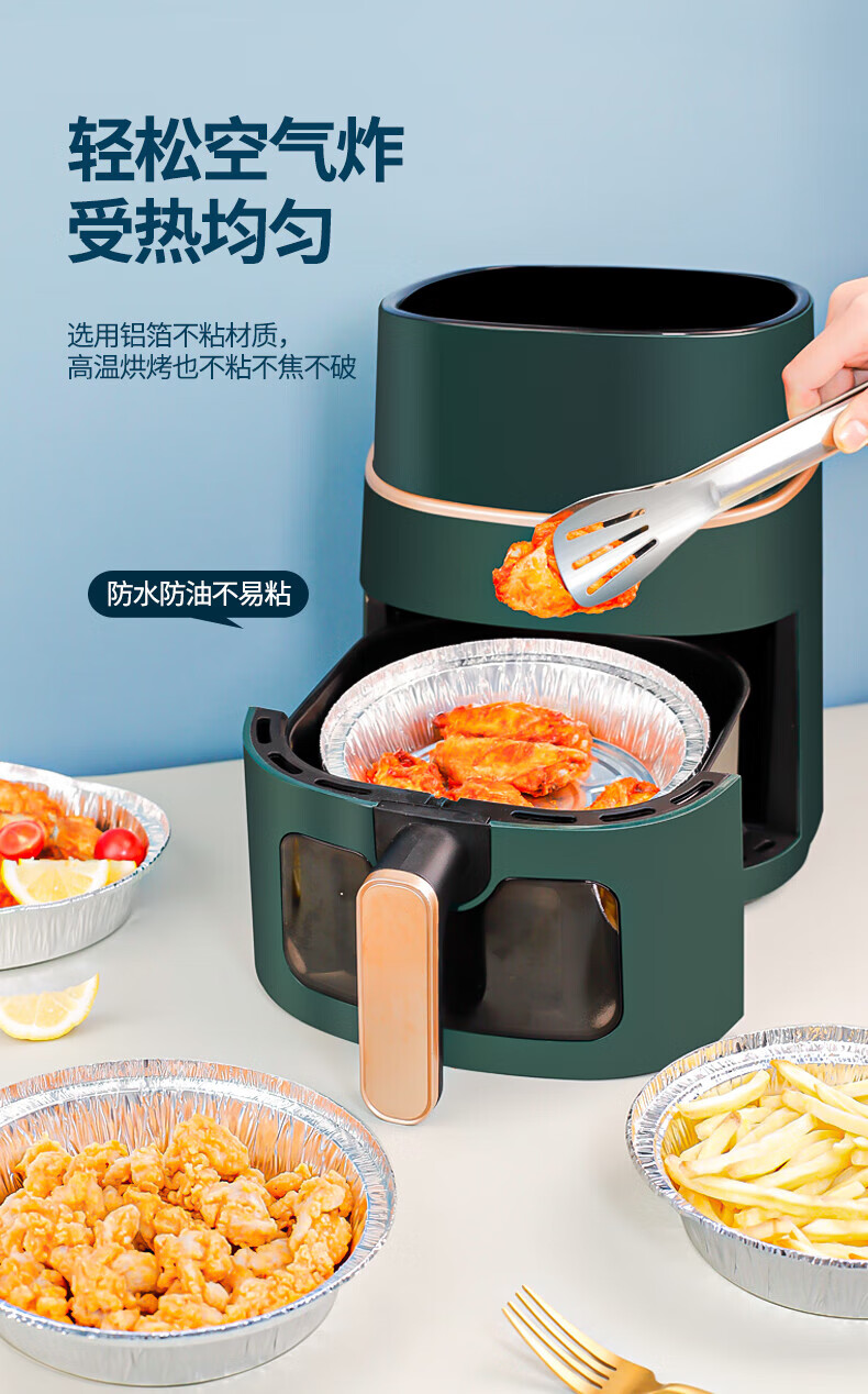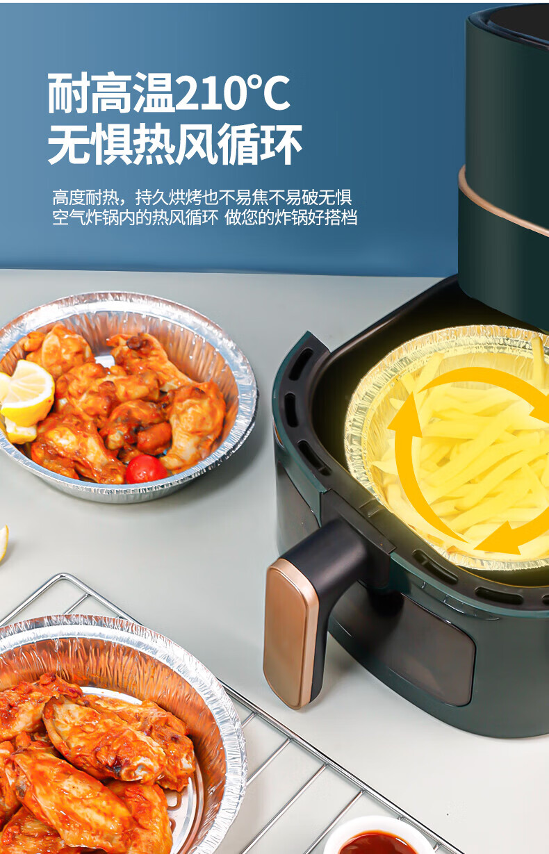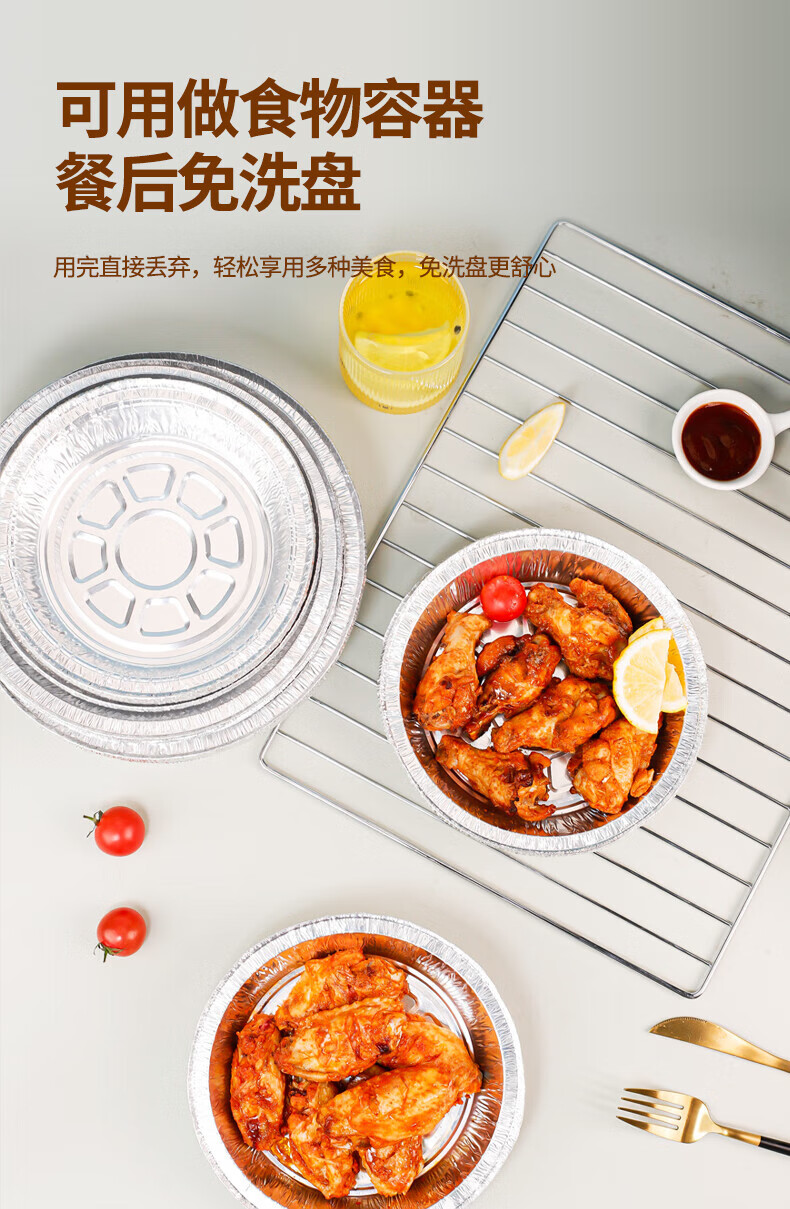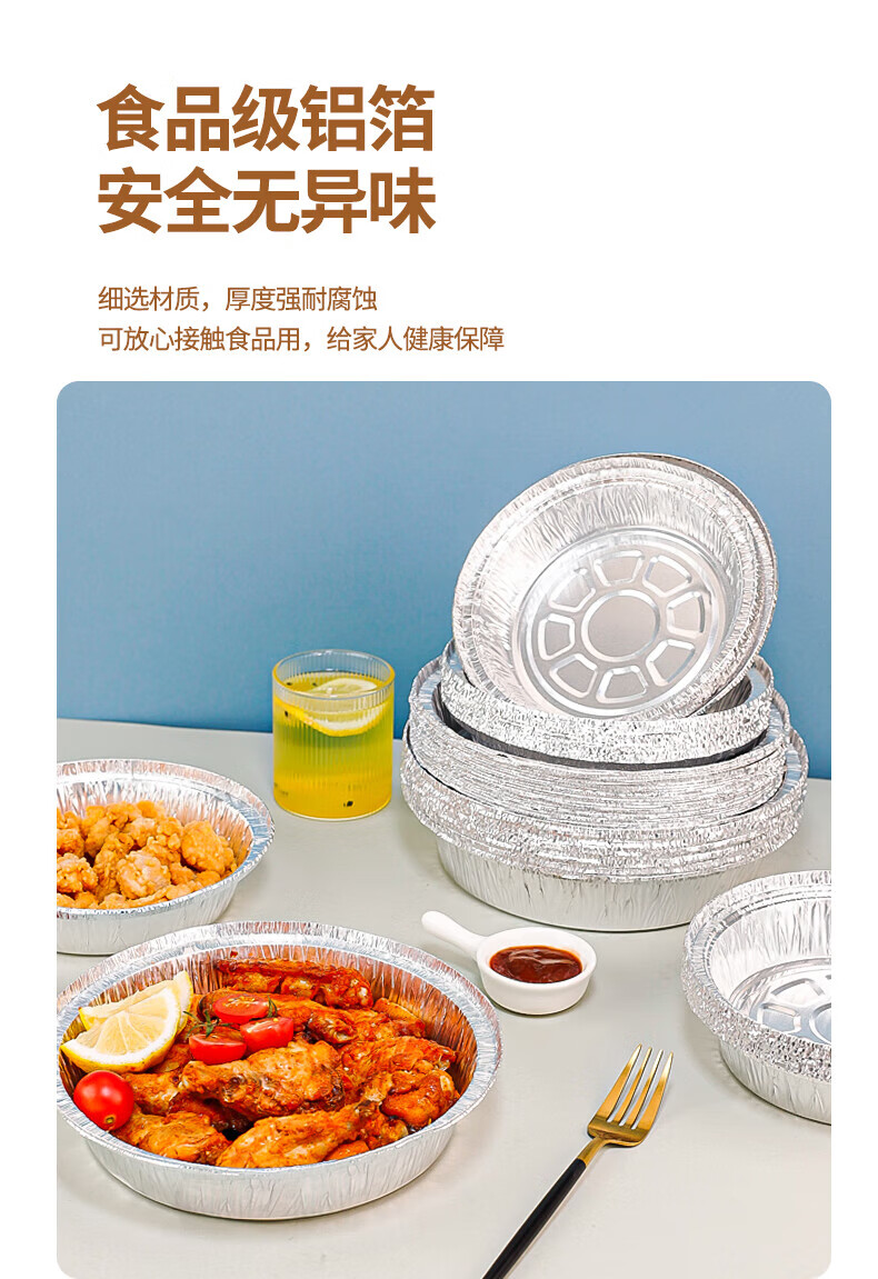 Air fryer tinfoil tray special paper household thickened barbecue box tinfoil box round aluminum foil tinfoil bowl 8 inches / diameter 20CM 30 pieces