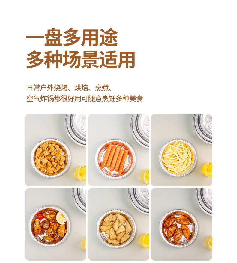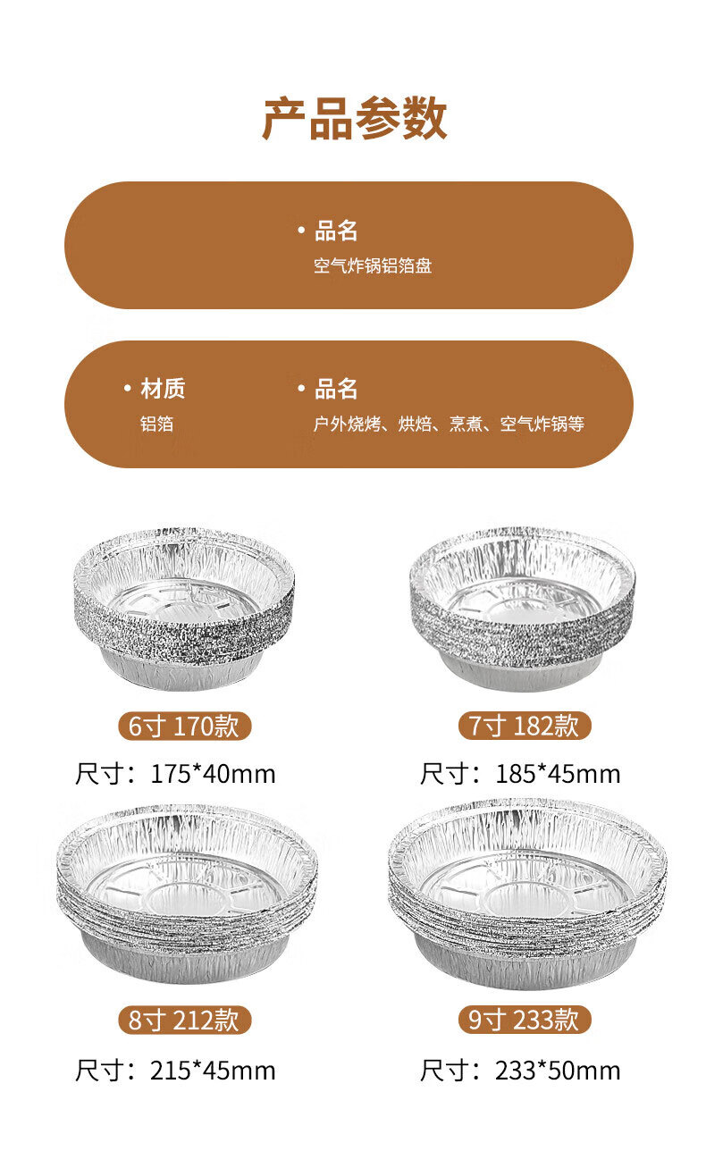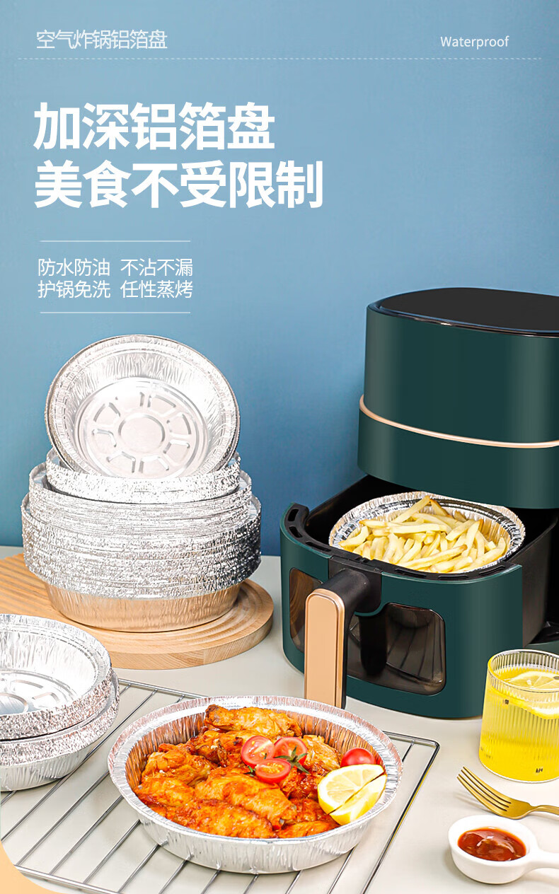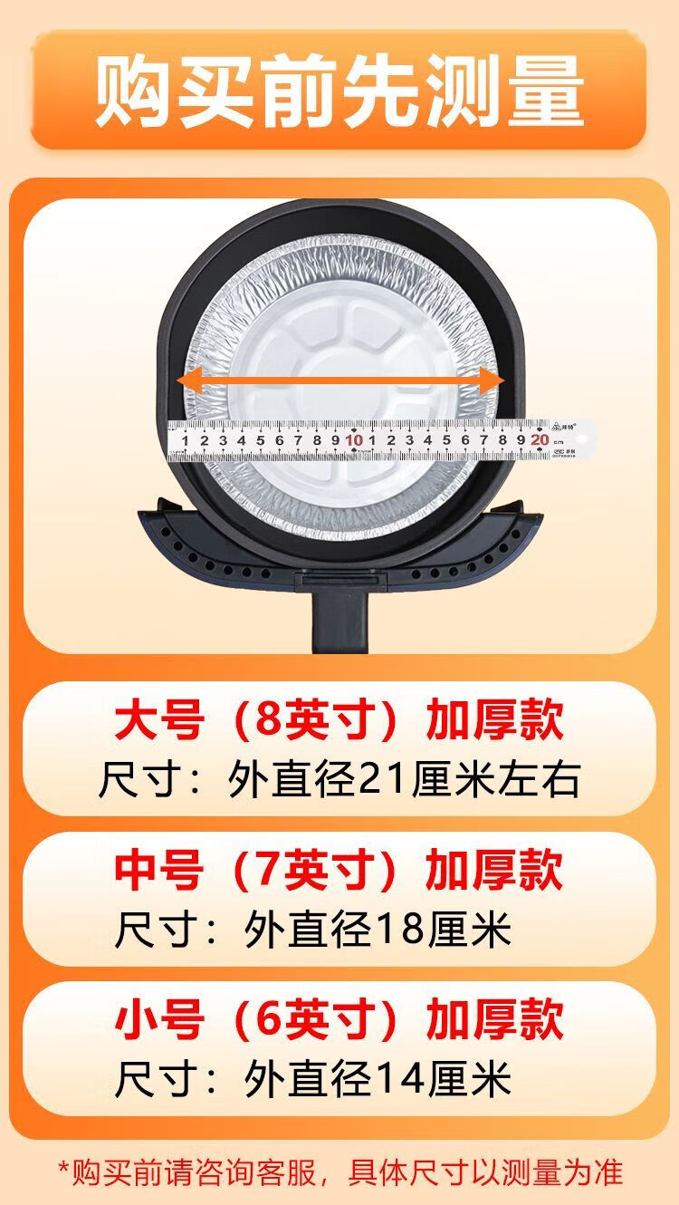 Air fryer tinfoil tray special paper household thickened barbecue box tinfoil box round aluminum foil tinfoil bowl 8 inches / diameter 20CM 30 pieces