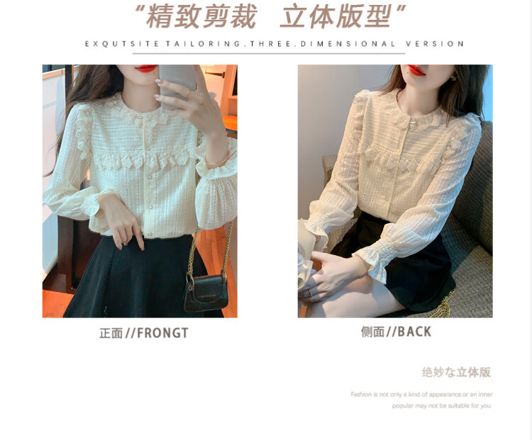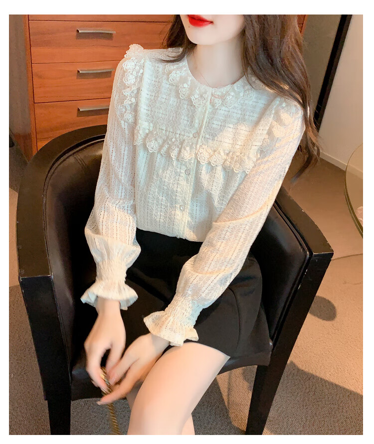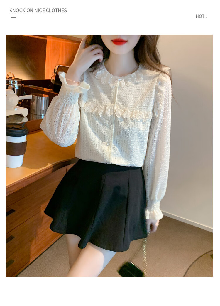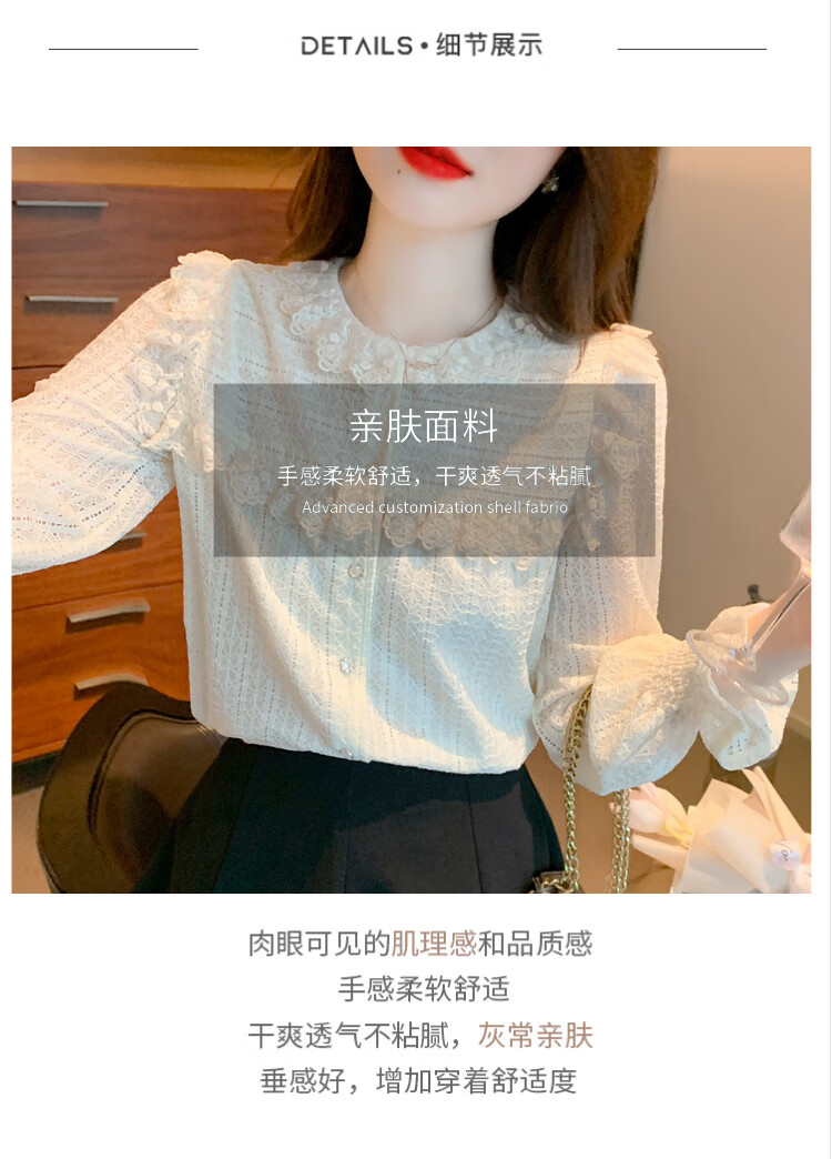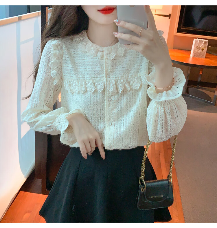 Pierre Cardin bottoming shirt for women, velvet and thickened lace inner top, fashionable and fashionable shirt, autumn and winter 2025 new style, apricot M 165