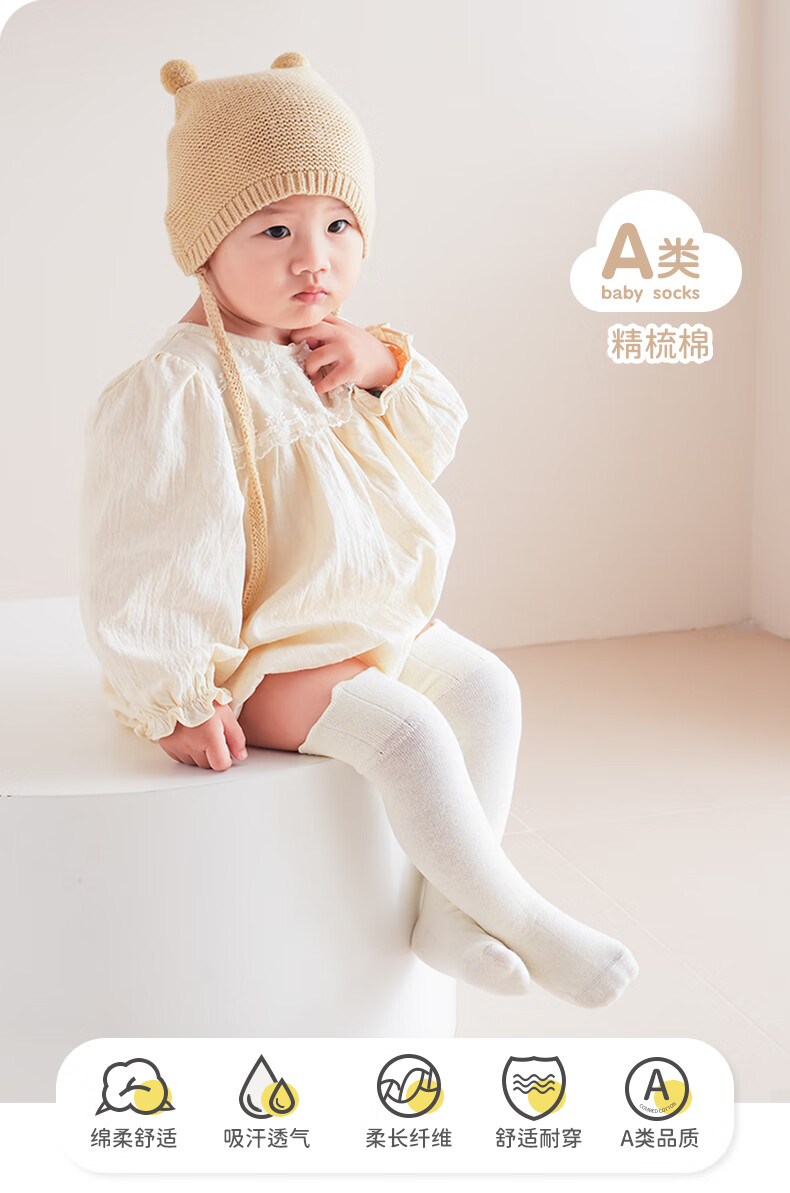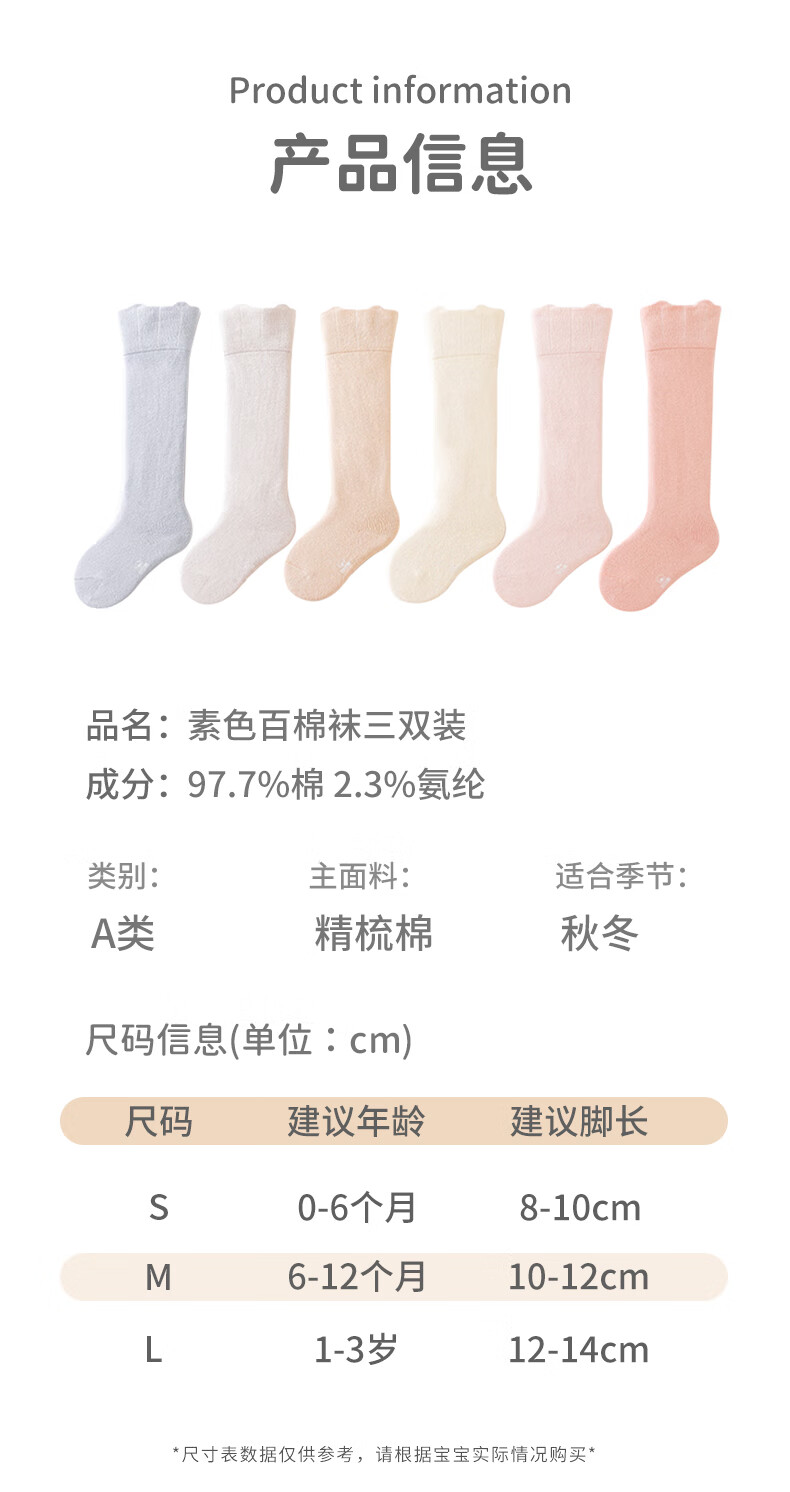Nanlu 3 pairs of autumn and winter pure cotton newborn baby stockings boneless loose mouth high socks baby over-the-knee cotton socks solid color 2079 baby boy 3 pairs S recommended 0-6 months