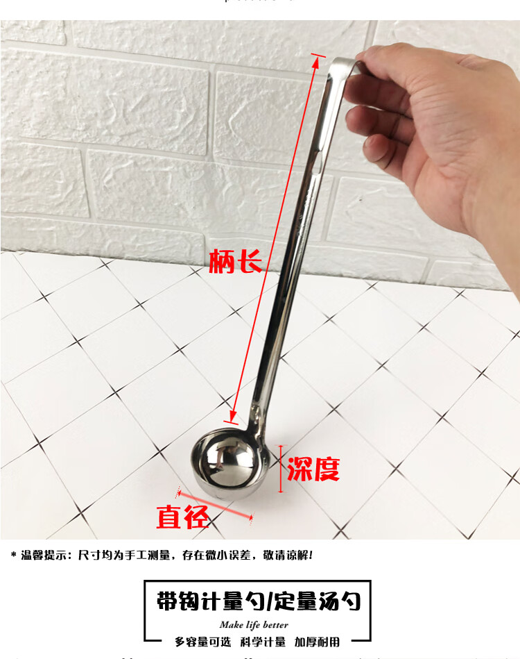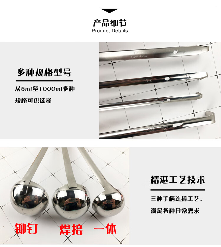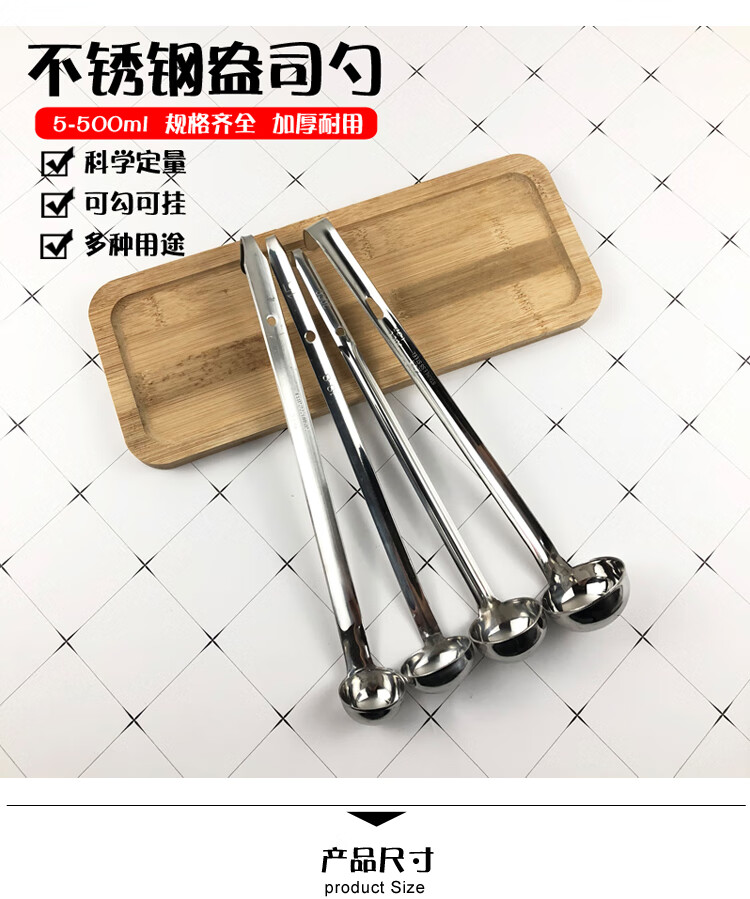 Molin stainless steel measuring spoon with hook 5-1000ml quantitative scale spoon milk tea measuring spoon soup spoon ounce spoon 201 welding 20 ml