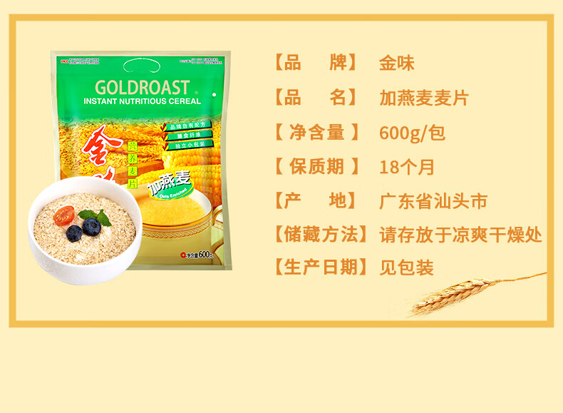 Golden flavor golden flavor original brewed oatmeal instant lazy instant oat meal replacement brewed nutritious breakfast independent bag classic original flavor (30g/bag*20 bags) bag 600g
