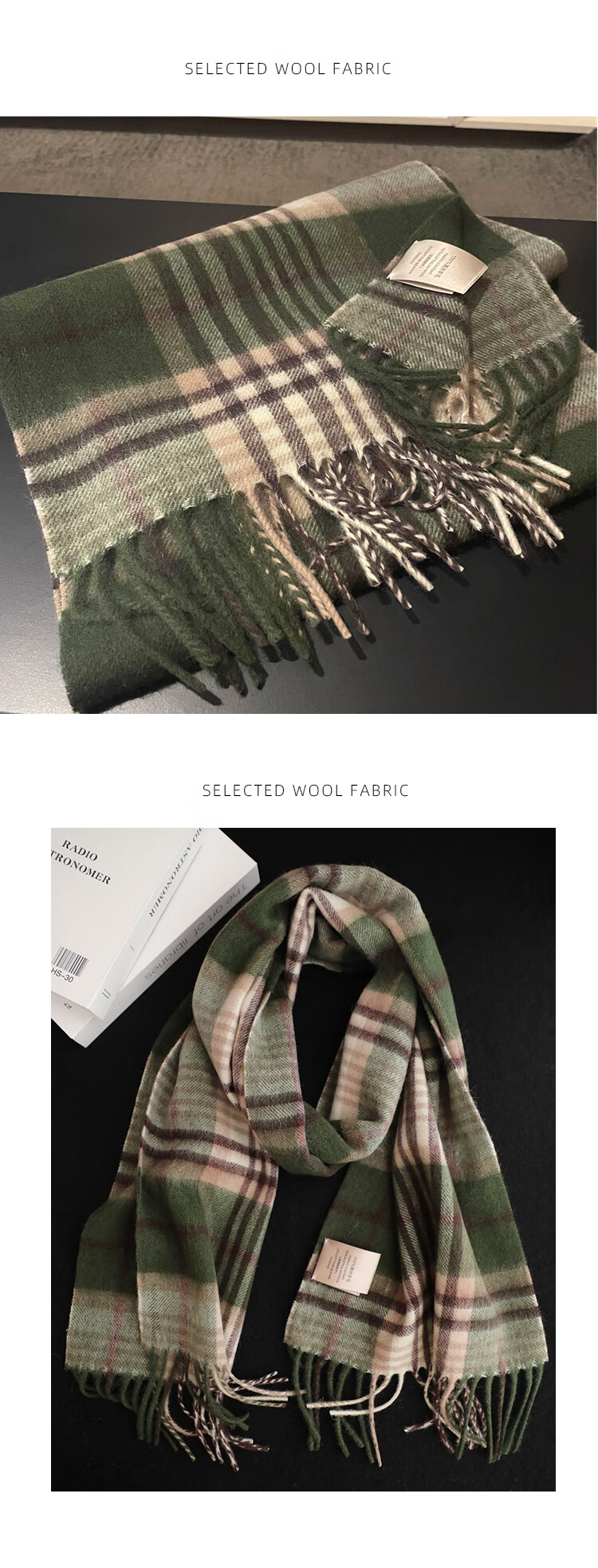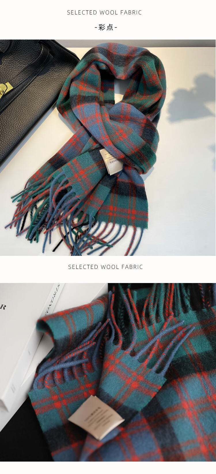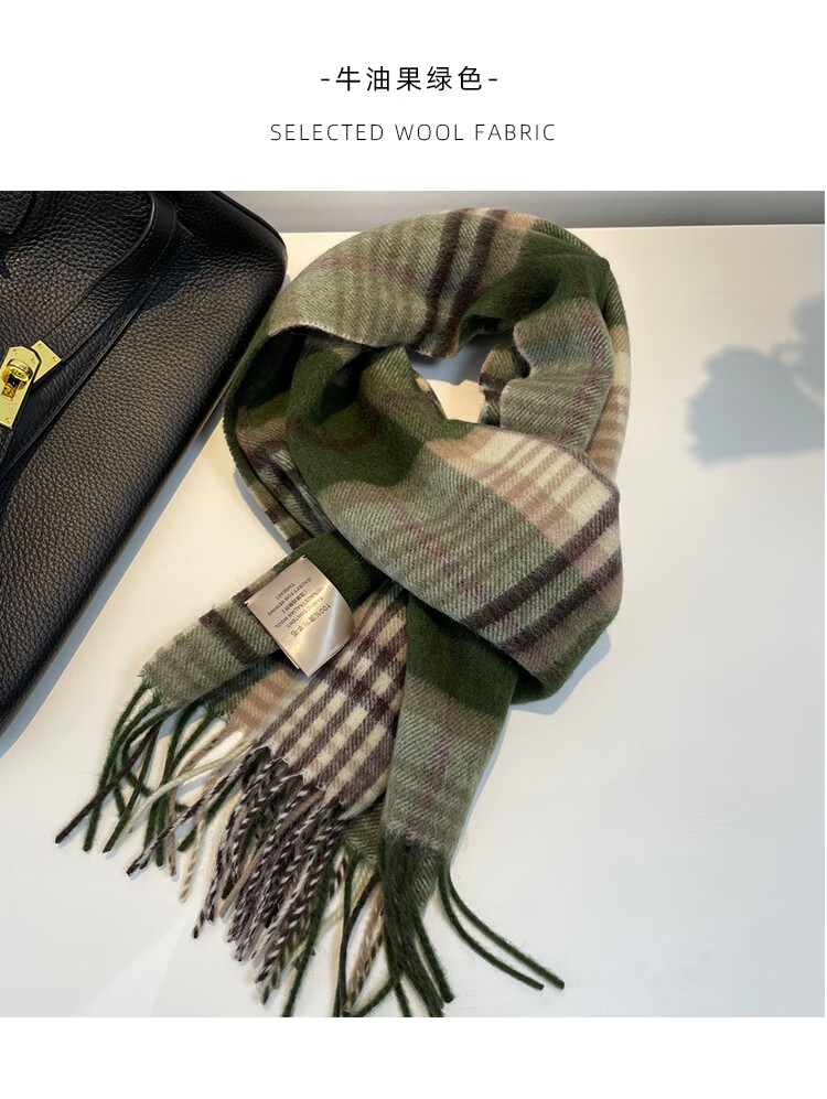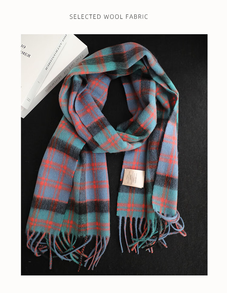 Arctic velvet pure wool scarf for men and women, unisex style Australian wool avocado green British versatile winter warm scarf pure blue