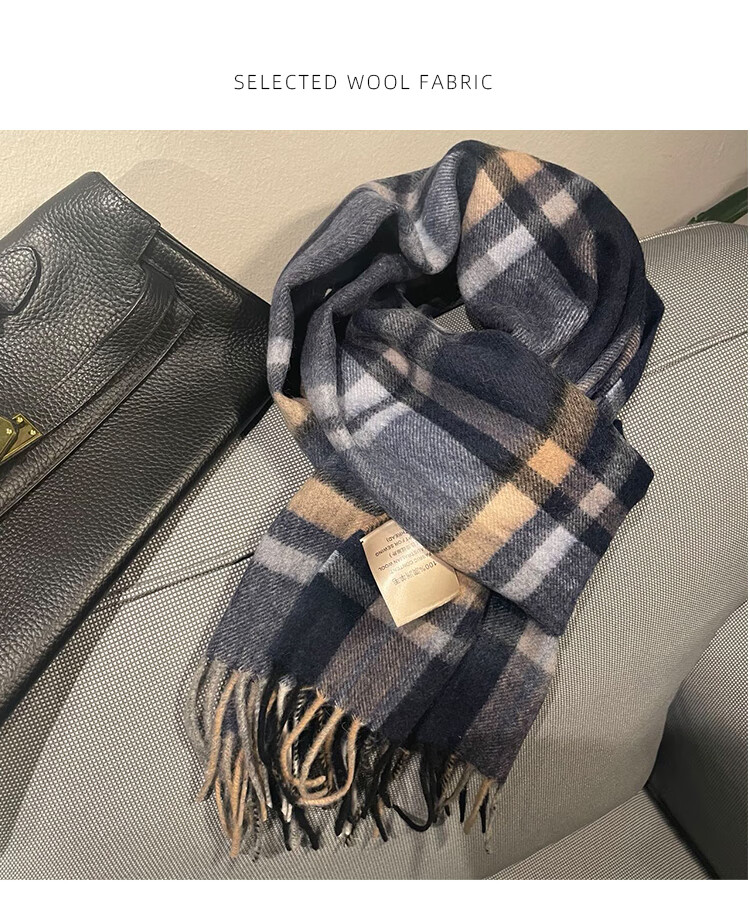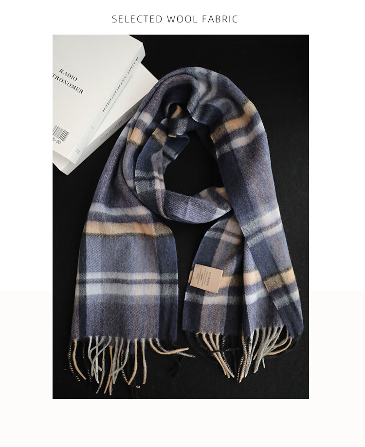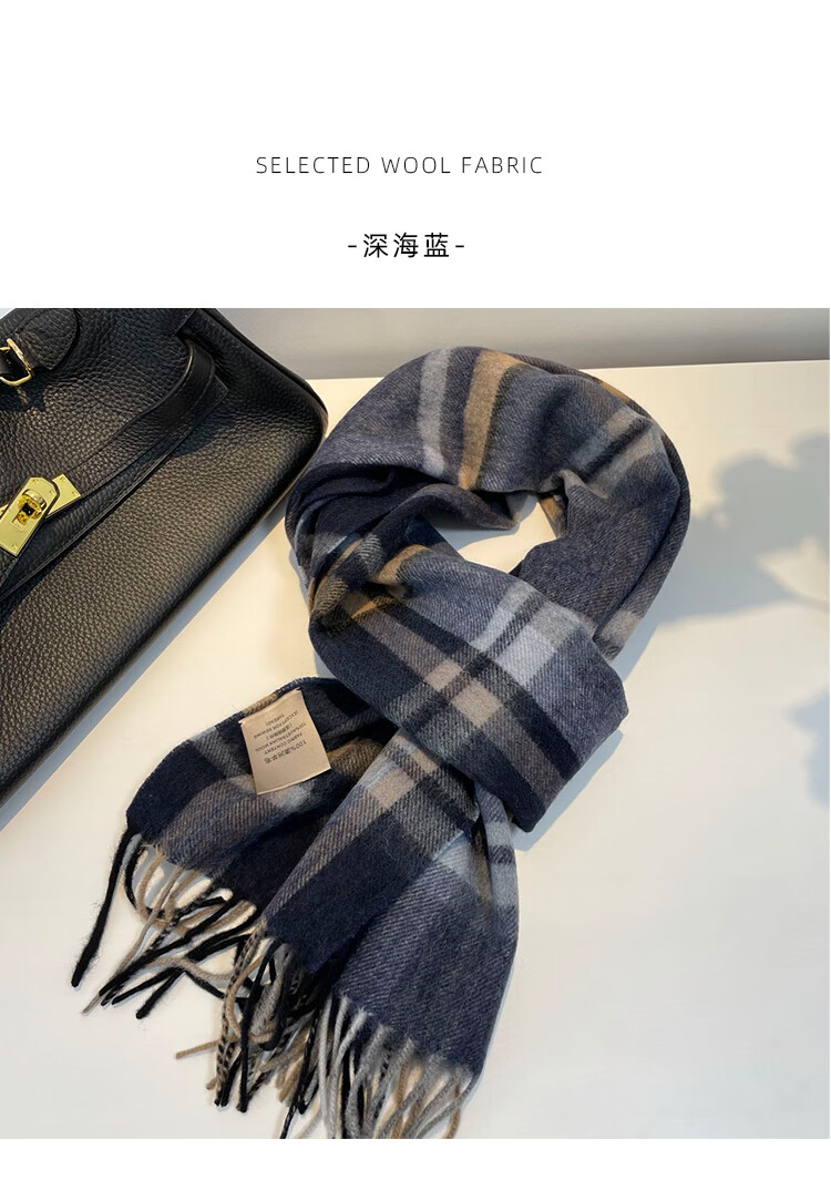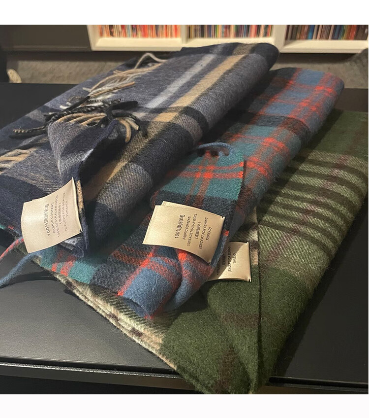 Arctic velvet pure wool scarf for men and women, unisex style Australian wool avocado green British versatile winter warm scarf pure blue