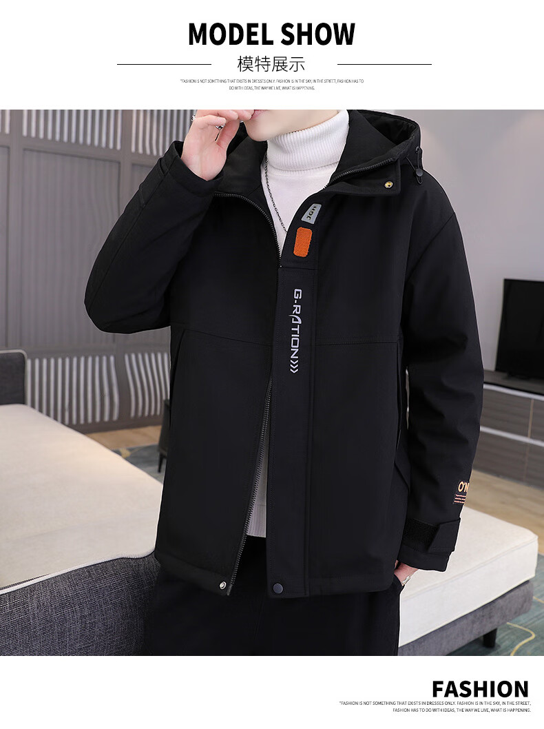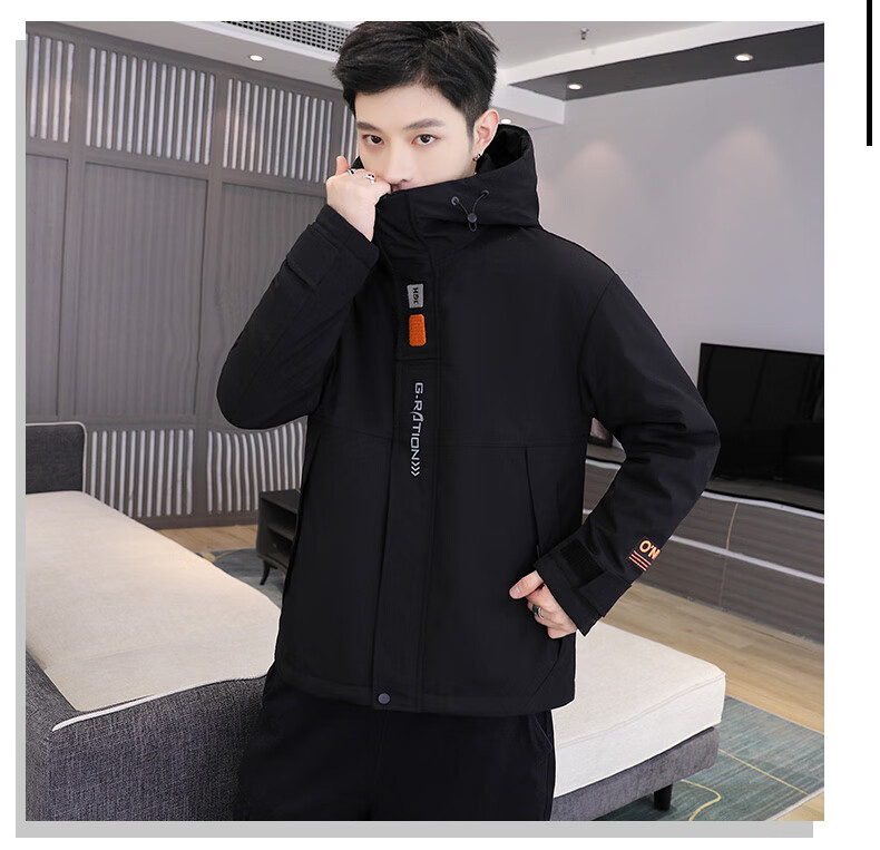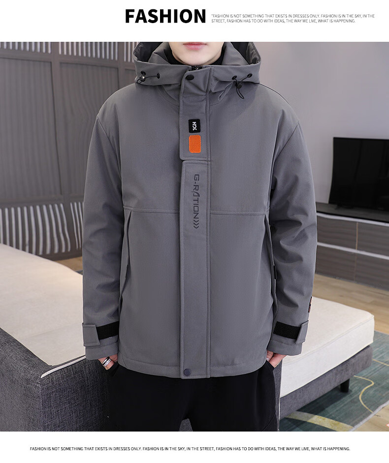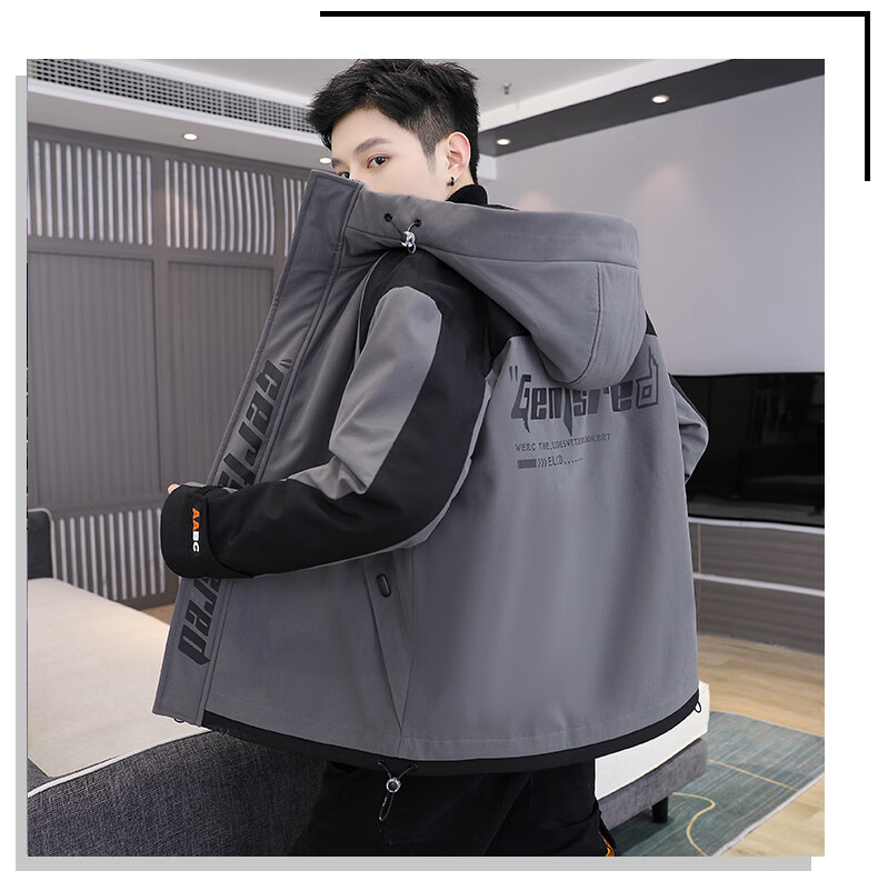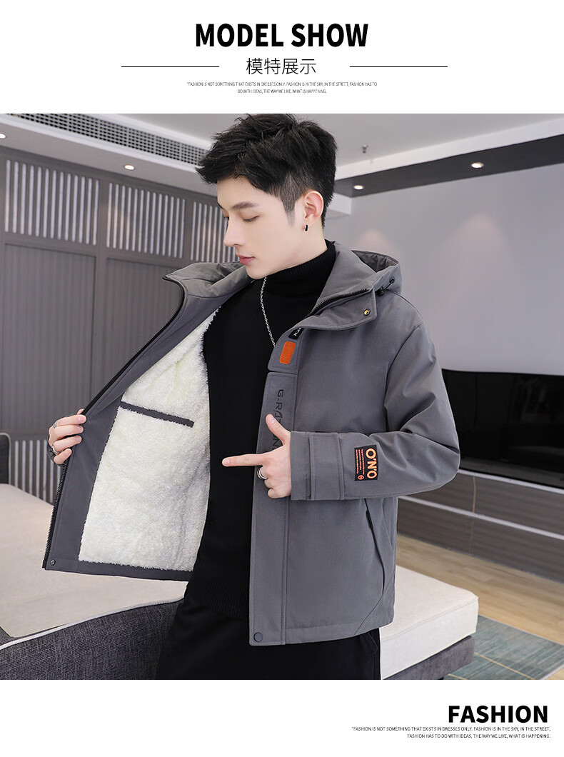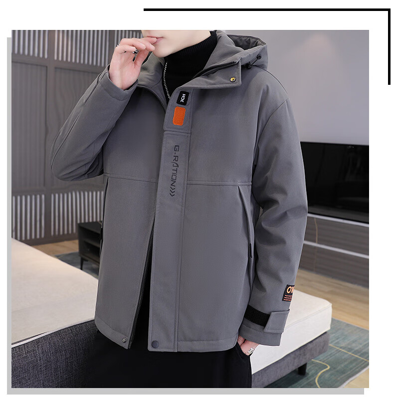 Woodpecker cotton coat men's winter cotton coat men's velvet thickened casual hooded men's down jacket men's charge men's wear dark gray M (recommended 90-115Jin Jin equals 0.5 kg)