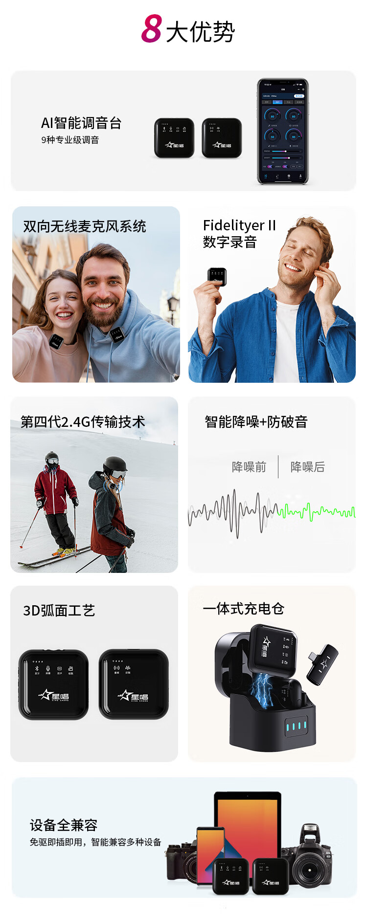 Xingshang V5MAX Wireless Lavalier Microphone Live Noise Reduction Recording Douyin Anchor Delivery PK Microphone Radio Microphone Outdoor Interview Vlog Shooting Little Bee Recording Equipment Microphone V5 Second Generation Double Model with Display + Charging Box