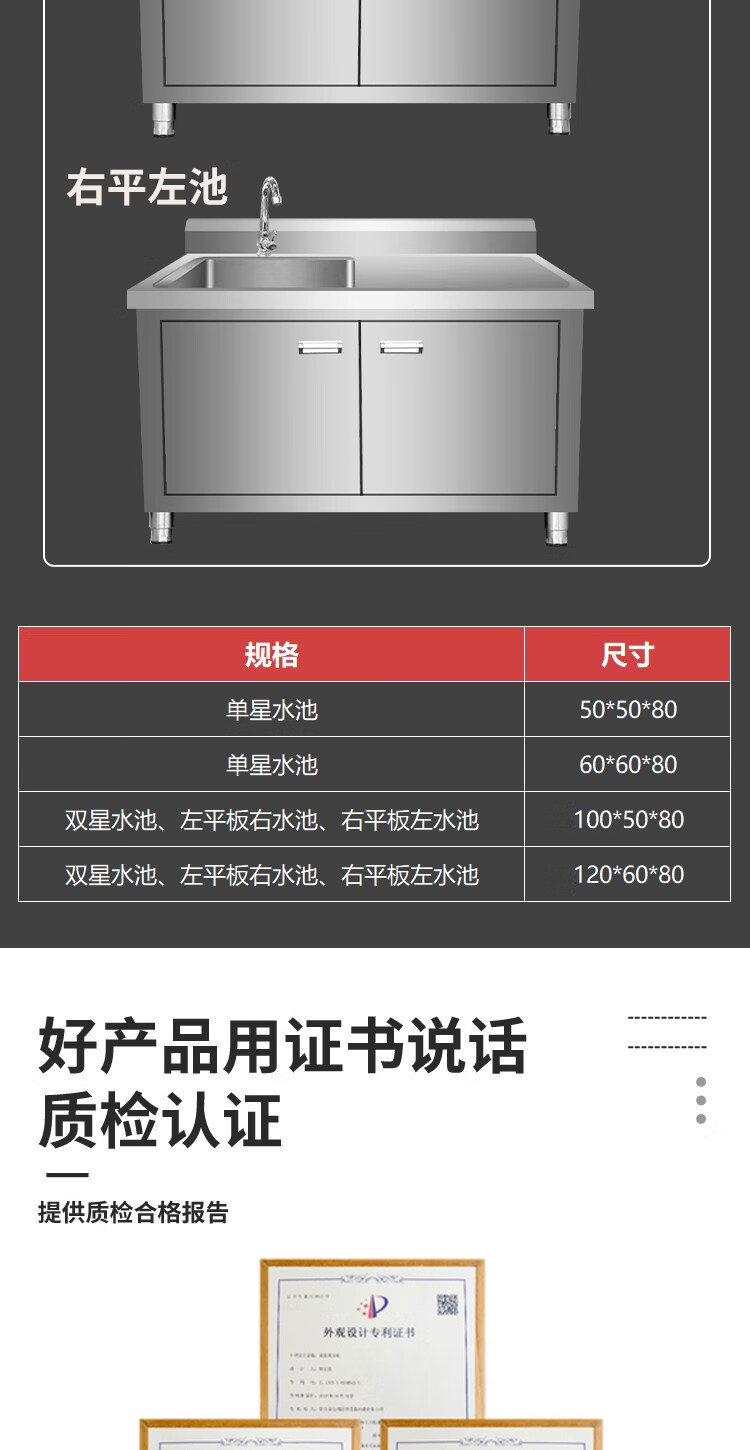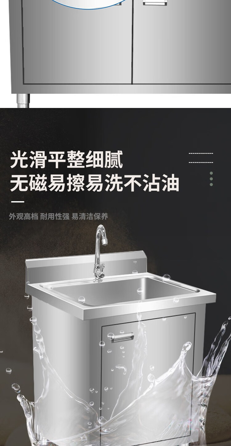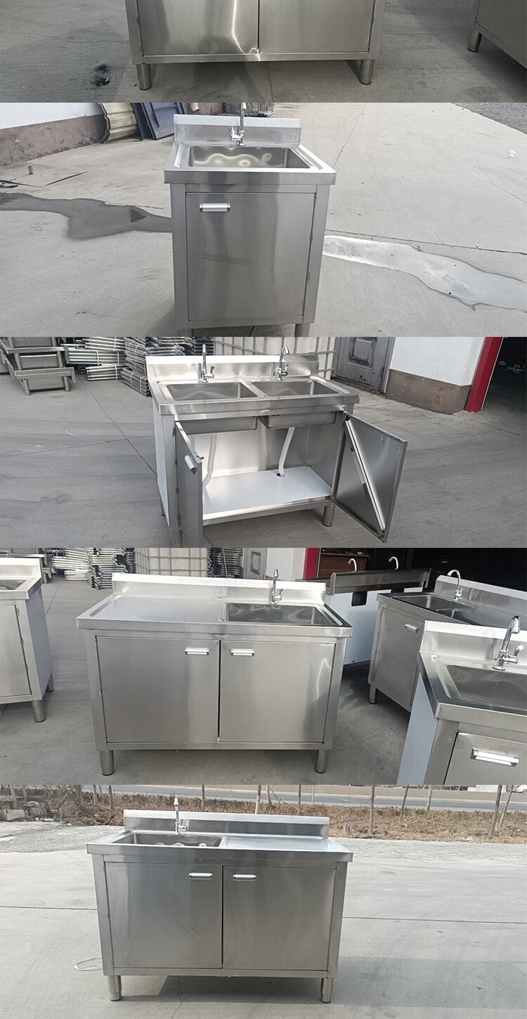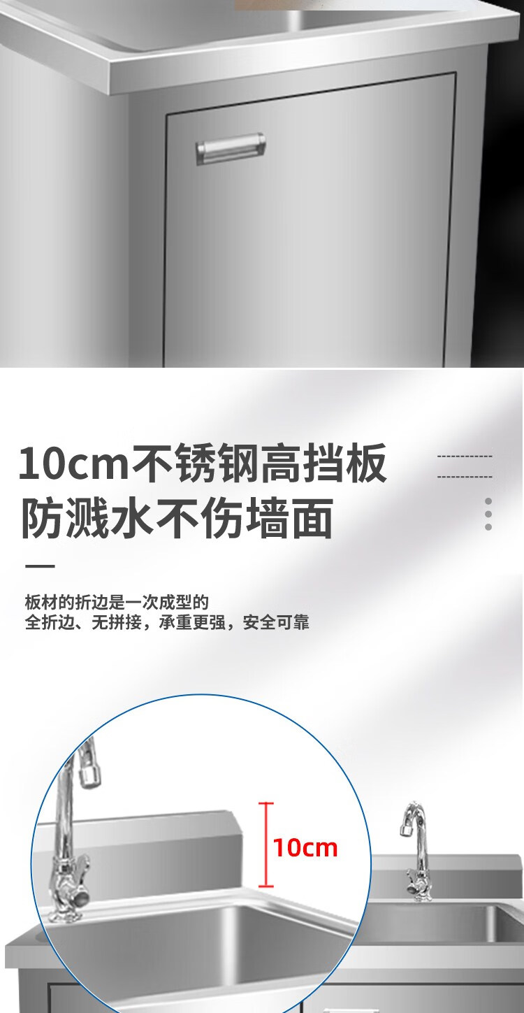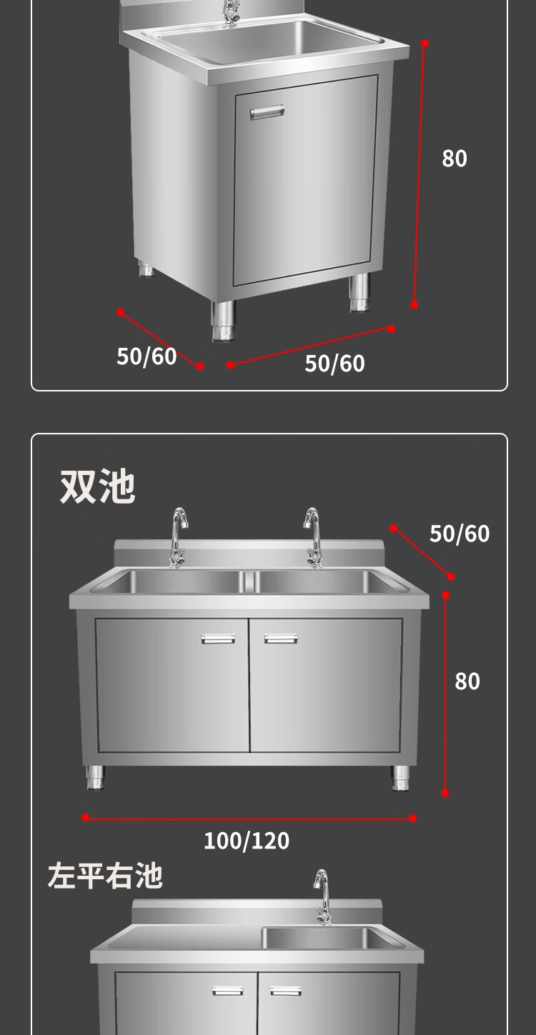 Kitchen stainless steel sink cabinet floor-standing integrated vegetable basin sink cabinet with operating table sink commercial 100*50*80 single pool left platform extra thick model none