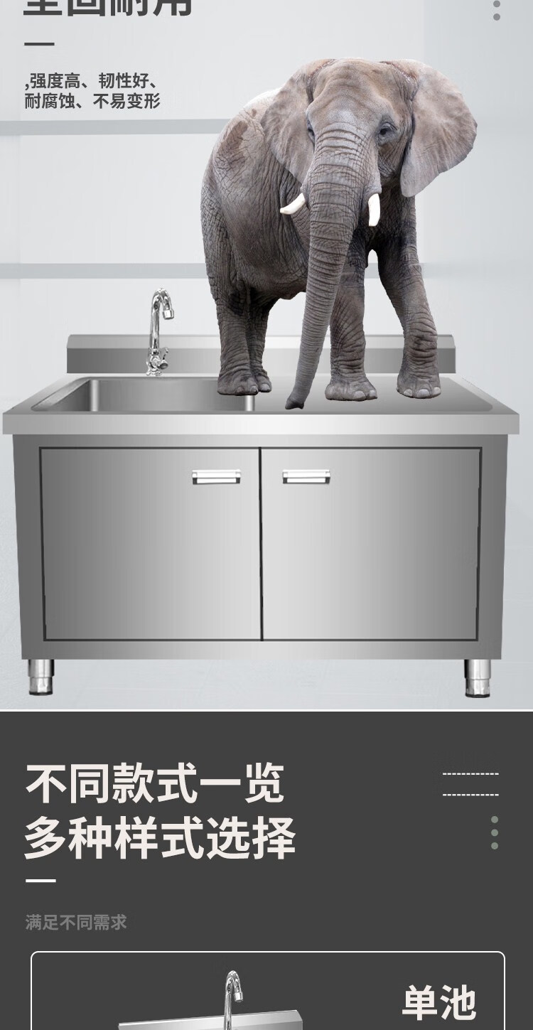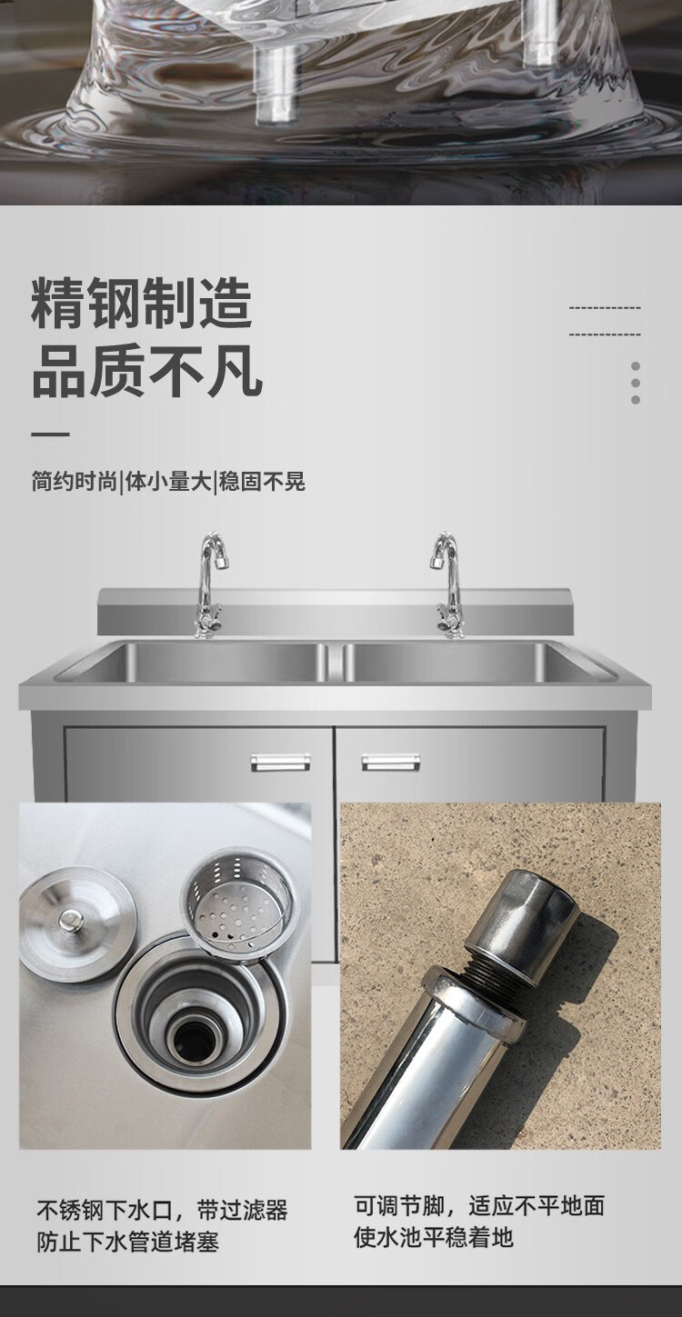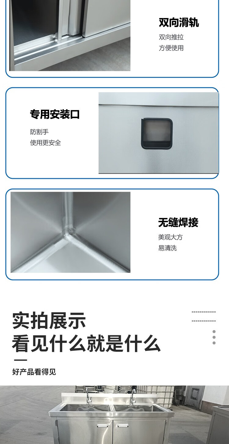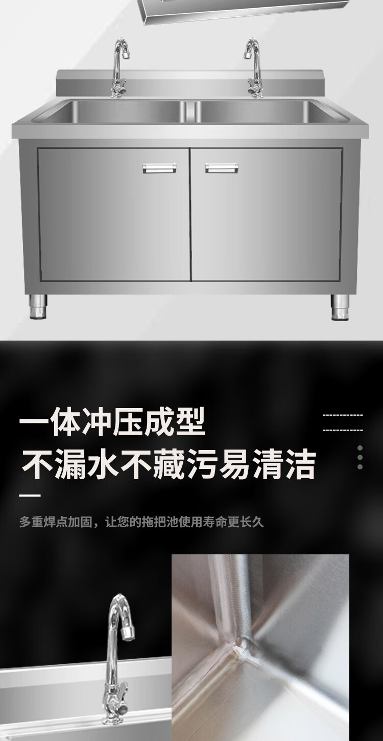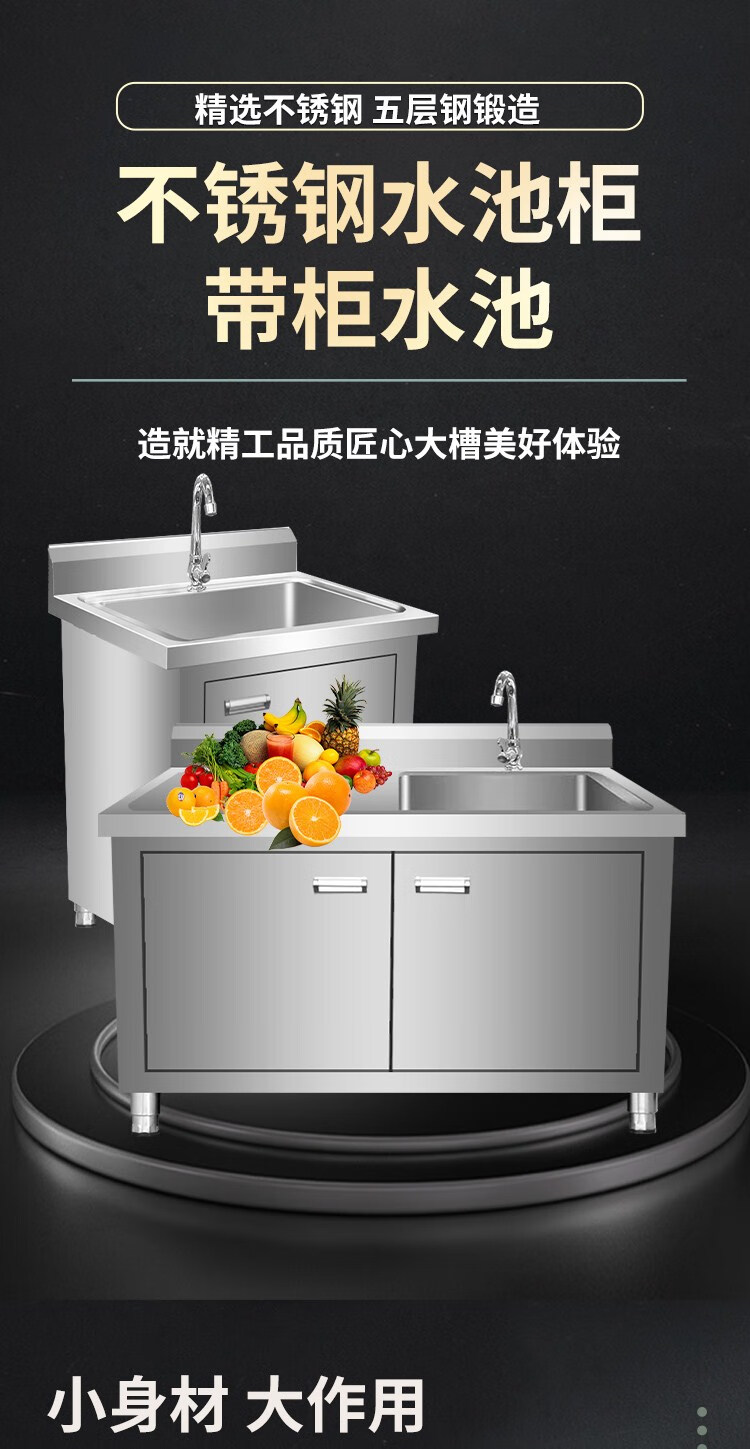 Kitchen stainless steel sink cabinet floor-standing integrated vegetable basin sink cabinet with operating table sink commercial 100*50*80 single pool left platform extra thick model none