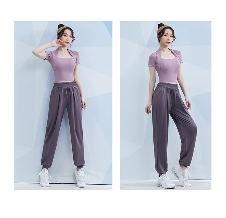 Nordstein Yoga Wear Suit Women's Spring and Autumn Professional Running Sports Long Sleeve New High-end Pilates Temperament Fitness Wear Light Purple Five-piece Set M