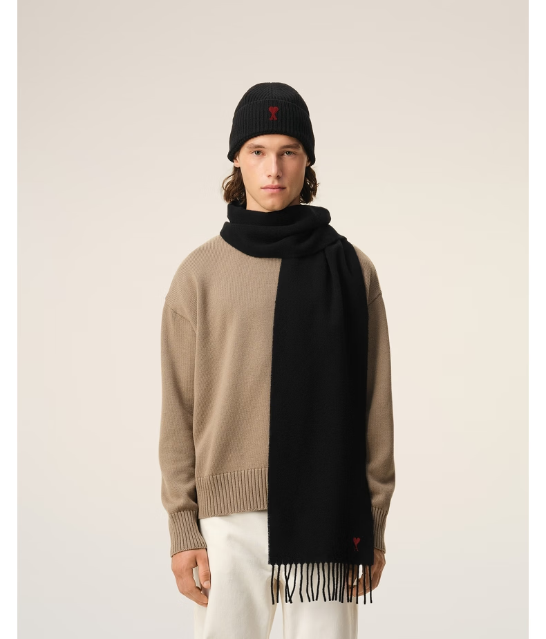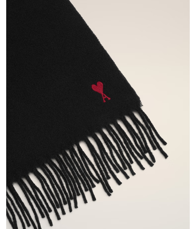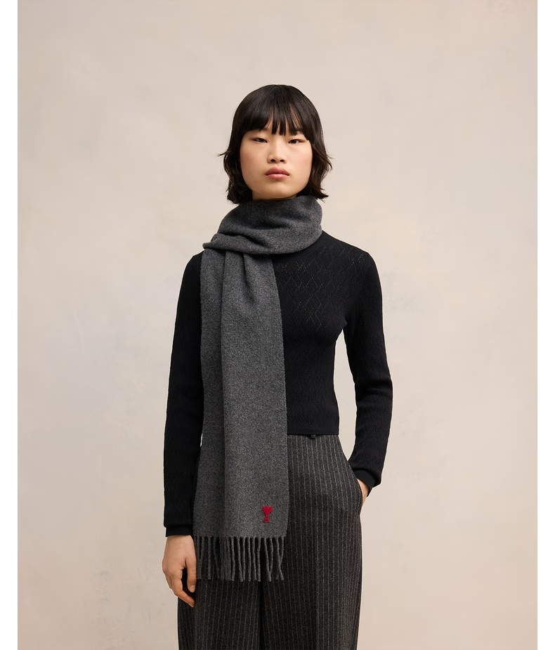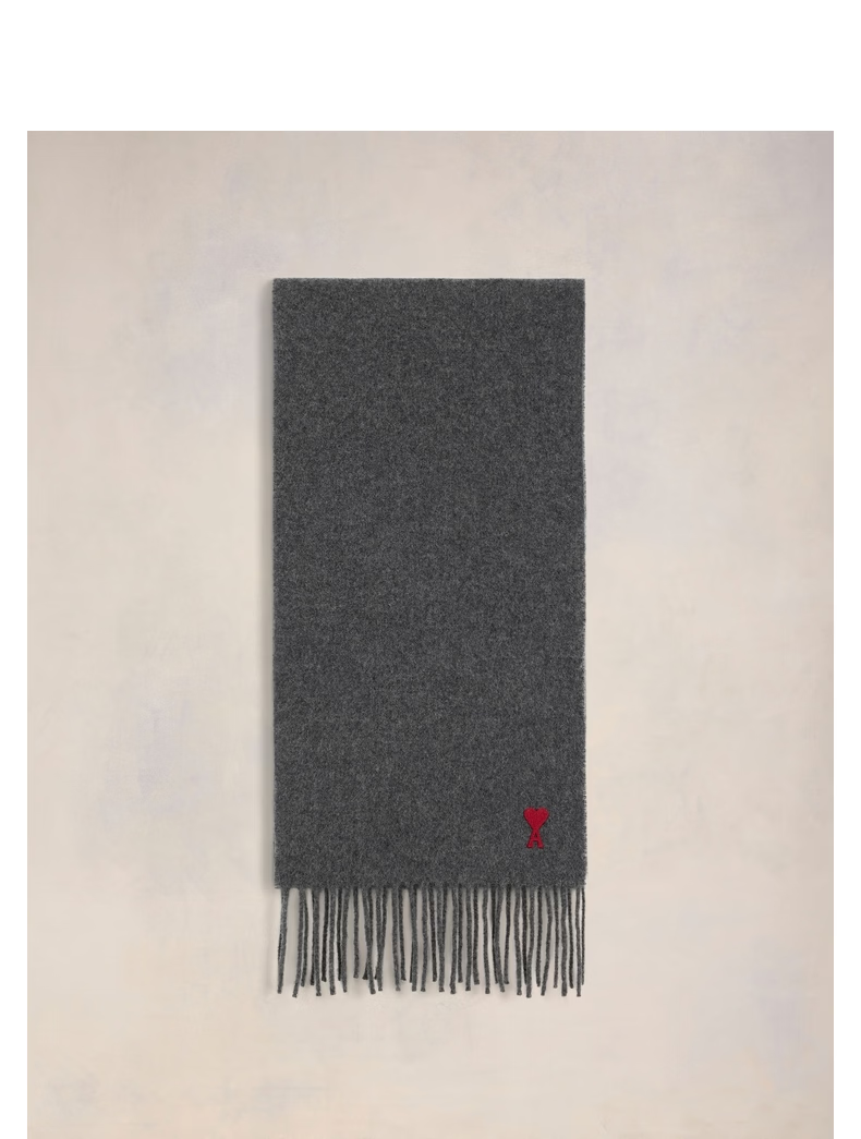 Ami Paris Unisex Classic Red Love Embroidered Solid Color Warm Wool Scarf 061 Dark Gray U