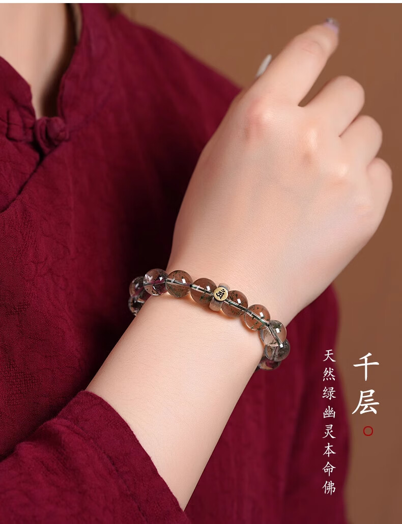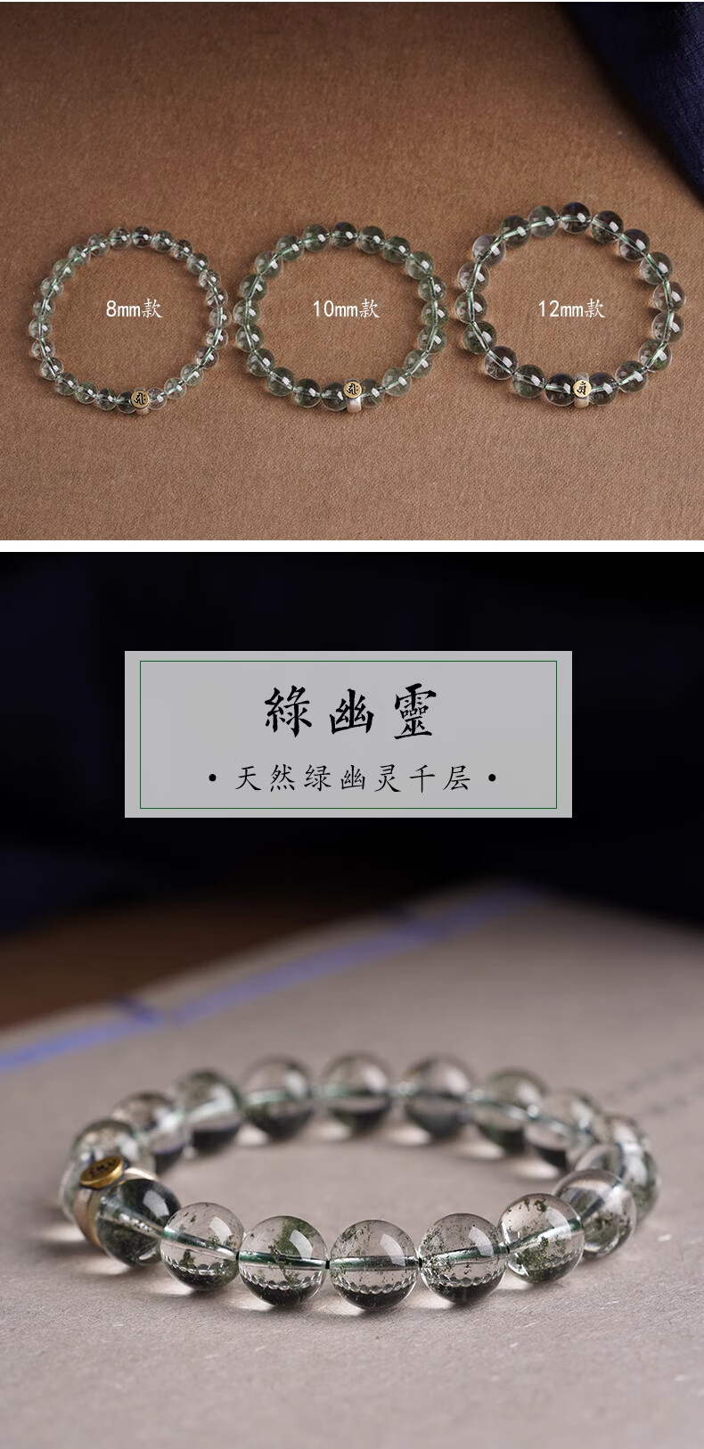 BOSFRU Natural Melaleuca Green Ghost Crystal Bracelet Single Circle Men's and Women's Couple's Birthday Bracelet for Girlfriend's Birthday Gift Thousand-Hand Guanyin-Rat 8mm
