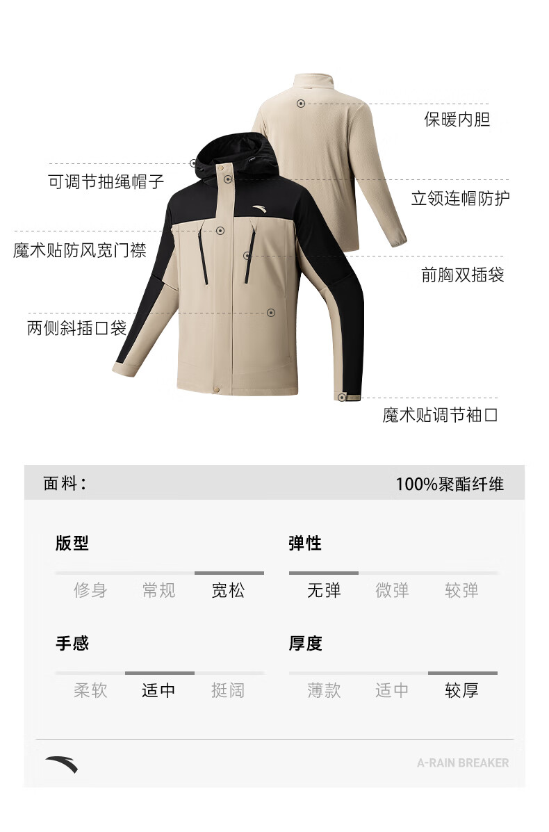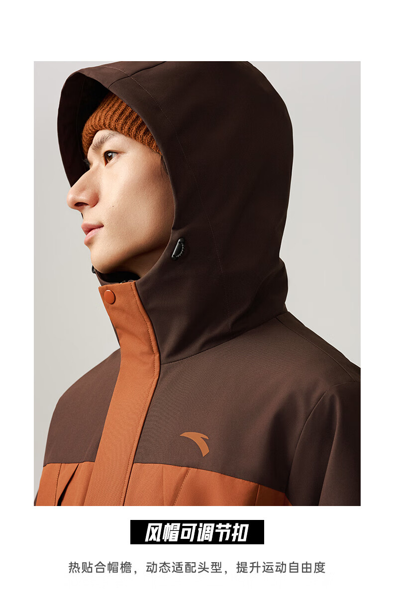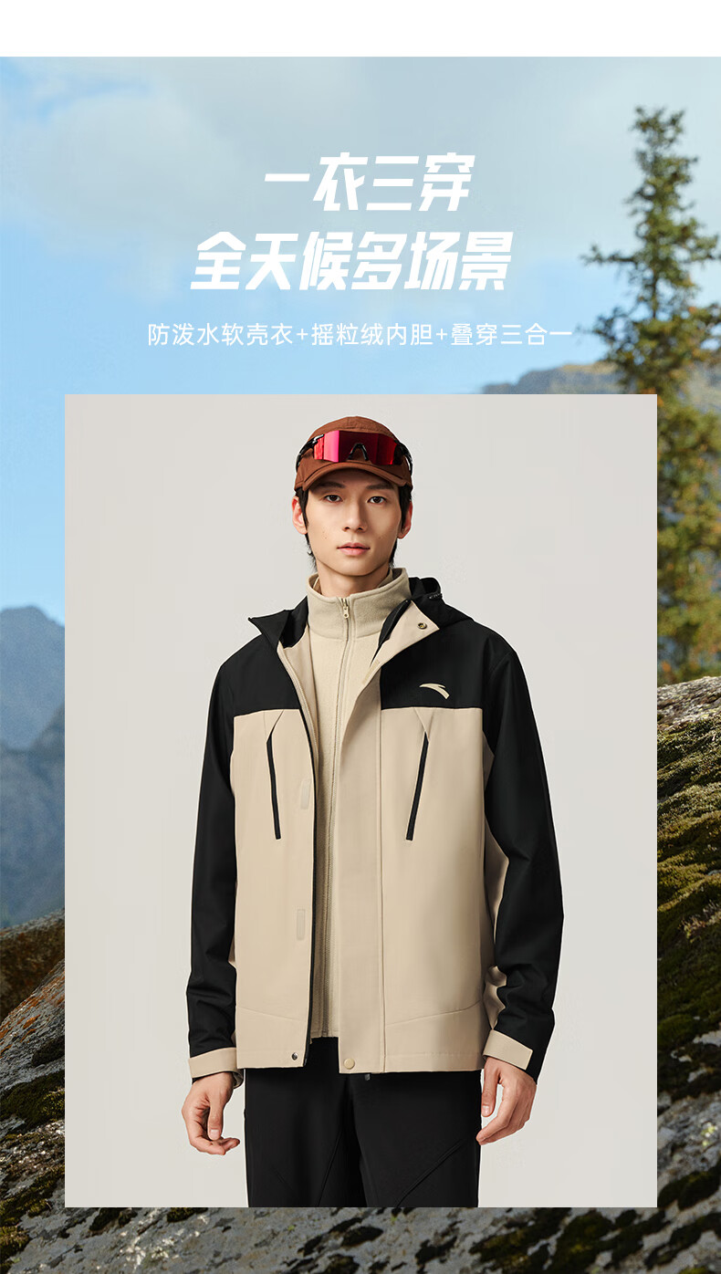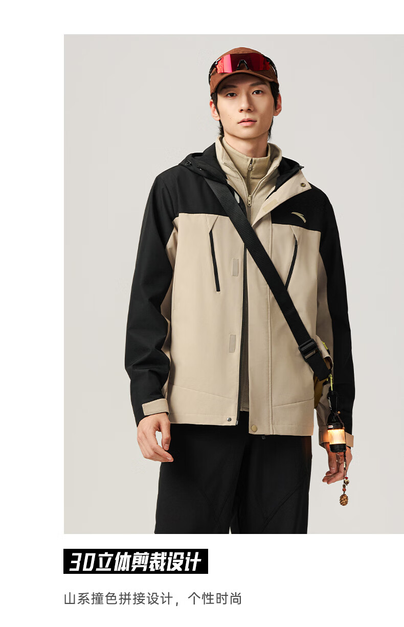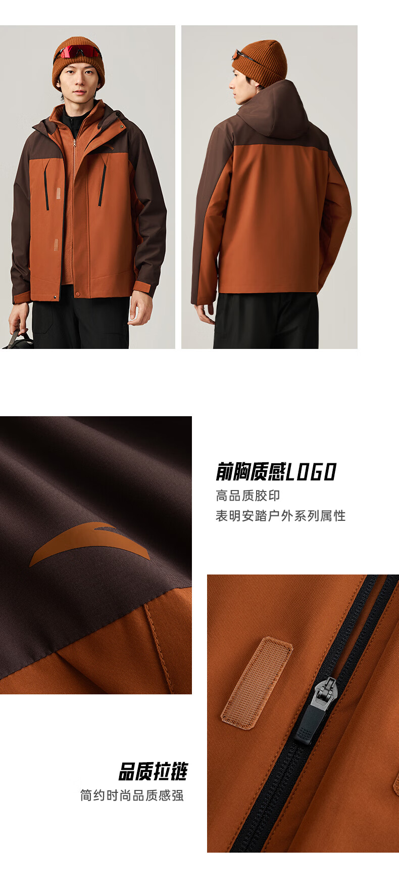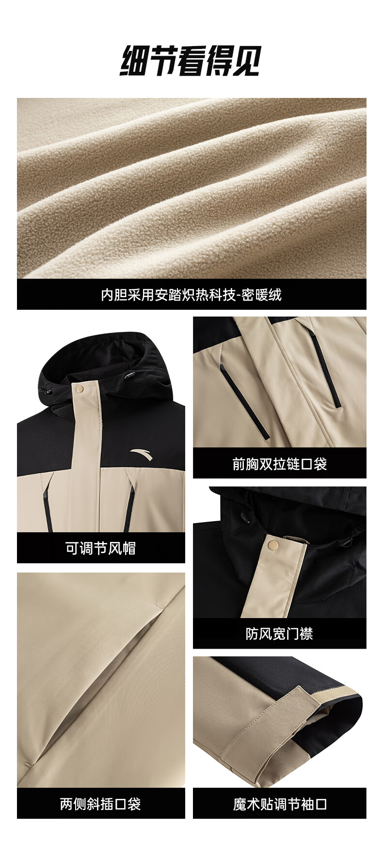 ANTA three-in-one warm jacket men's winter water-repellent removable polar fleece liner two-piece outdoor jacket store manager recommended basic black-5 L (Male 175)