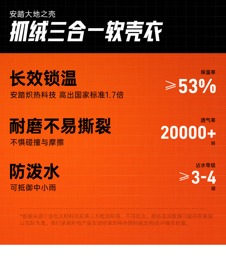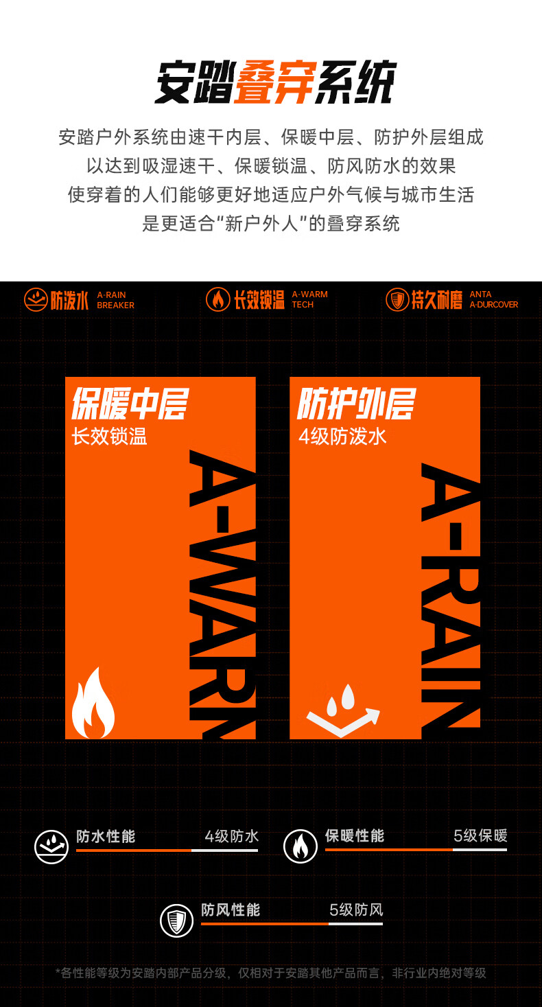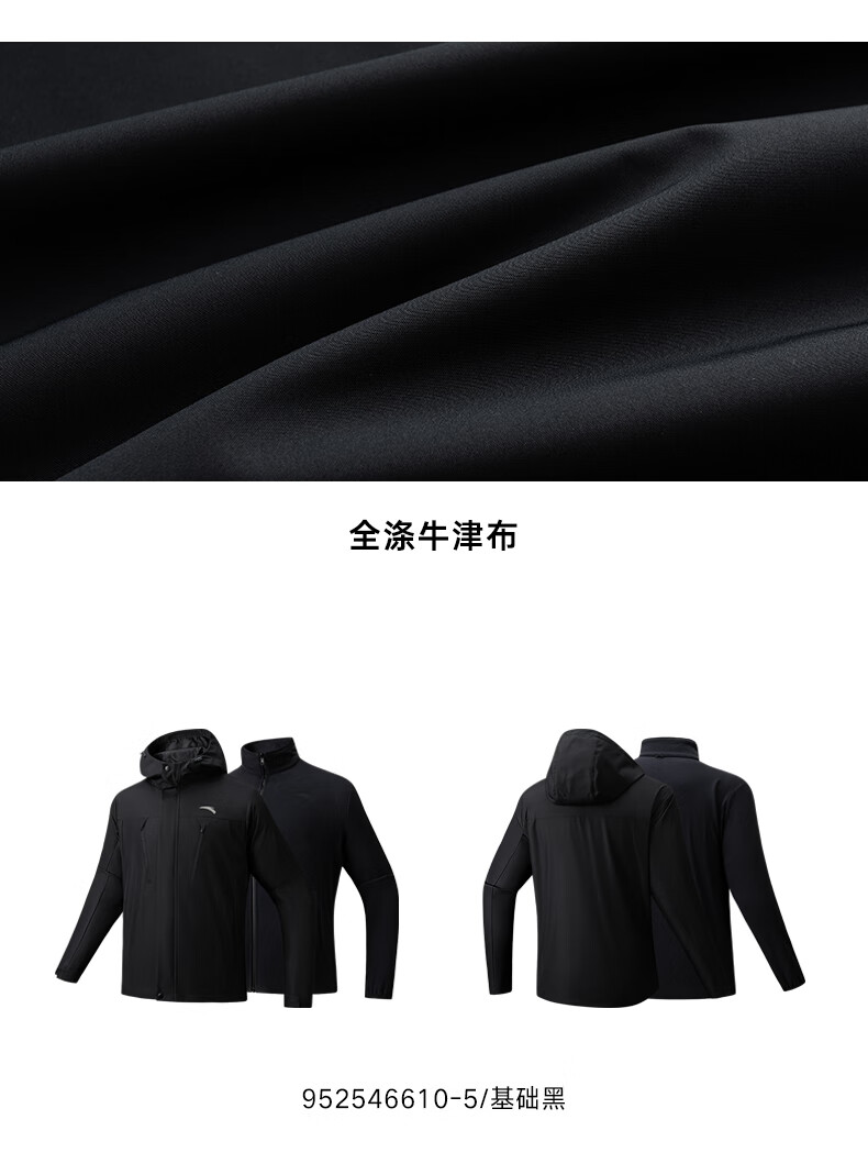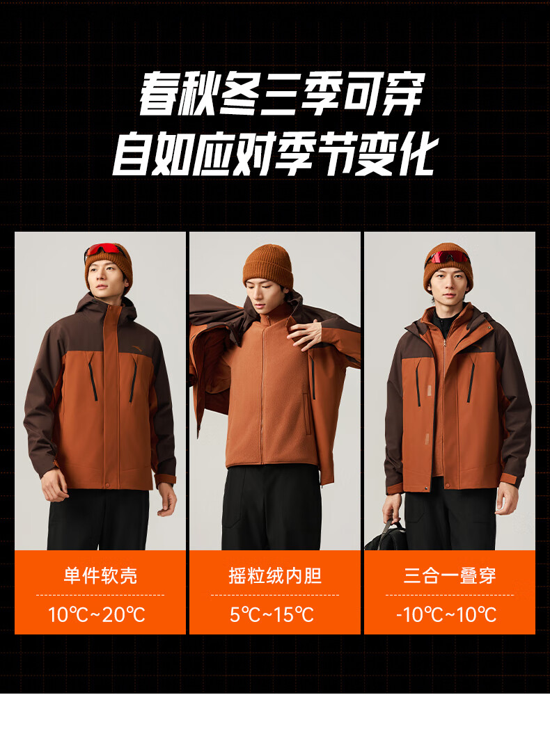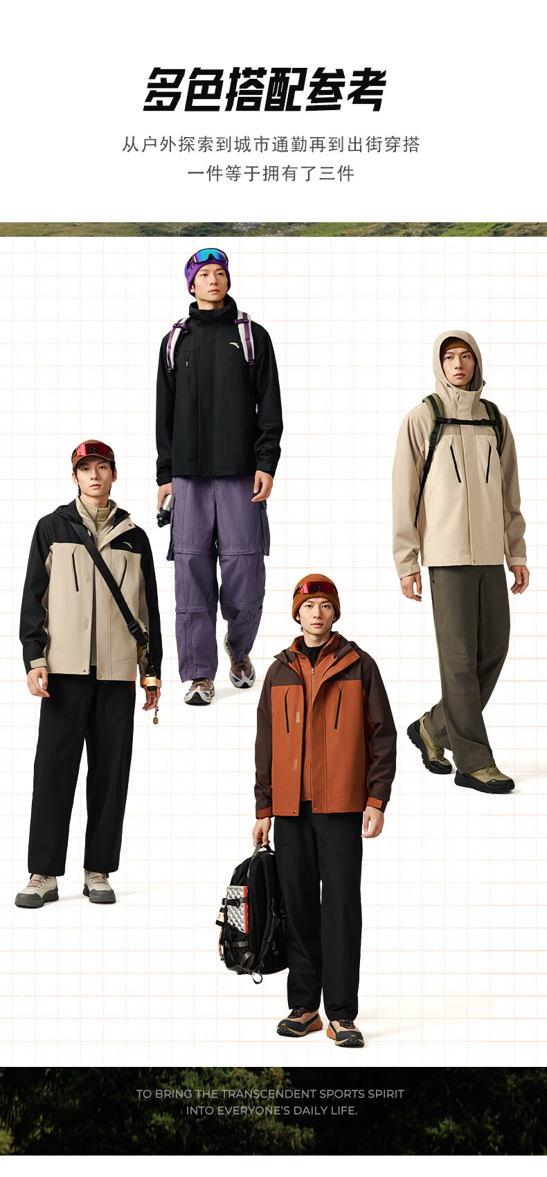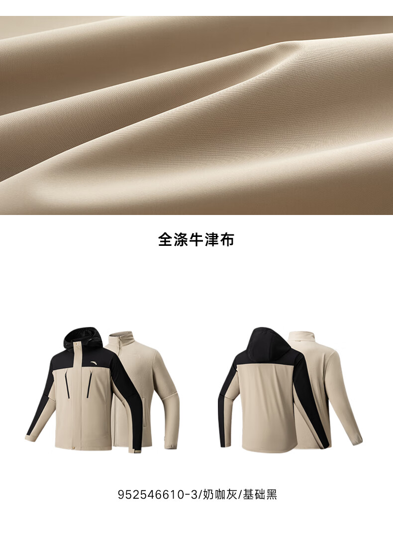 ANTA three-in-one warm jacket men's winter water-repellent removable polar fleece liner two-piece outdoor jacket store manager recommended basic black-5 L (Male 175)