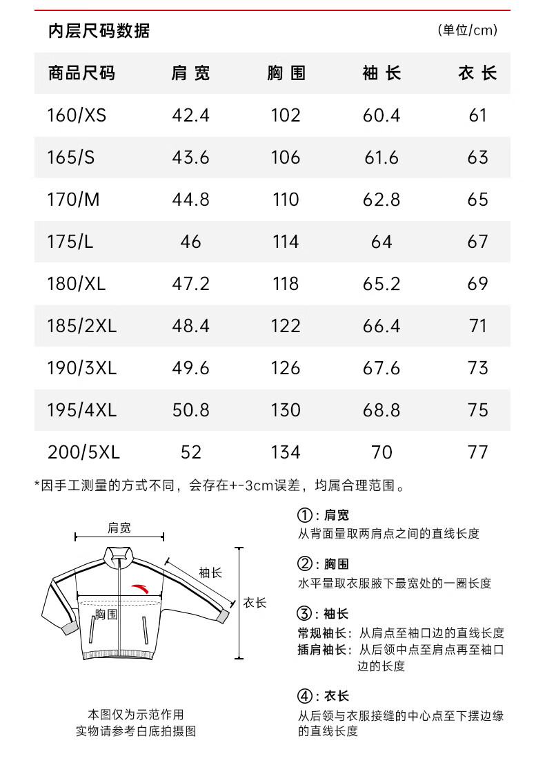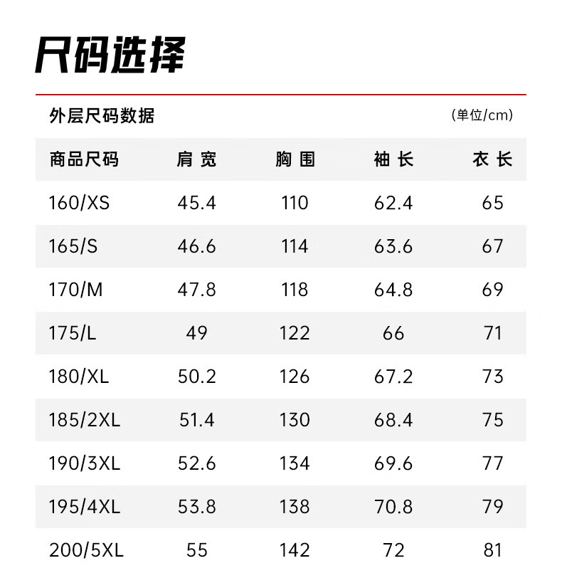 China (cm) 165 / 88-90 170 / 96-98 175 / 108-110 180 / 118-122 185 / 126-130
