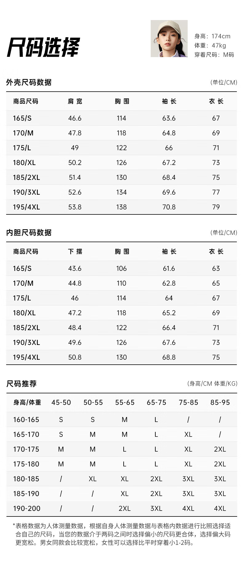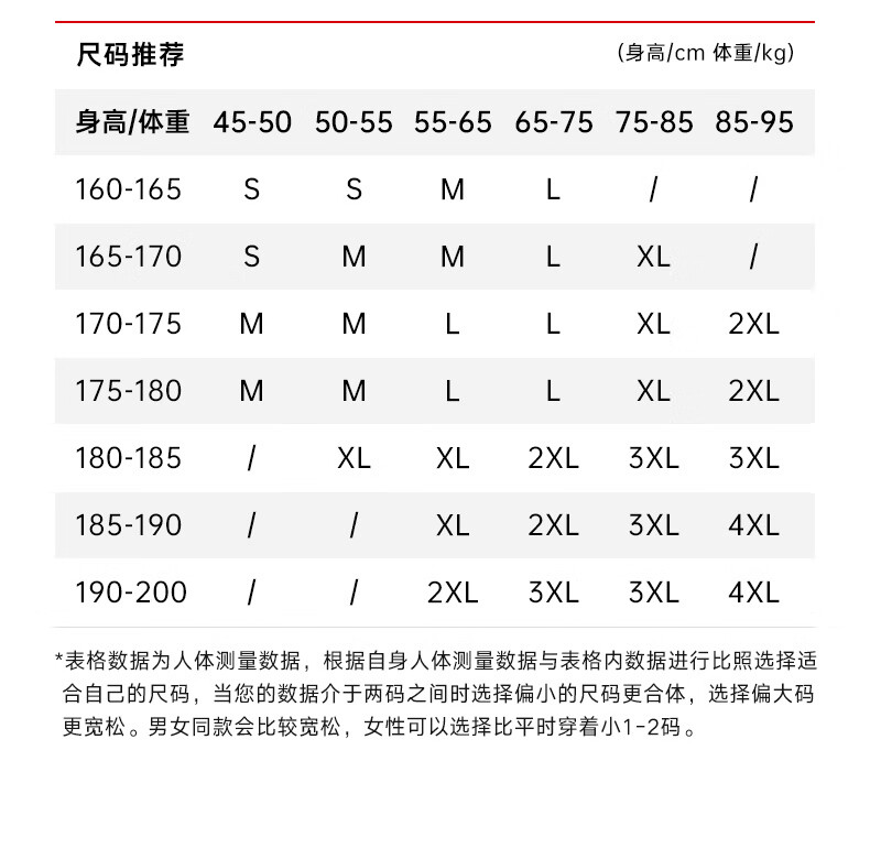China (cm) 160-165/84-86 165-170 / 88-90 167-172 / 92-96 168-173 / 98-102 170-176 / 106-110