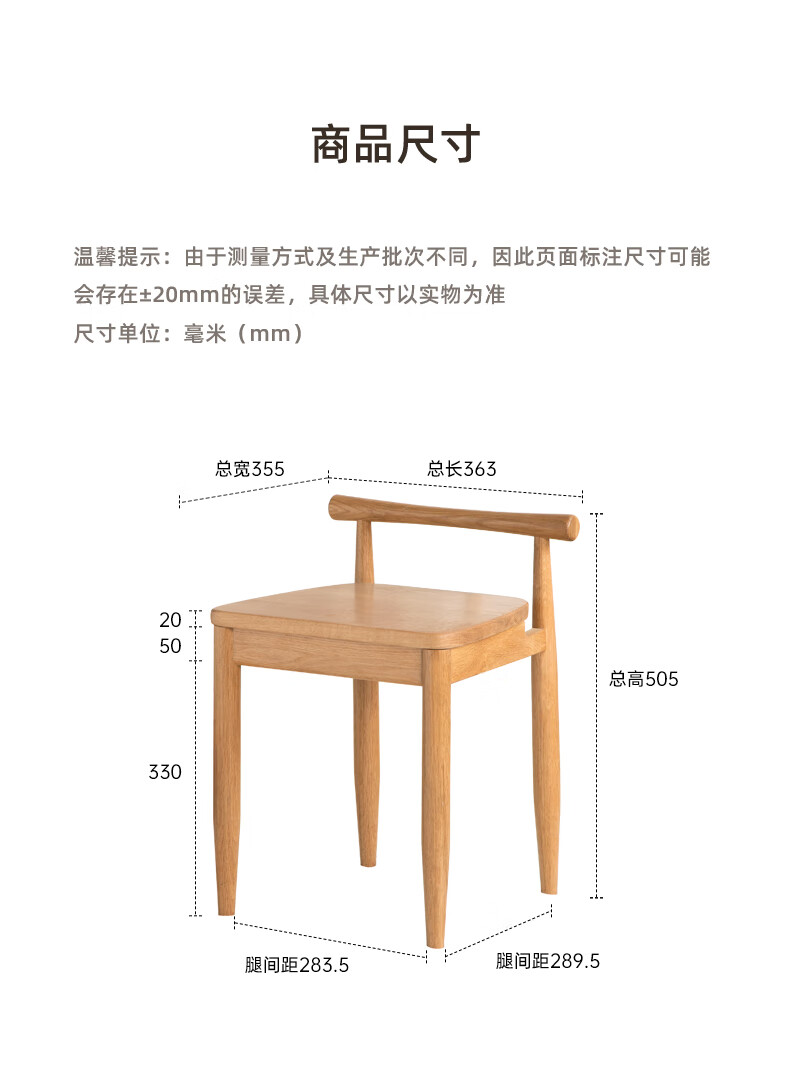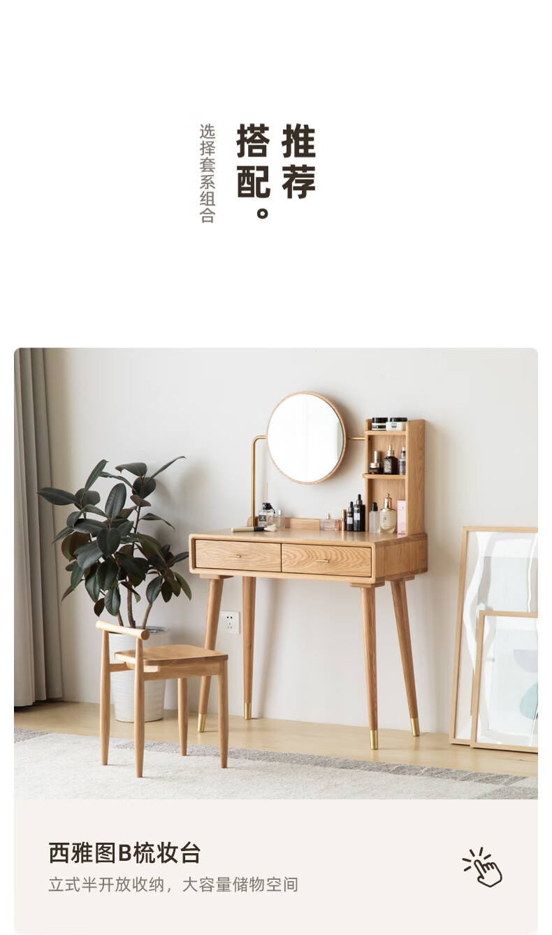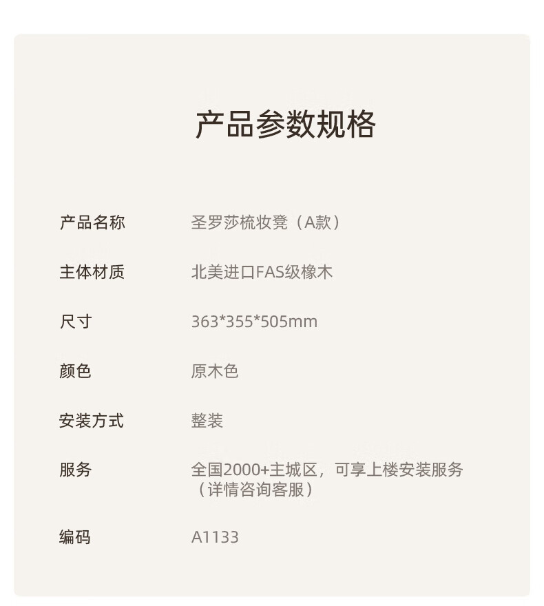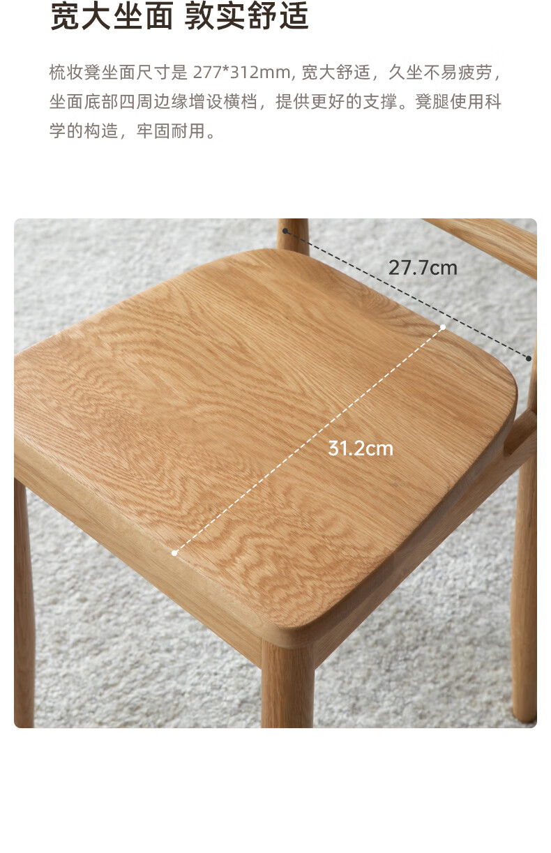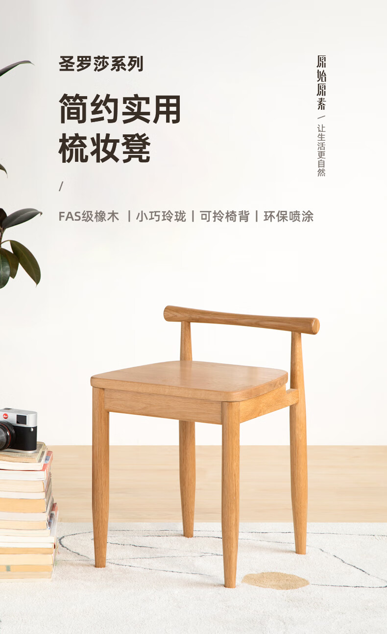 Original element solid wood dressing stool modern simple dressing stool bedroom stool dressing table stool A1133 oak dressing stool 363*355*505mm