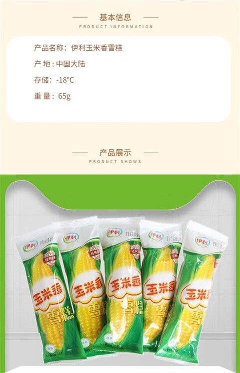 Yili corn flavored ice cream cone cream wafer milk nostalgic ice cream ice cream cold drink y one piece wholesale corn flavored 20 pieces
