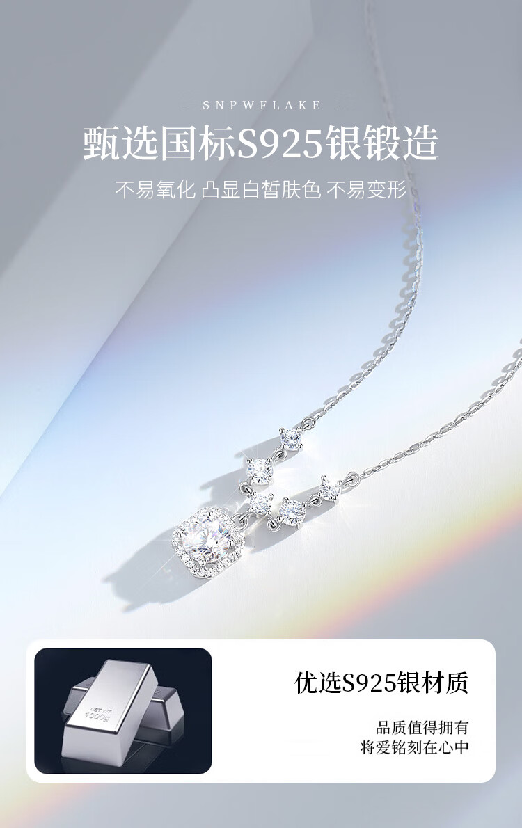 Lao Fengxiang silver necklace women's pendant birthday gift for girlfriend and wife jewelry light luxury niche high-end sparkling sugar cube starlight lover necklace with brand gift box