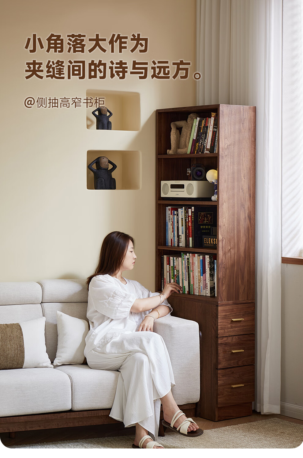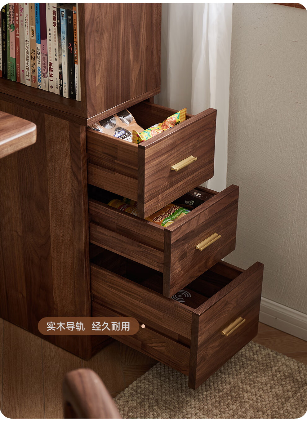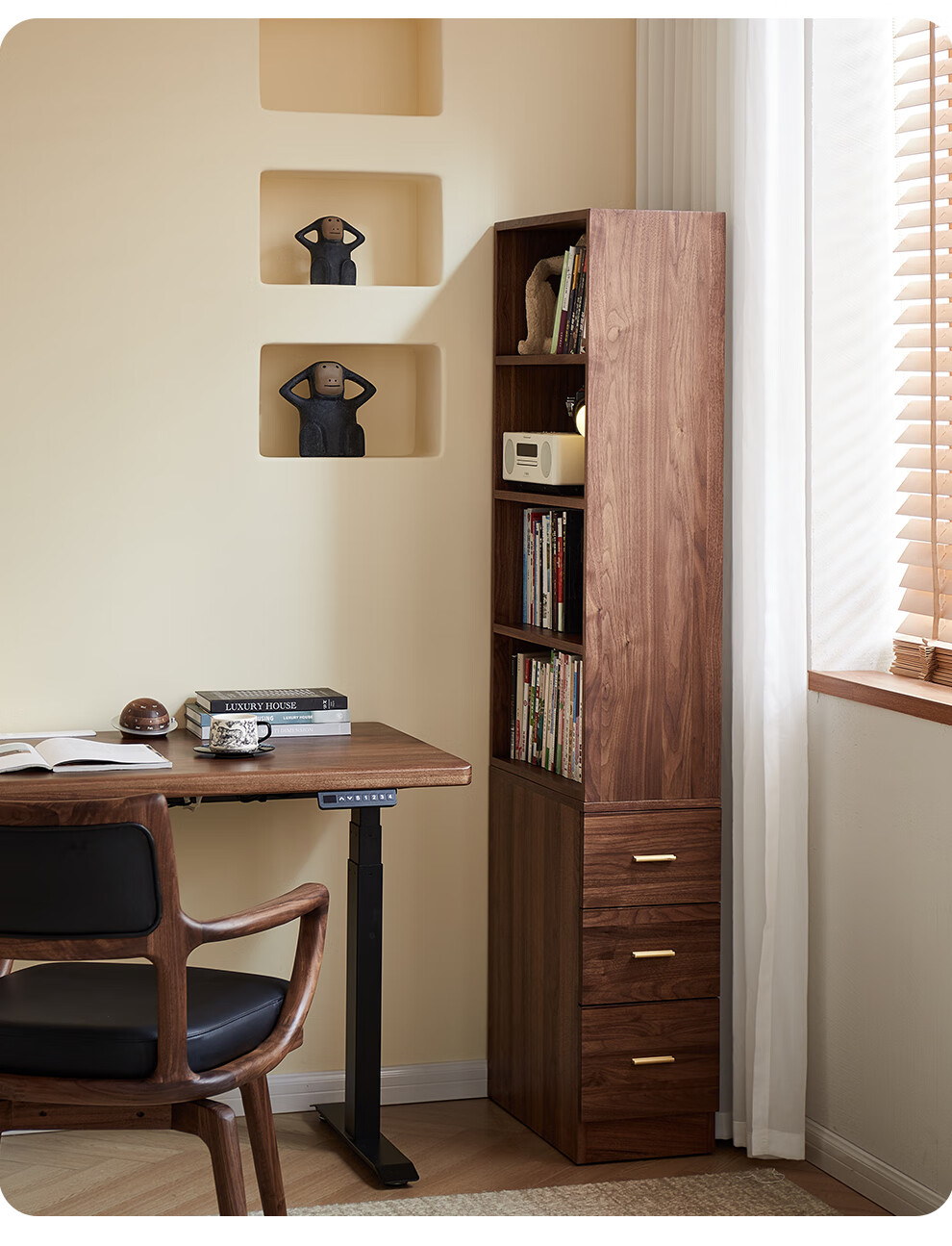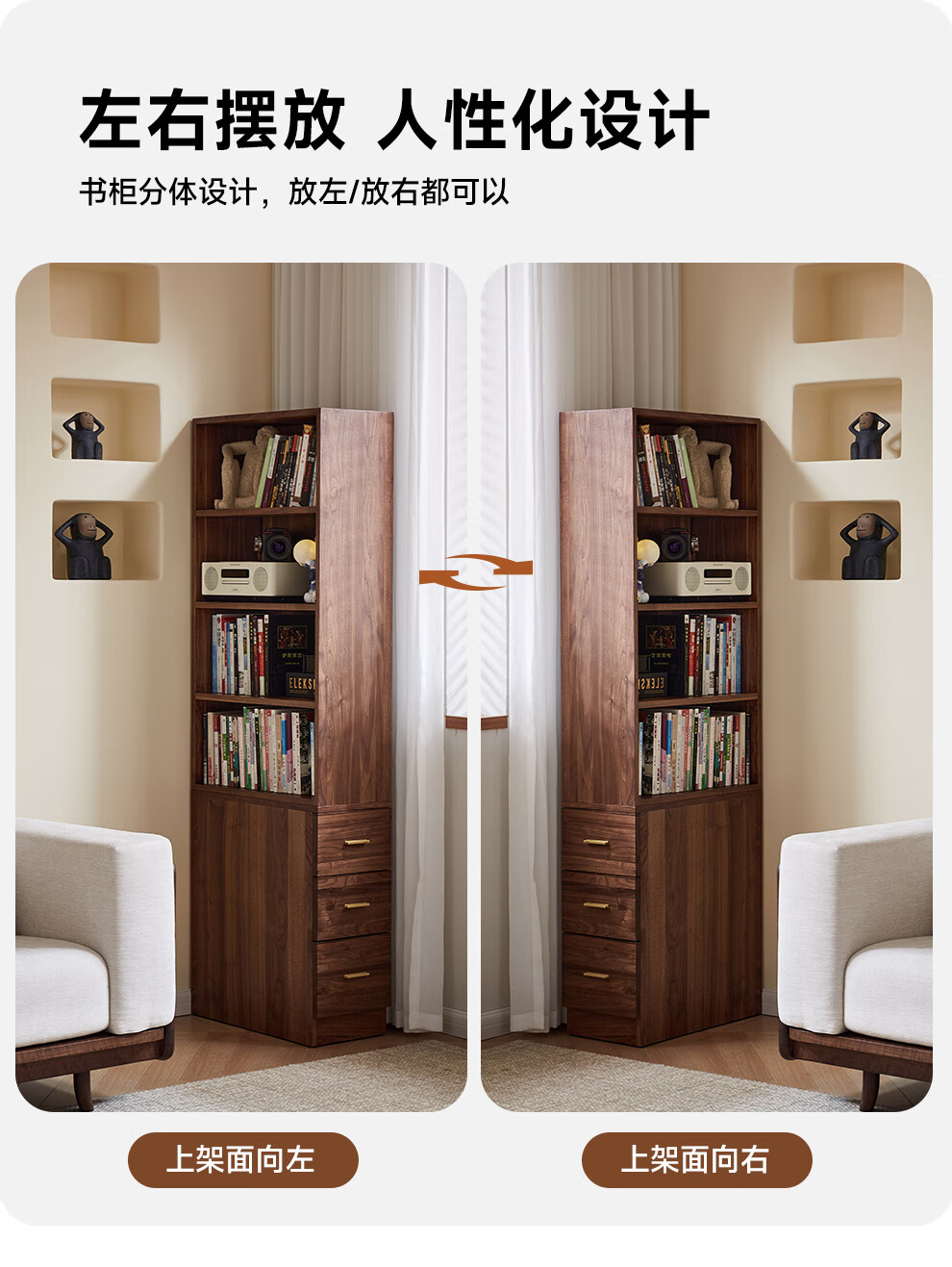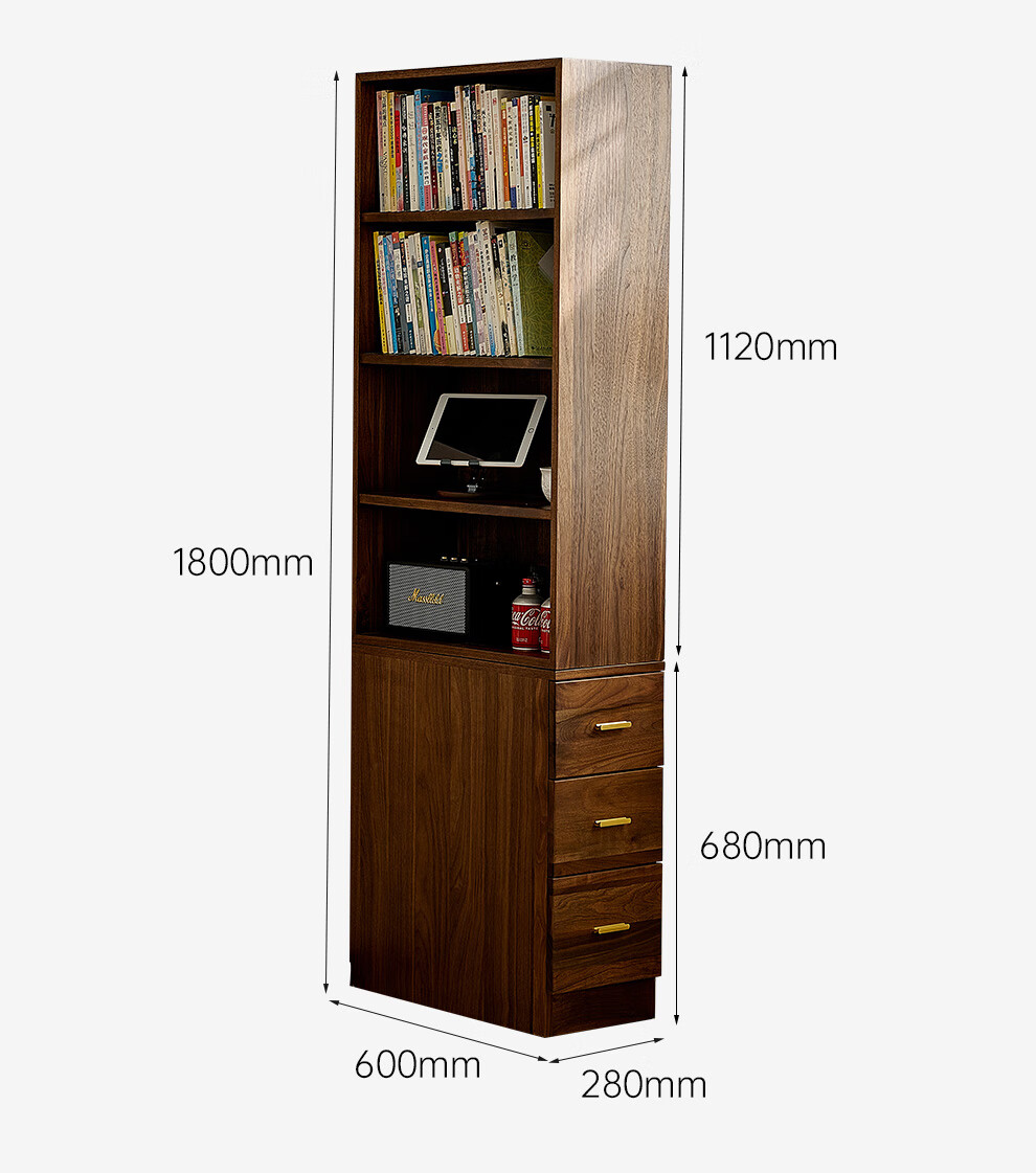 Zhidian North American black walnut solid wood home living room study floor-to-ceiling small corner bookcase modern simple storage storage cabinet side cabinet (upper cabinet + lower cabinet)