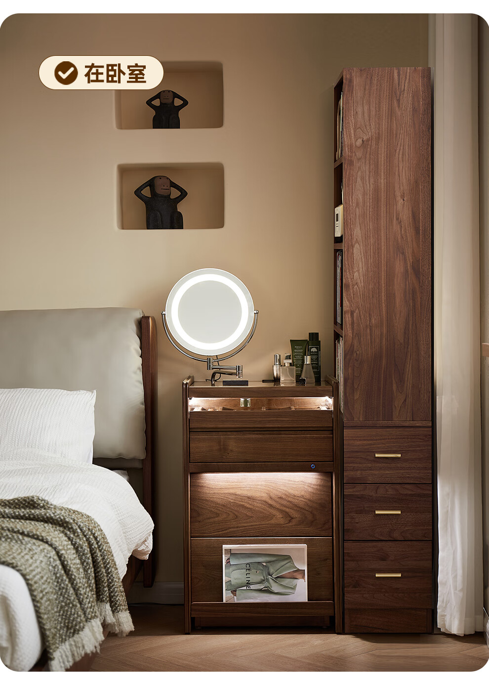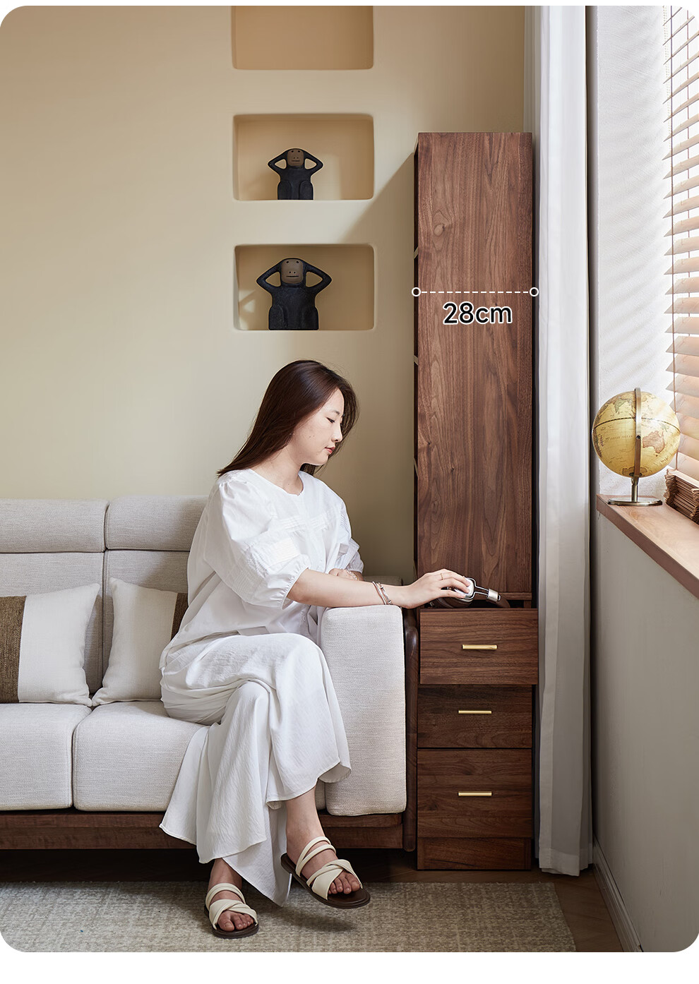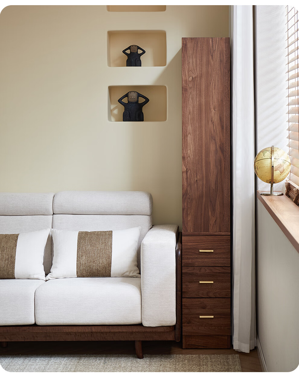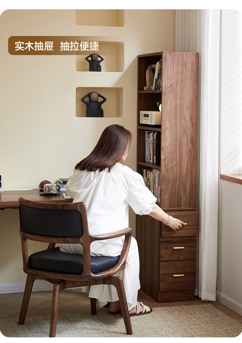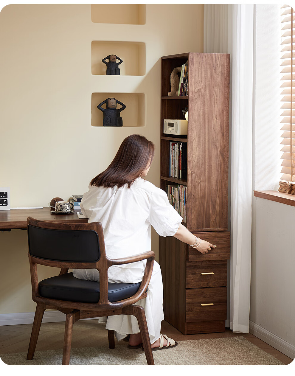 Zhidian North American black walnut solid wood home living room study floor-to-ceiling small corner bookcase modern simple storage storage cabinet side cabinet (upper cabinet + lower cabinet)