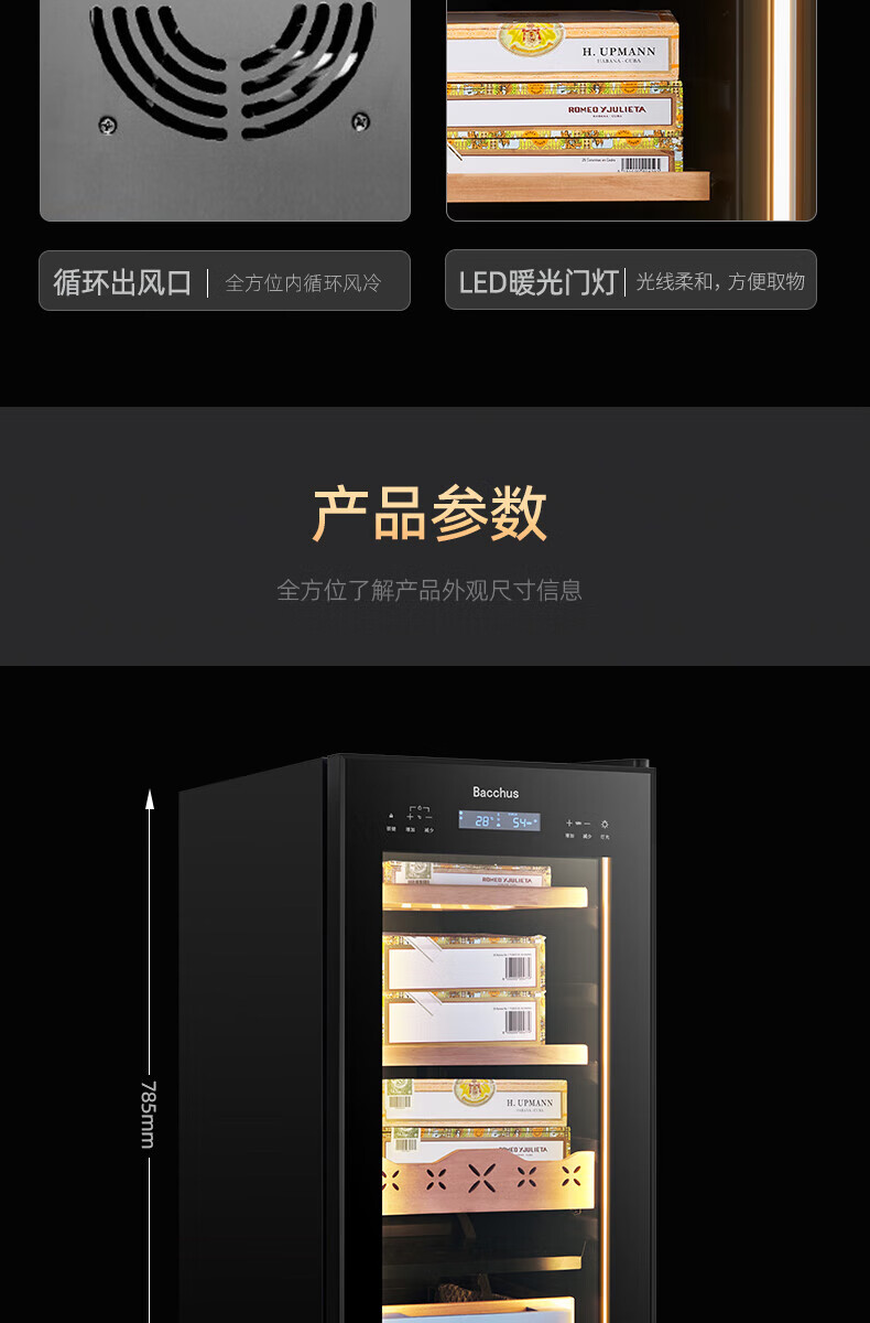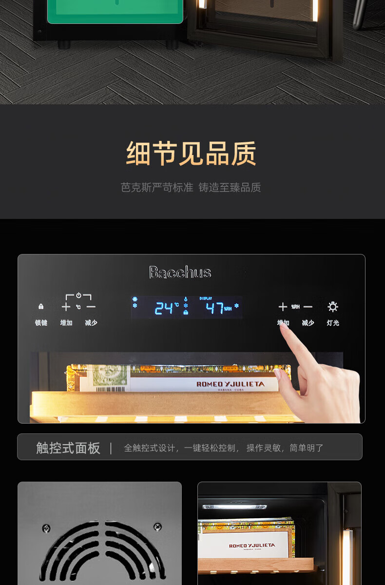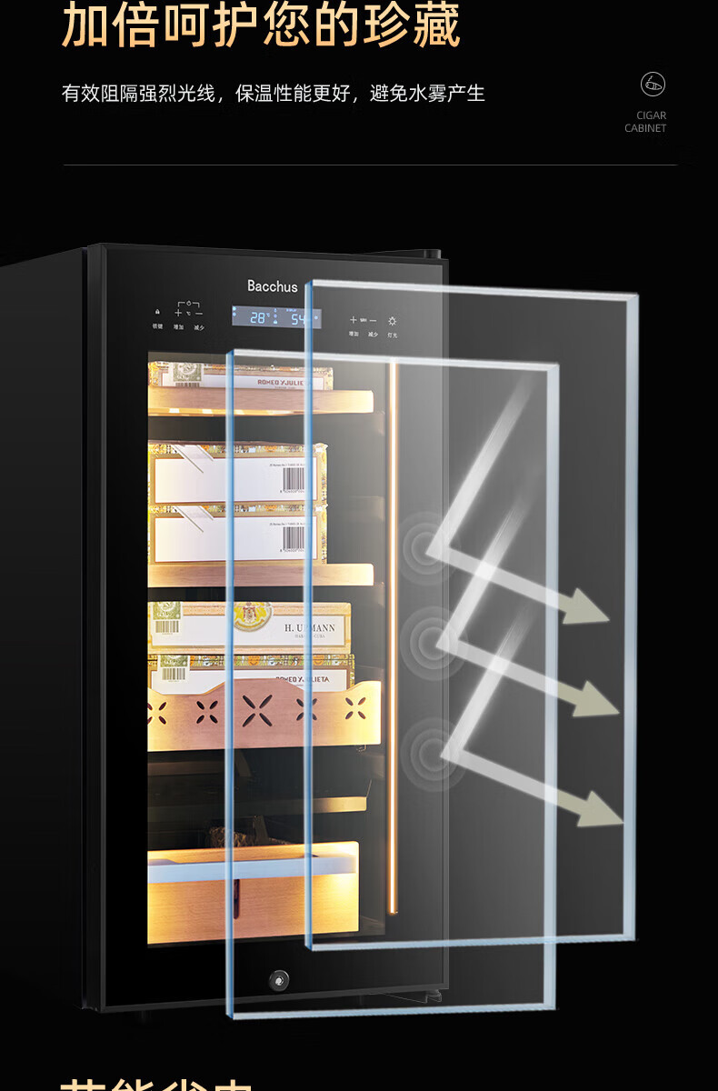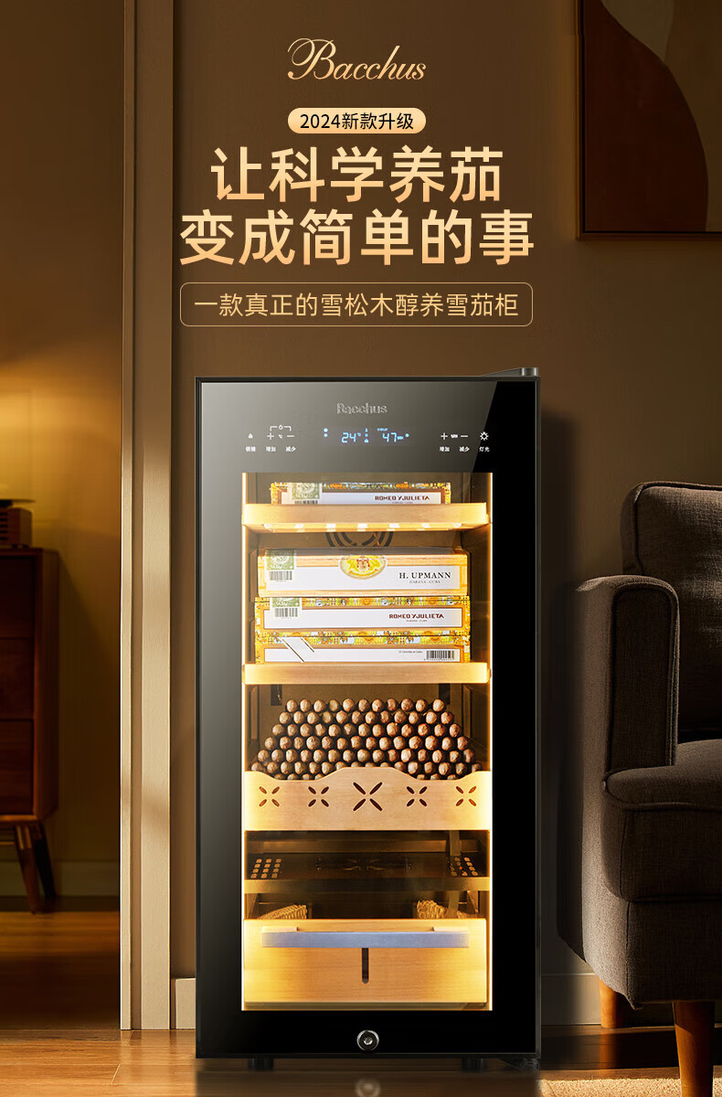Bacchus Smart Cigar Cabinet WiFi Control + Ammonia Removal Multi-Function Independent Humidity Control Constant Temperature and Constant Humidity Bare Care Spanish Cedar Wood Inverter Compressor Air-cooled Humidifying Cabinet YH-24 Ammonia Removal WiFi Inverter + Lamp (350 Count) 65L