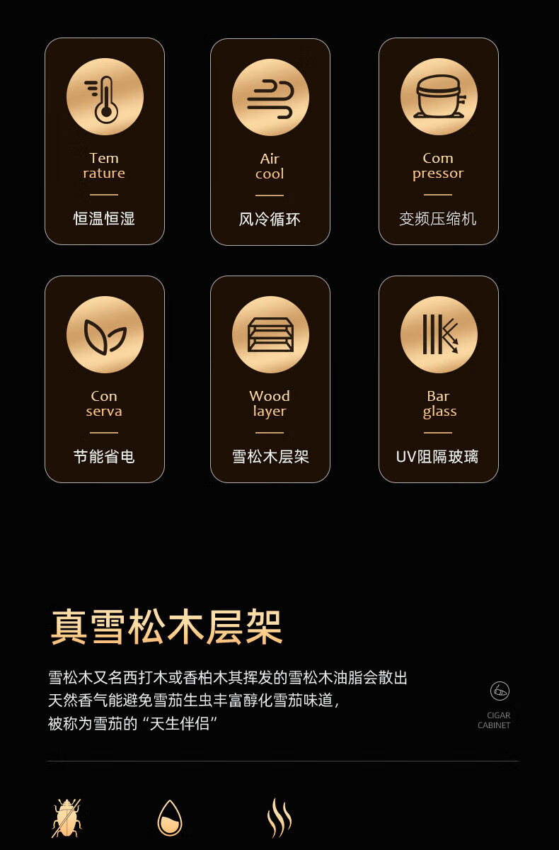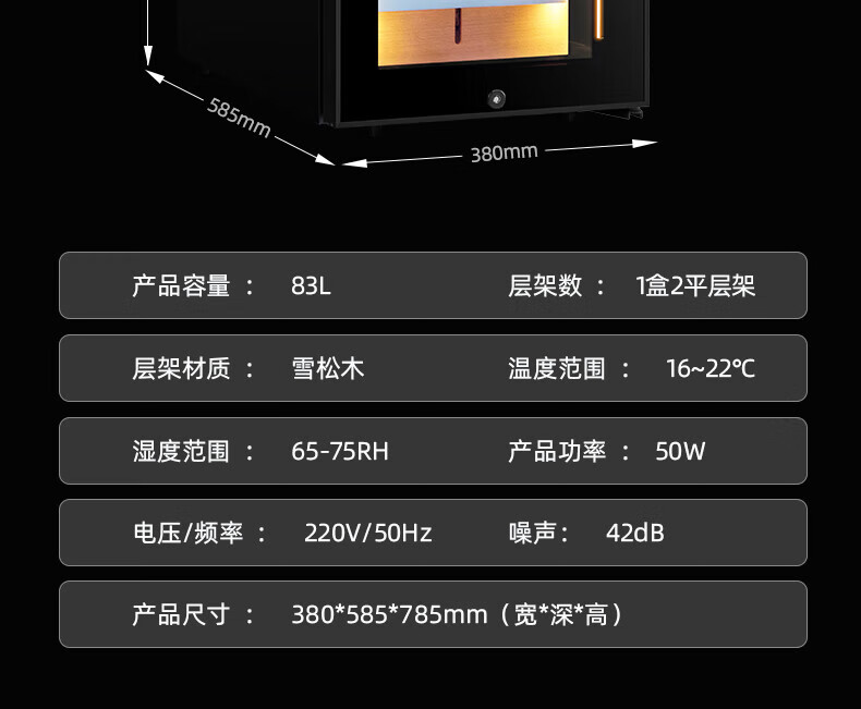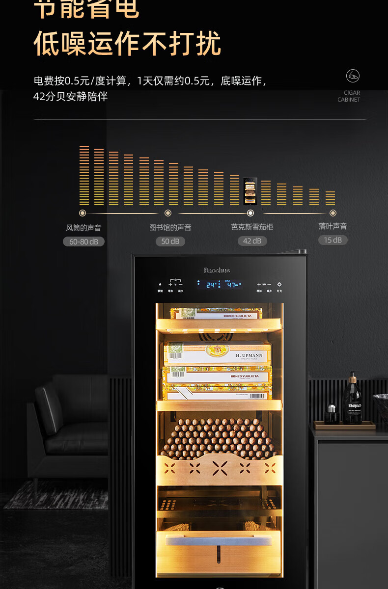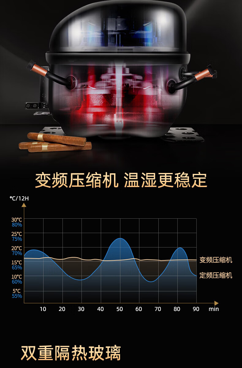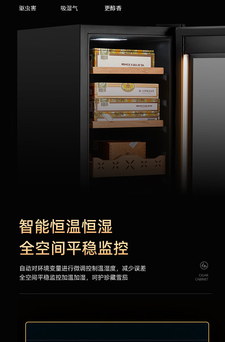 Bacchus Smart Cigar Cabinet WiFi Control + Ammonia Removal Multi-Function Independent Humidity Control Constant Temperature and Constant Humidity Bare Care Spanish Cedar Wood Inverter Compressor Air-cooled Humidifying Cabinet YH-24 Ammonia Removal WiFi Inverter + Lamp (350 Count) 65L