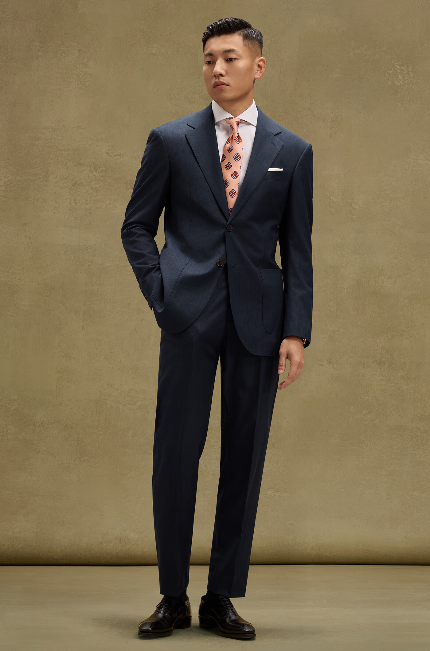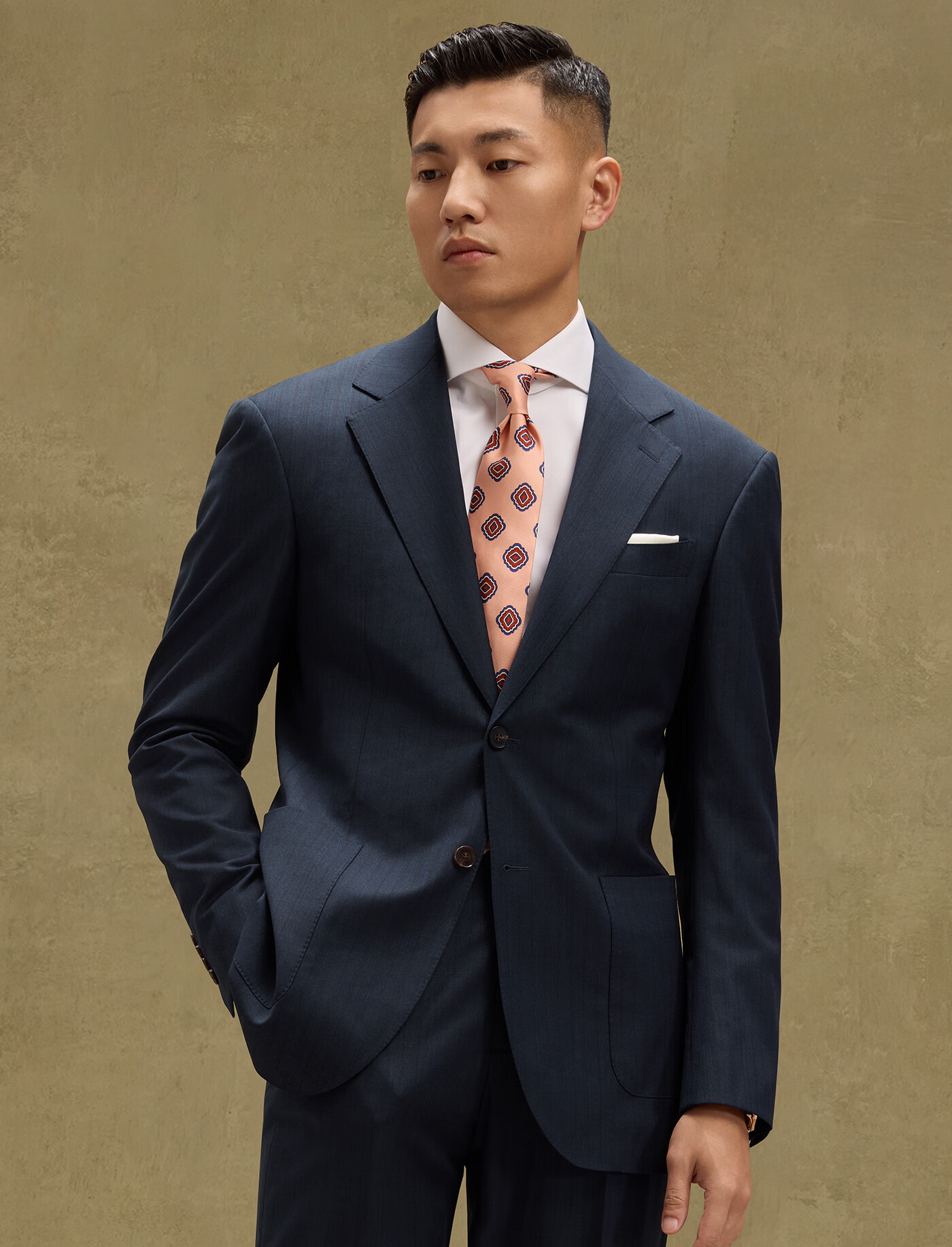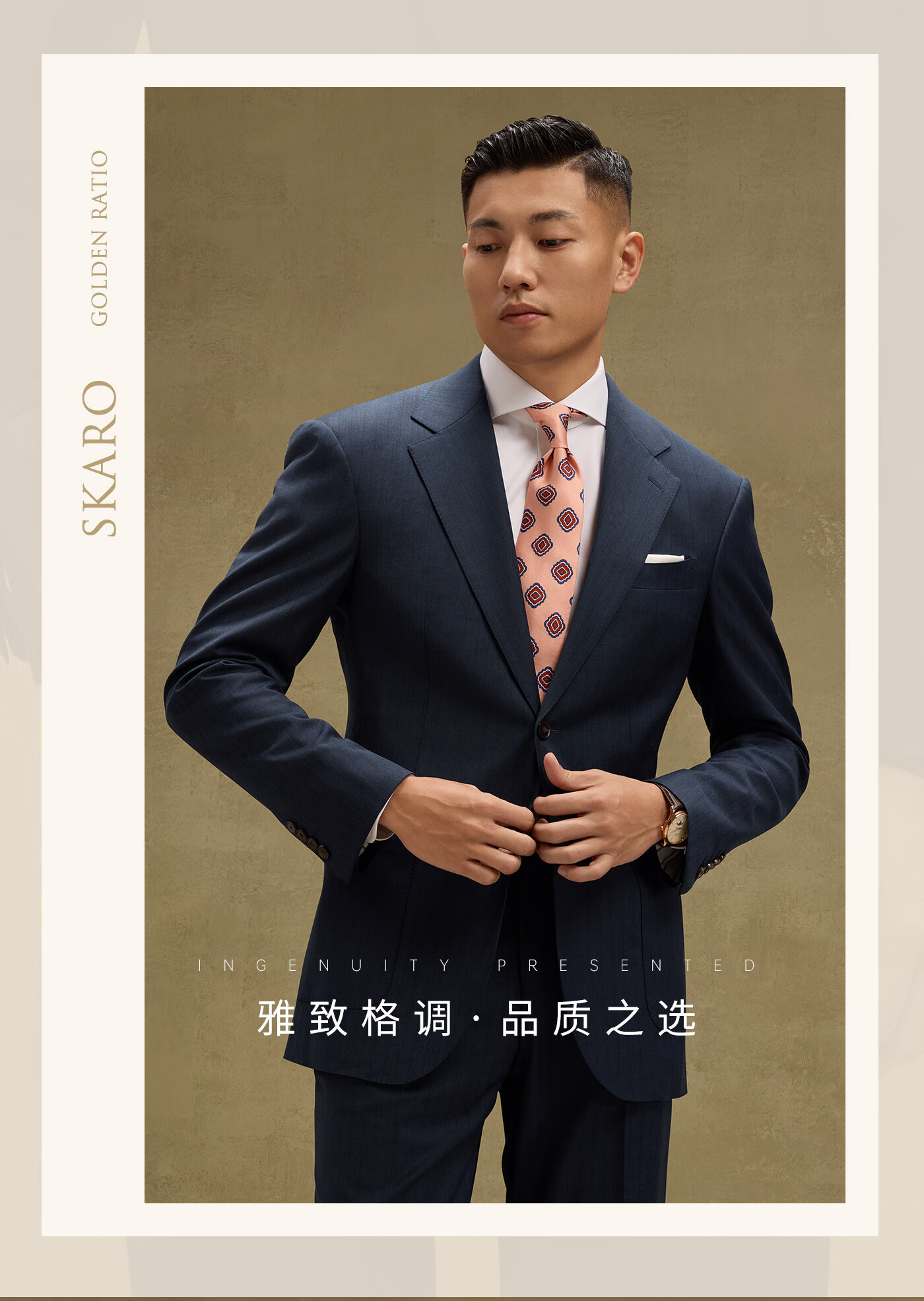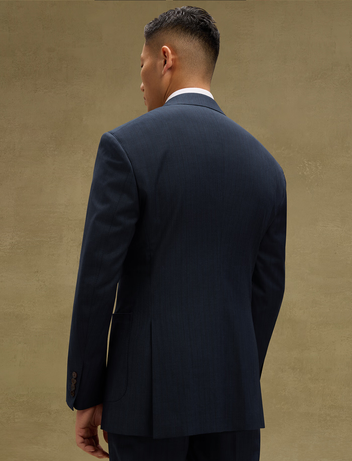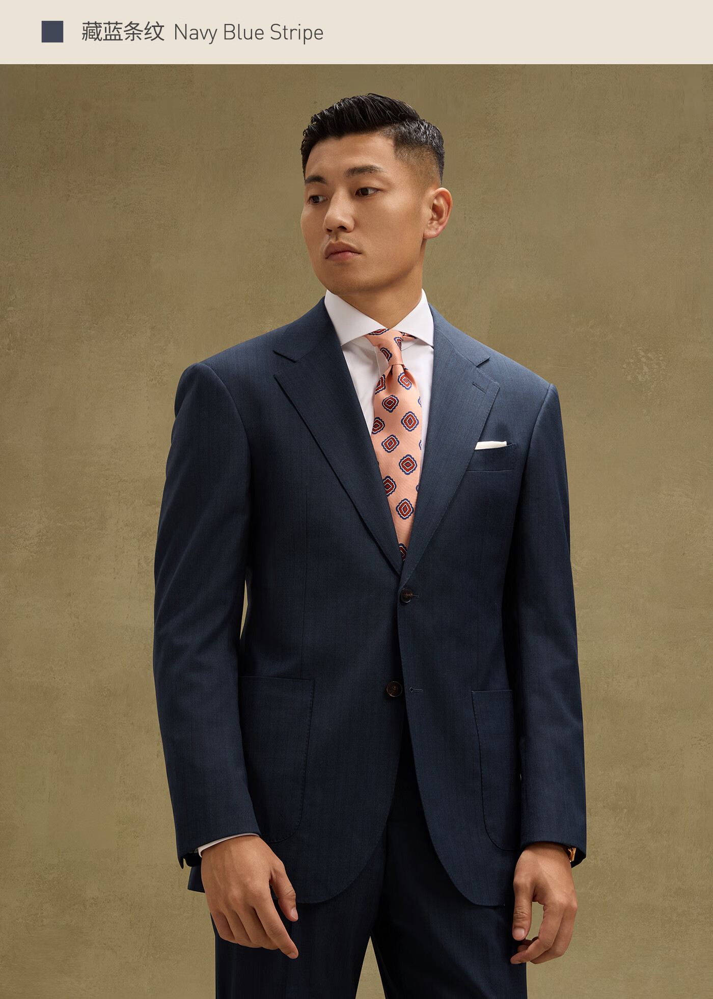 SKARO business anti-wrinkle easy care navy blue striped suit suit men's wool formal wedding suit navy striped SKG1541A size 48 top and trousers size please note