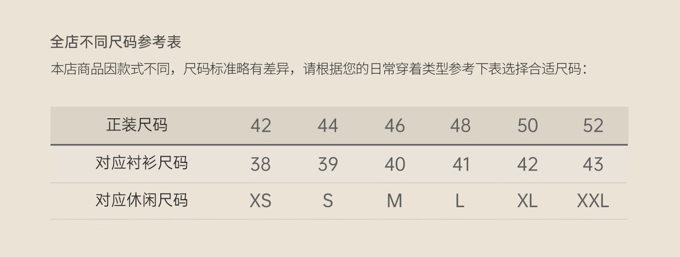 China (cm) 165 / 88-90 170 / 96-98 175 / 108-110 180 / 118-122 185 / 126-130
