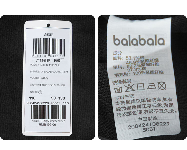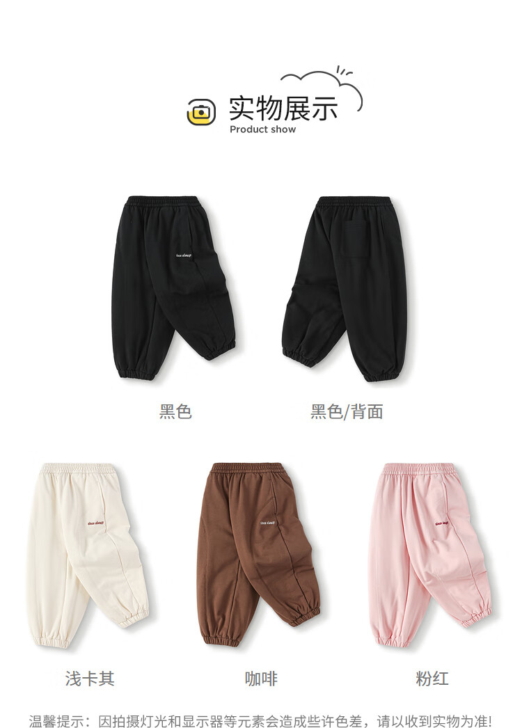 Balabala children's clothing children's trousers boys and girls baby leggings trousers autumn and winter loose and versatile casual pants light khaki 50311 110 cm