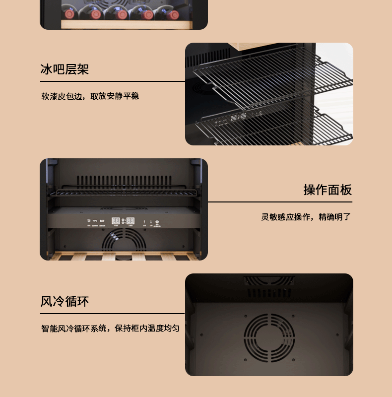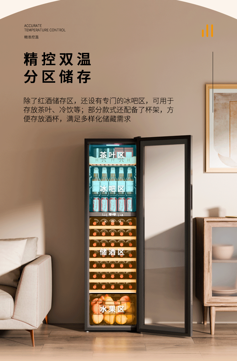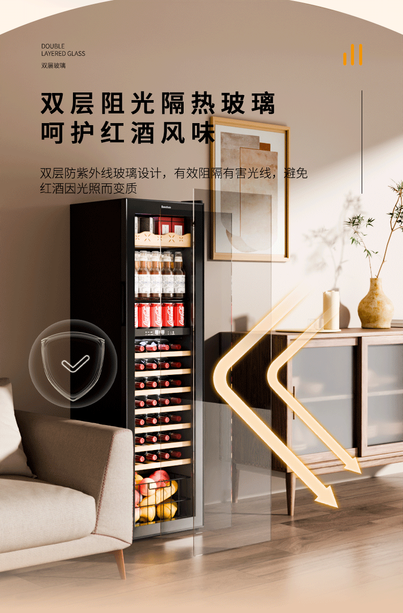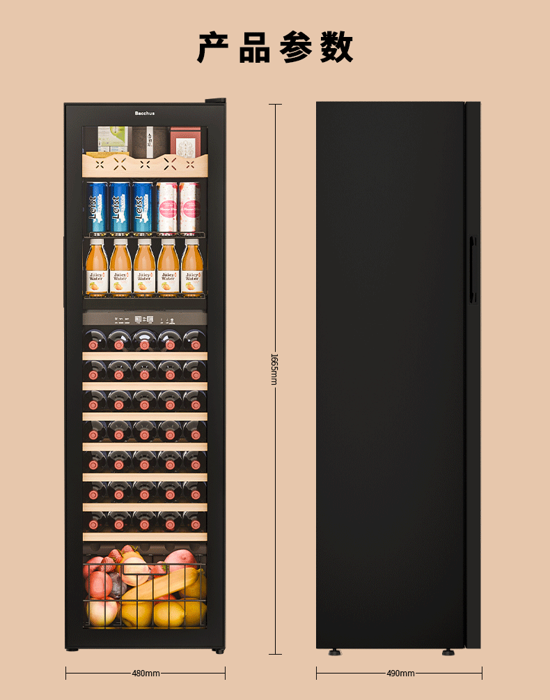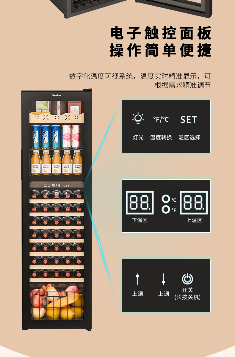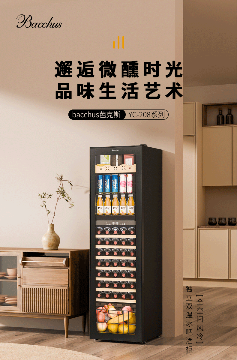 Bacchus Ice Bar 75 Bottles Constant Temperature Embedded Wine Cabinet Living Room Refrigerator Household Wine Cellar Level Wine Cabinet Sake Beer Wine Refrigerator Office Restaurant Tea Cabinet YC-208 Air-cooled Dual Temperature Hanging Cup 60 Bottles