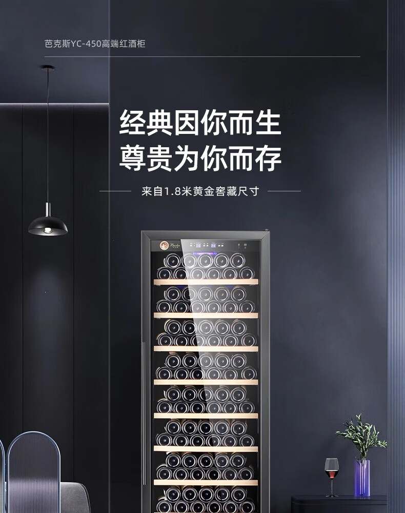 Bacchus red wine cabinet 190 bottles Constant temperature wine cabinet household commercial large capacity refrigerated wine cabinet champagne sparkling sake wine whiskey compressor villa wine cellar club YC-450 flat model - single temperature - height 1.8m 191 bottles