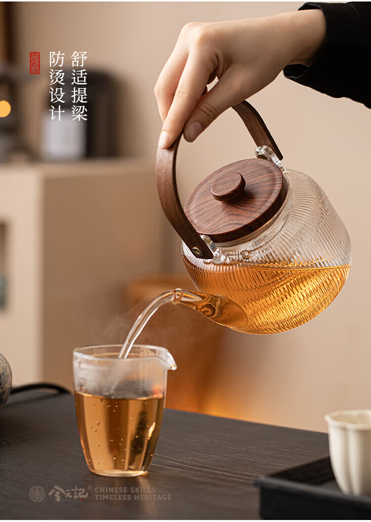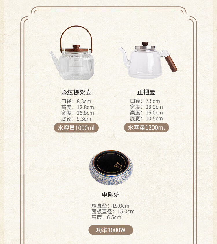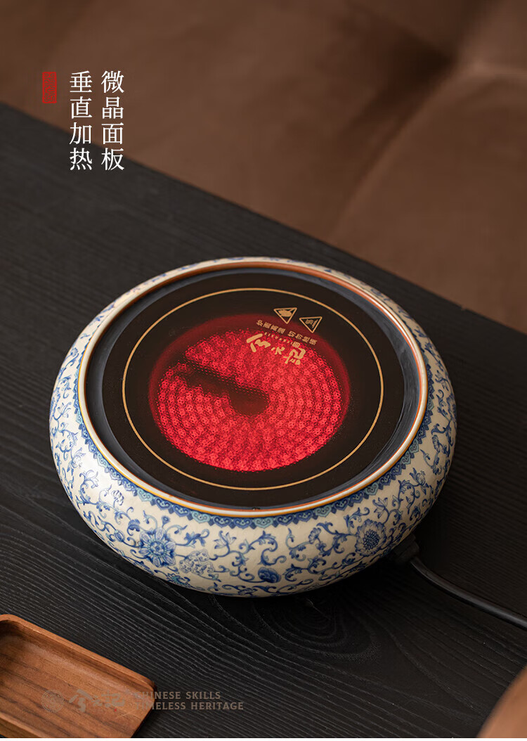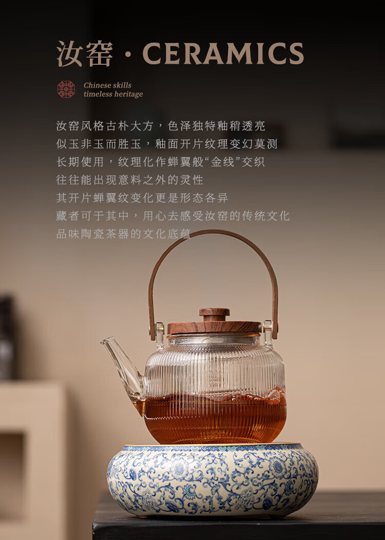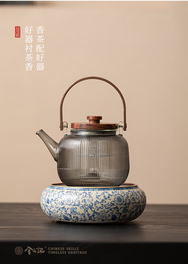 Xi Yuanji blue and white Ru kiln electric pottery stove for tea kettle and stove tea pot household thickened high temperature resistant glass tea kettle and kettle flowery beige Ru kiln round melt electric pottery stove + transparent vertical pattern lifting beam kettle