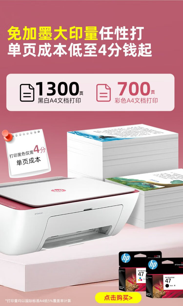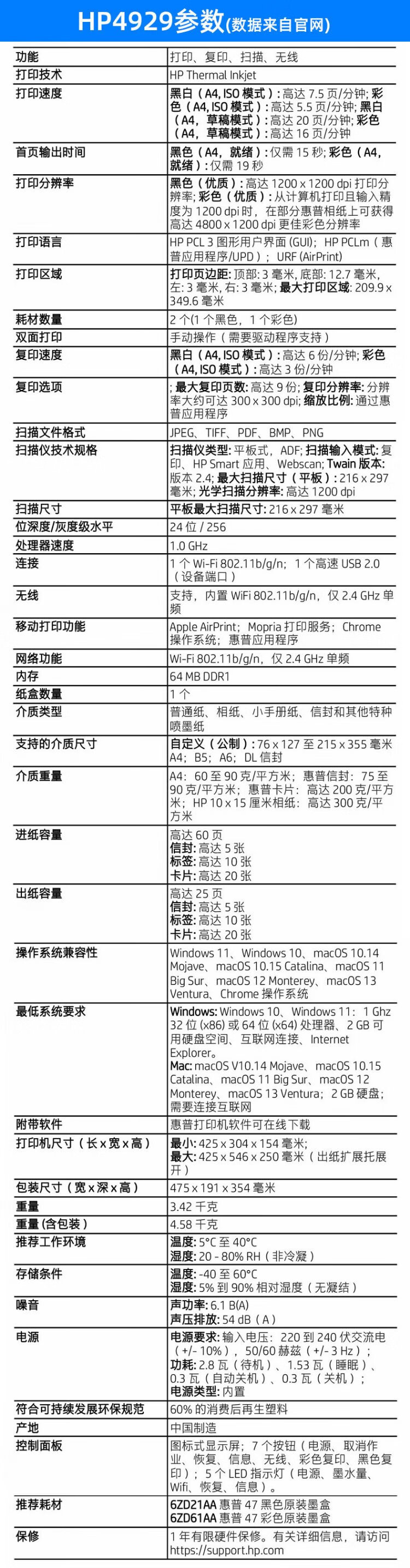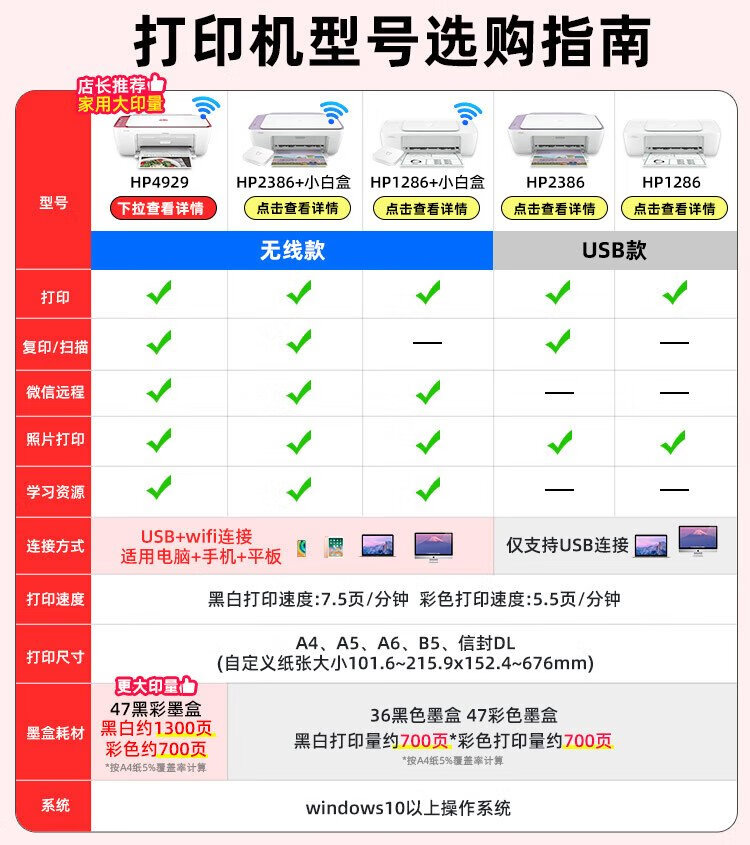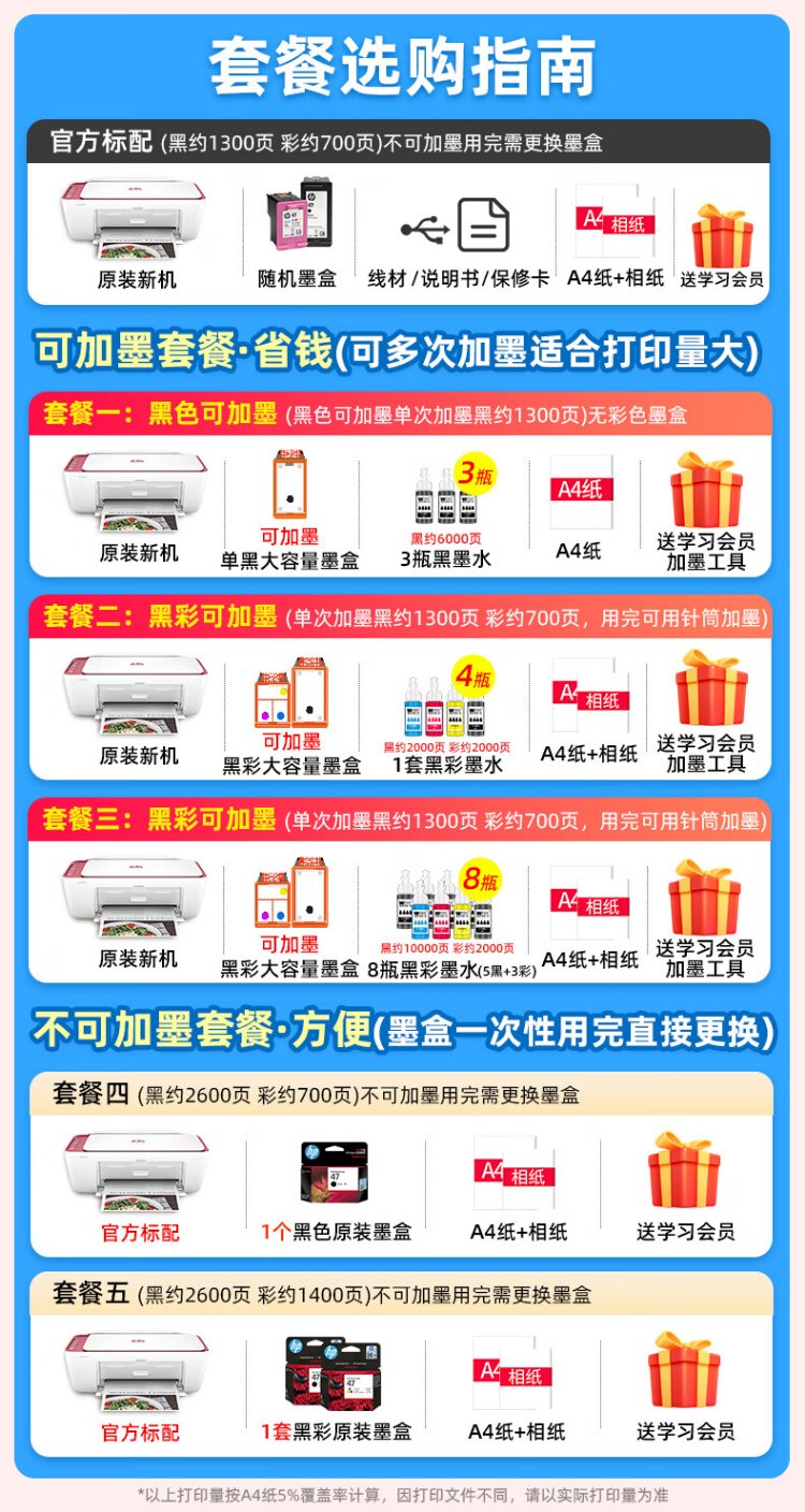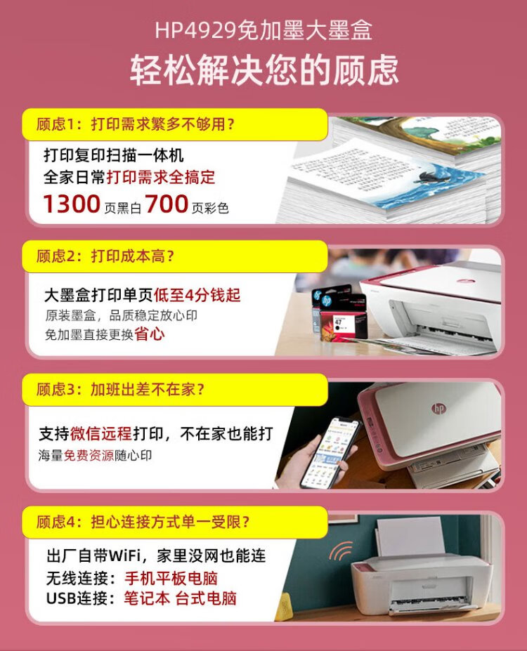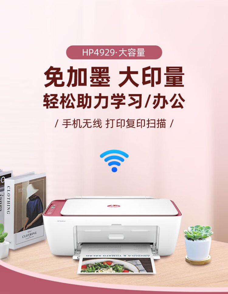 HP DJ4929 wireless color printing, copying and scanning all-in-one home homework test paper mobile phone connection large ink cartridge photo small student office A4 inkjet 4829 4929 set of three upgraded black color recyclable ink cartridge + black 5 color 3 ink