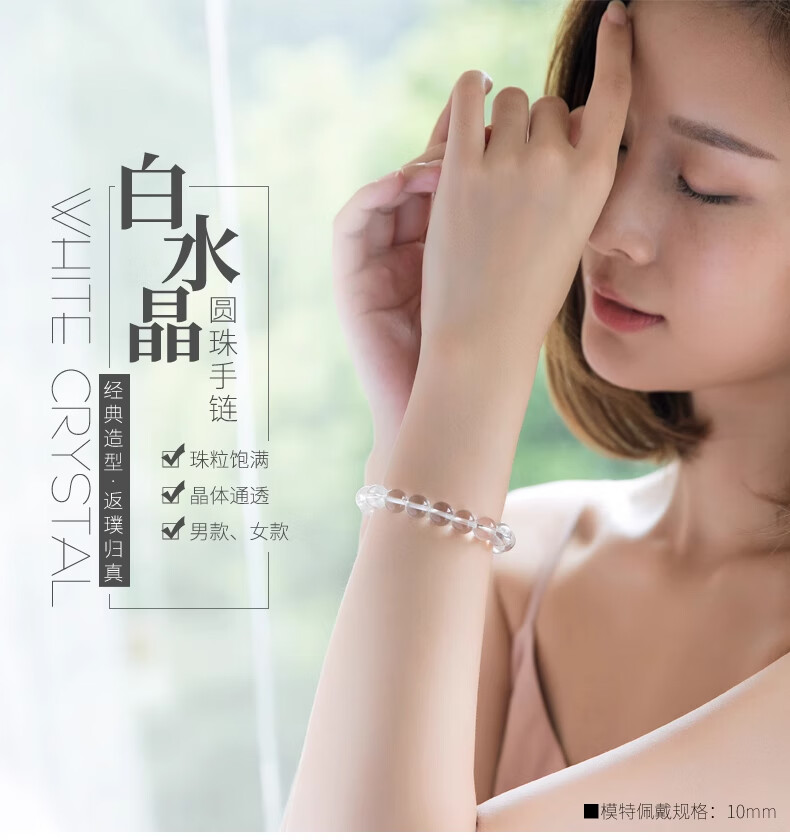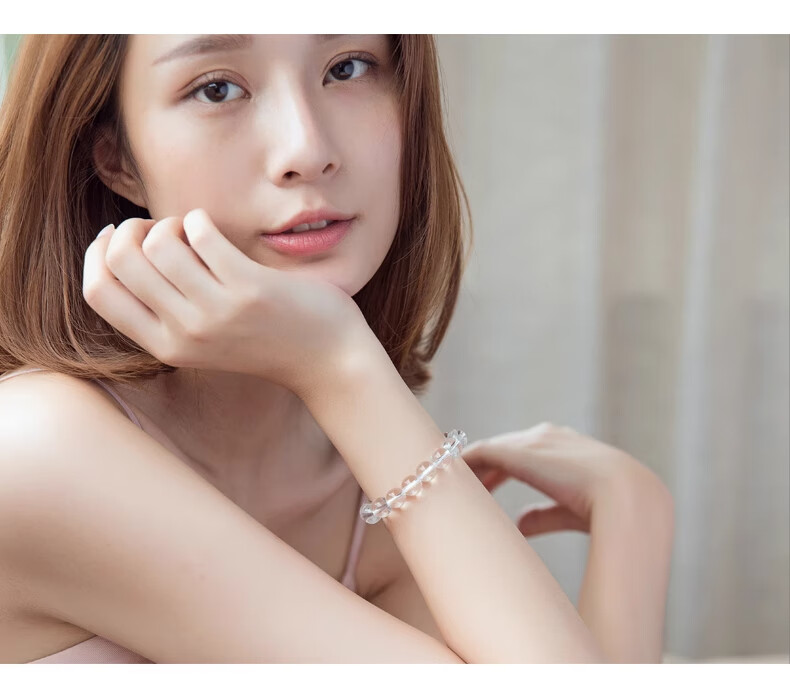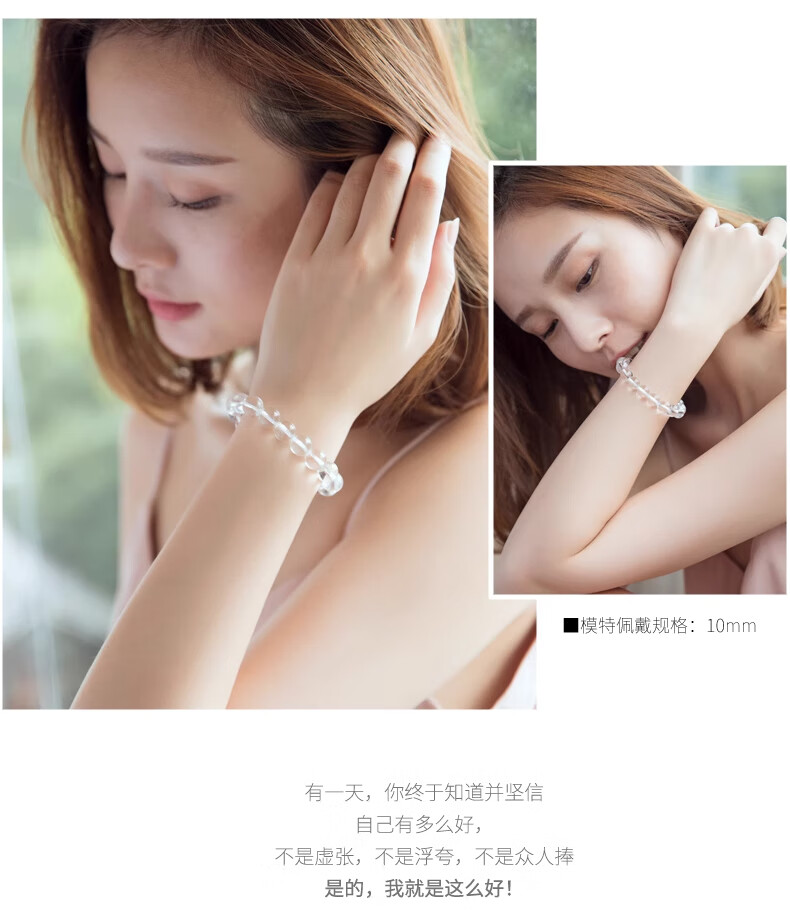 BOSFRU natural white crystal bracelet, ice seed raw stone, single circle transparent beads, loose bead bracelet, high-end gift for boyfriend and girlfriend, white crystal bracelet-10mm