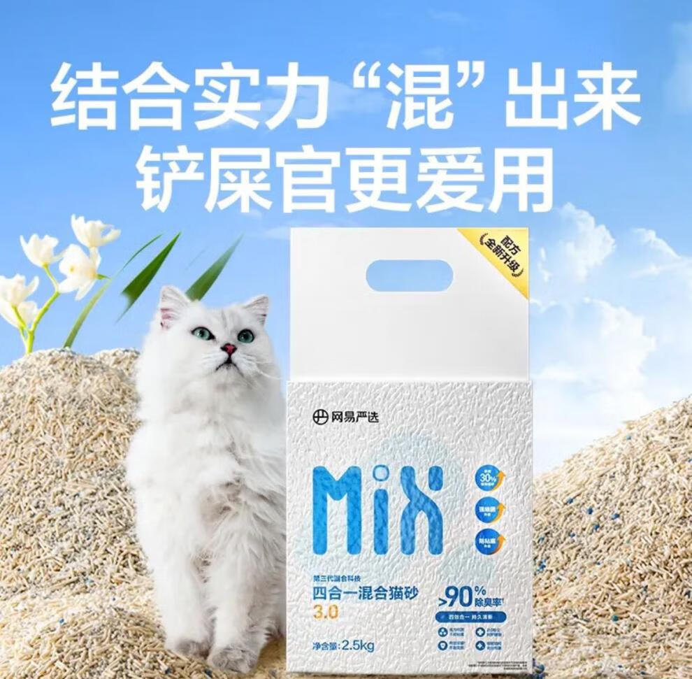 NetEase carefully selects Cat Litter 3.0 upgraded four-in-one dust-free high-efficiency clumping mixed cat litter that can be refilled with toilet swelling 3.0 mixed cat litter 2.5kgx4 bags
