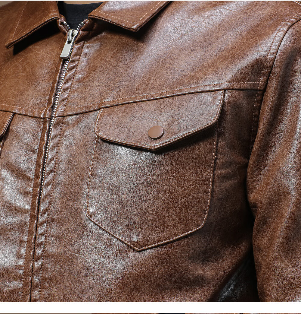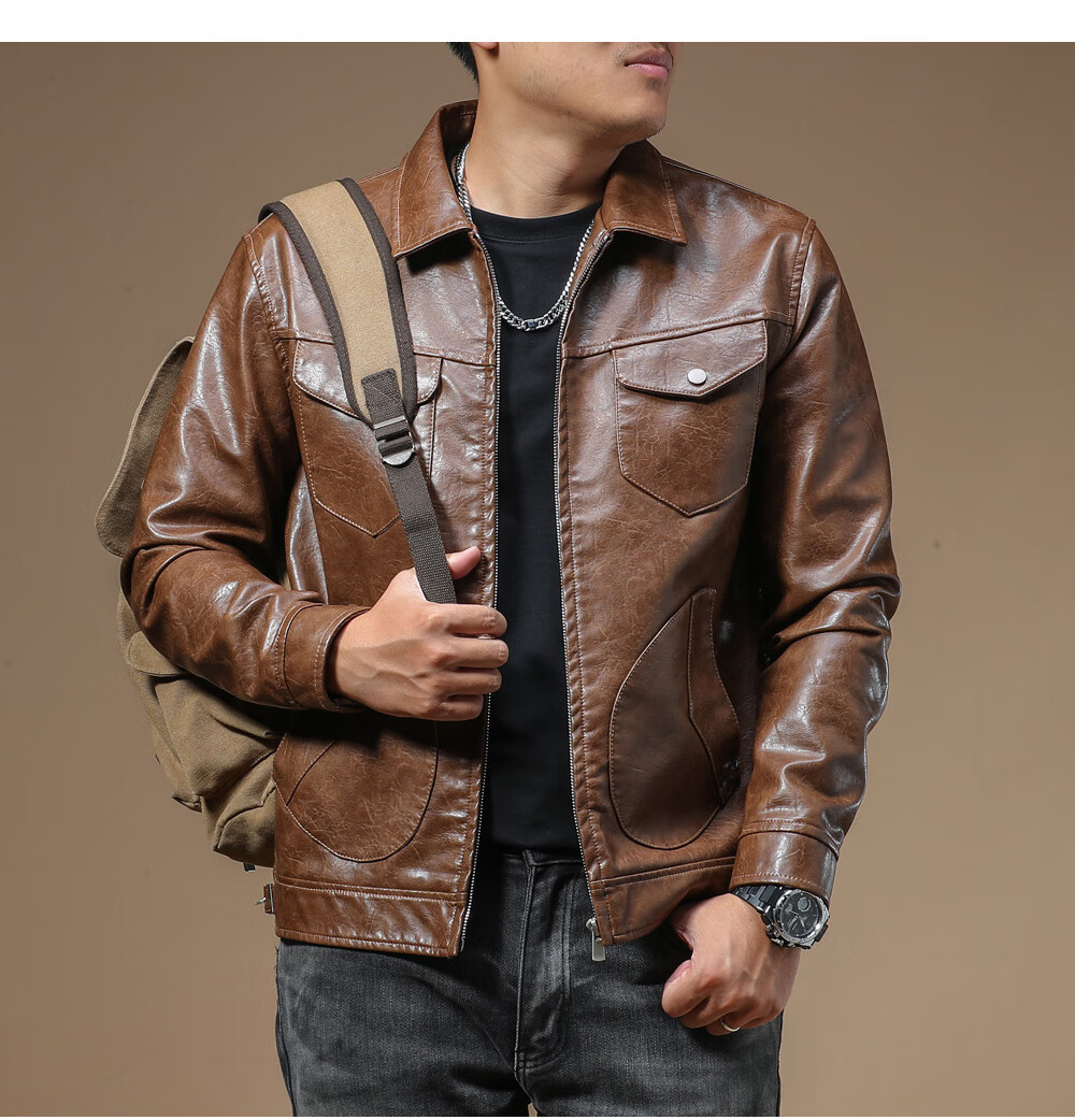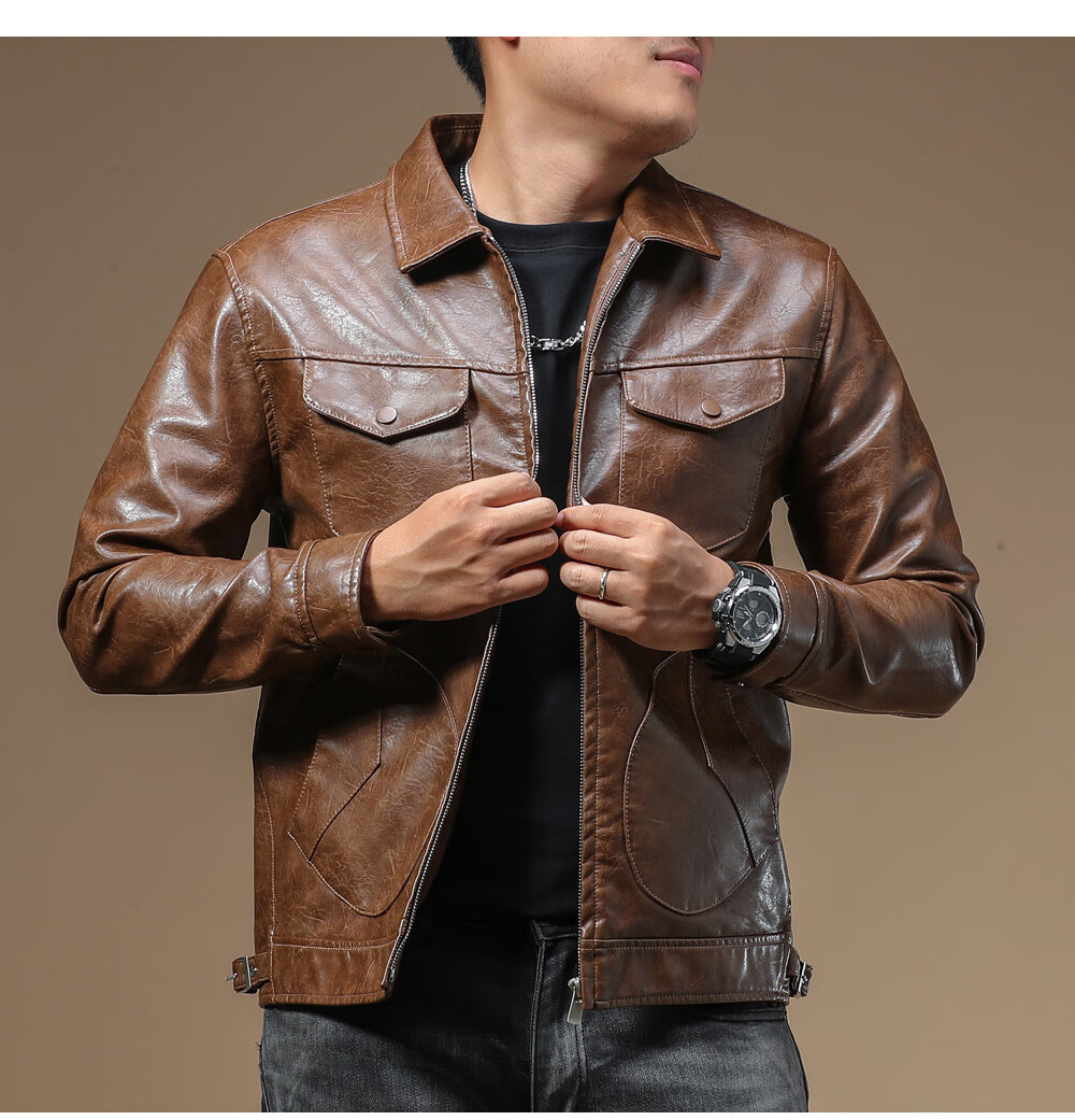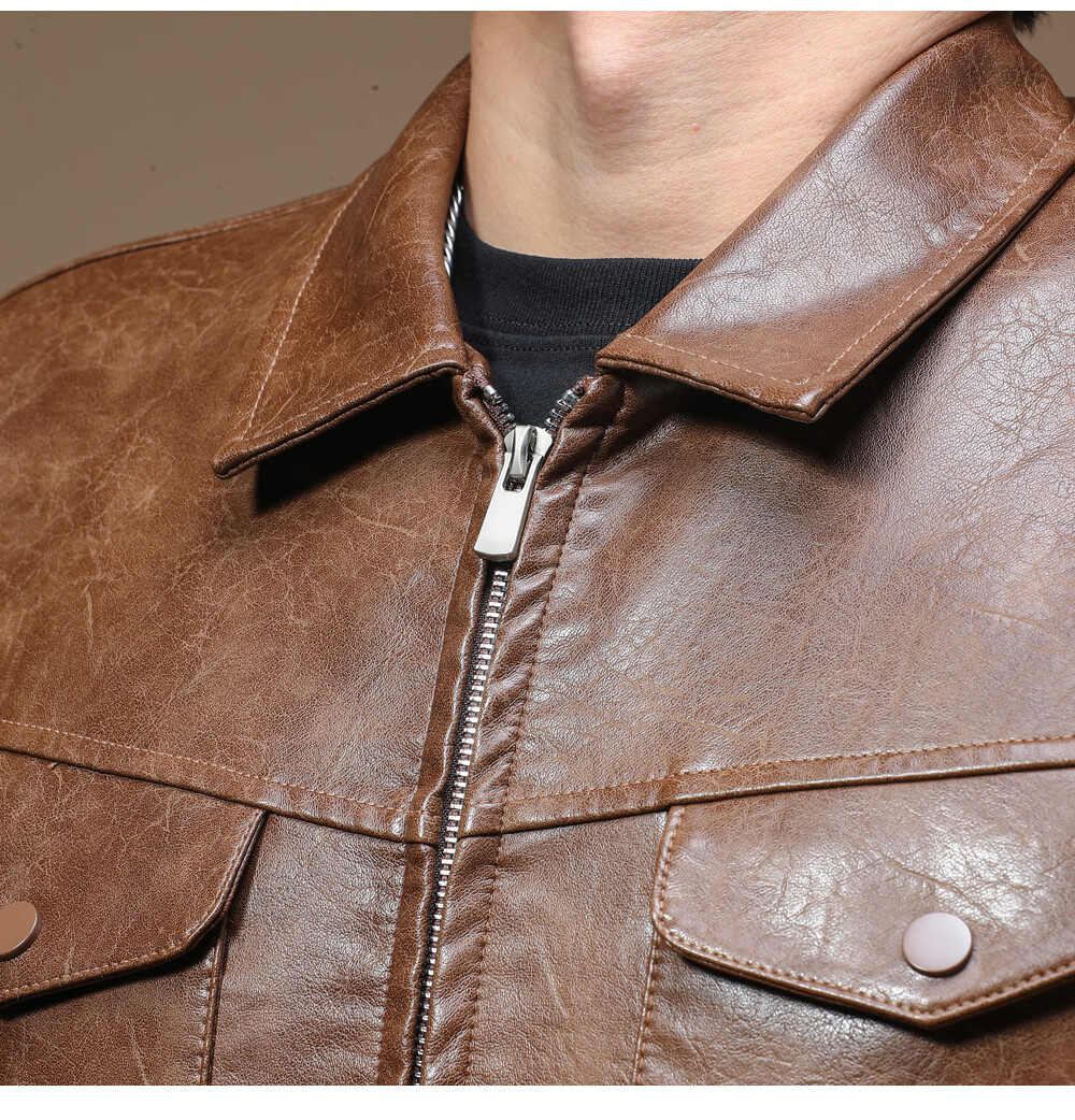 Ji Yan's high-end luxury jacket is trendy and handsome for men. American retro casual lapel leather jacket for men in spring and autumn with a high-end feel. Brown M