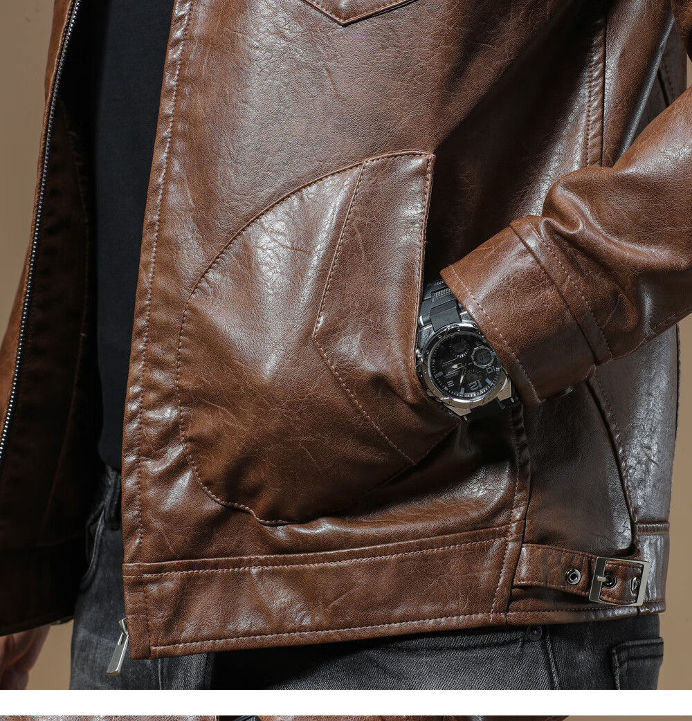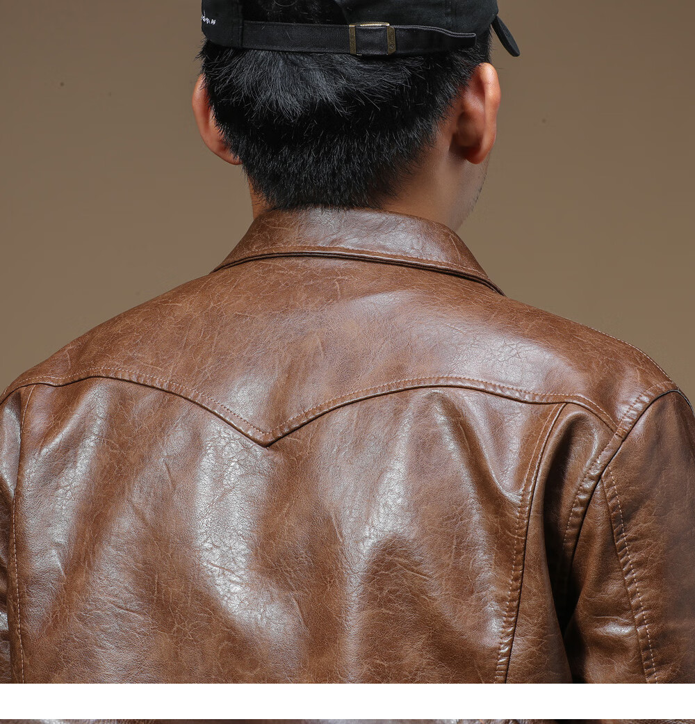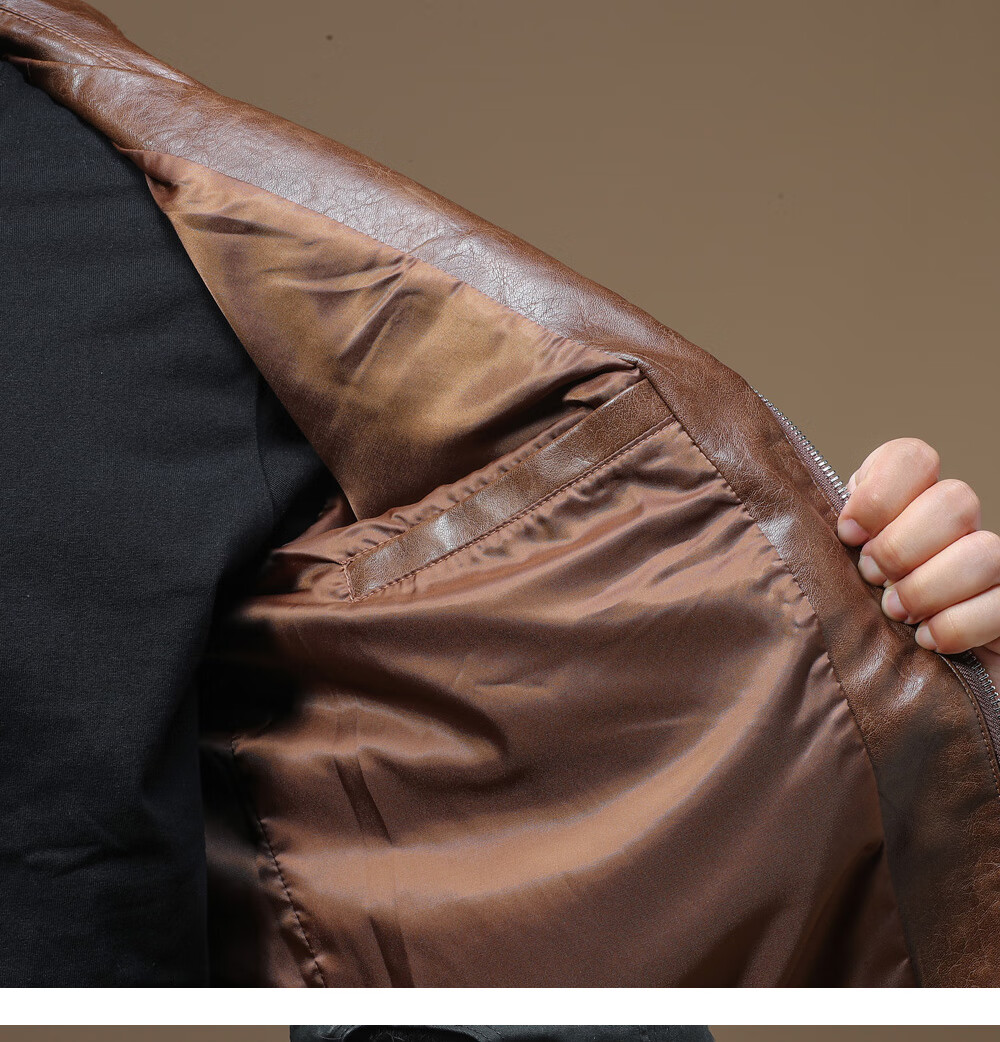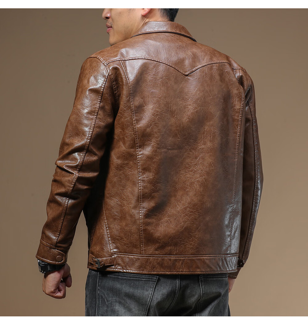 Ji Yan's high-end luxury jacket is trendy and handsome for men. American retro casual lapel leather jacket for men in spring and autumn with a high-end feel. Brown M
