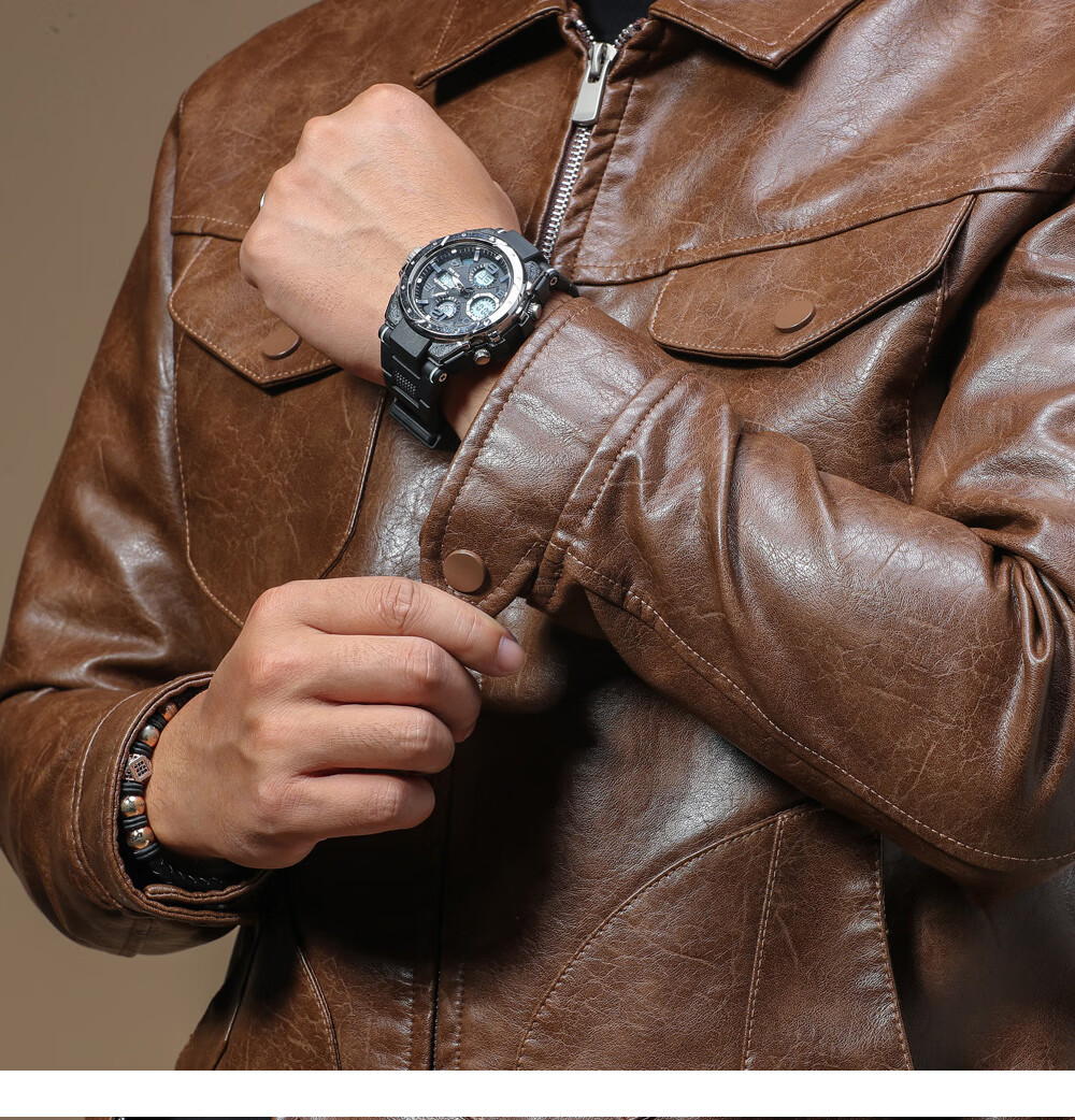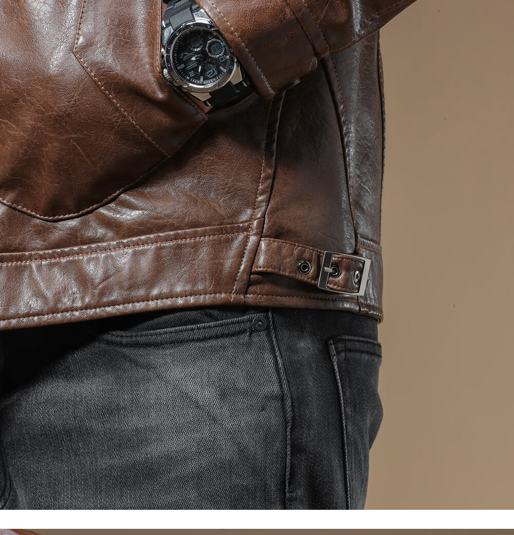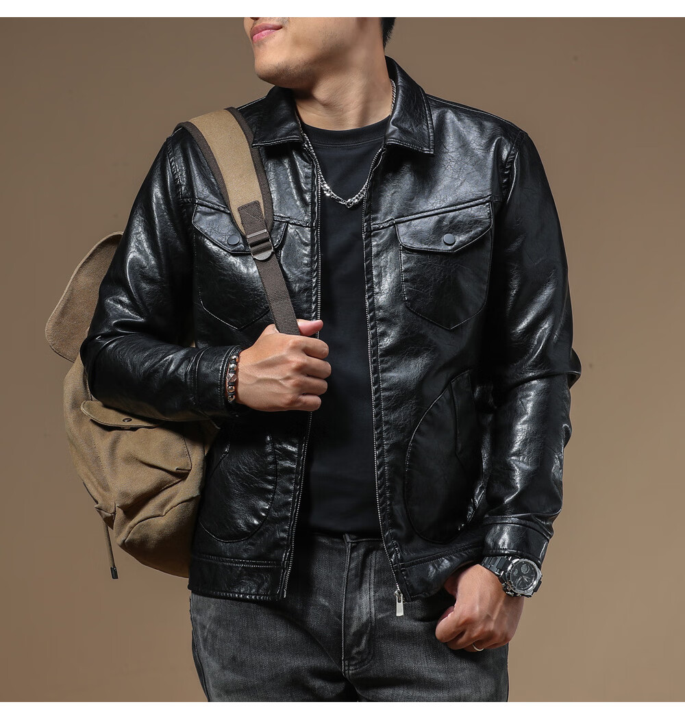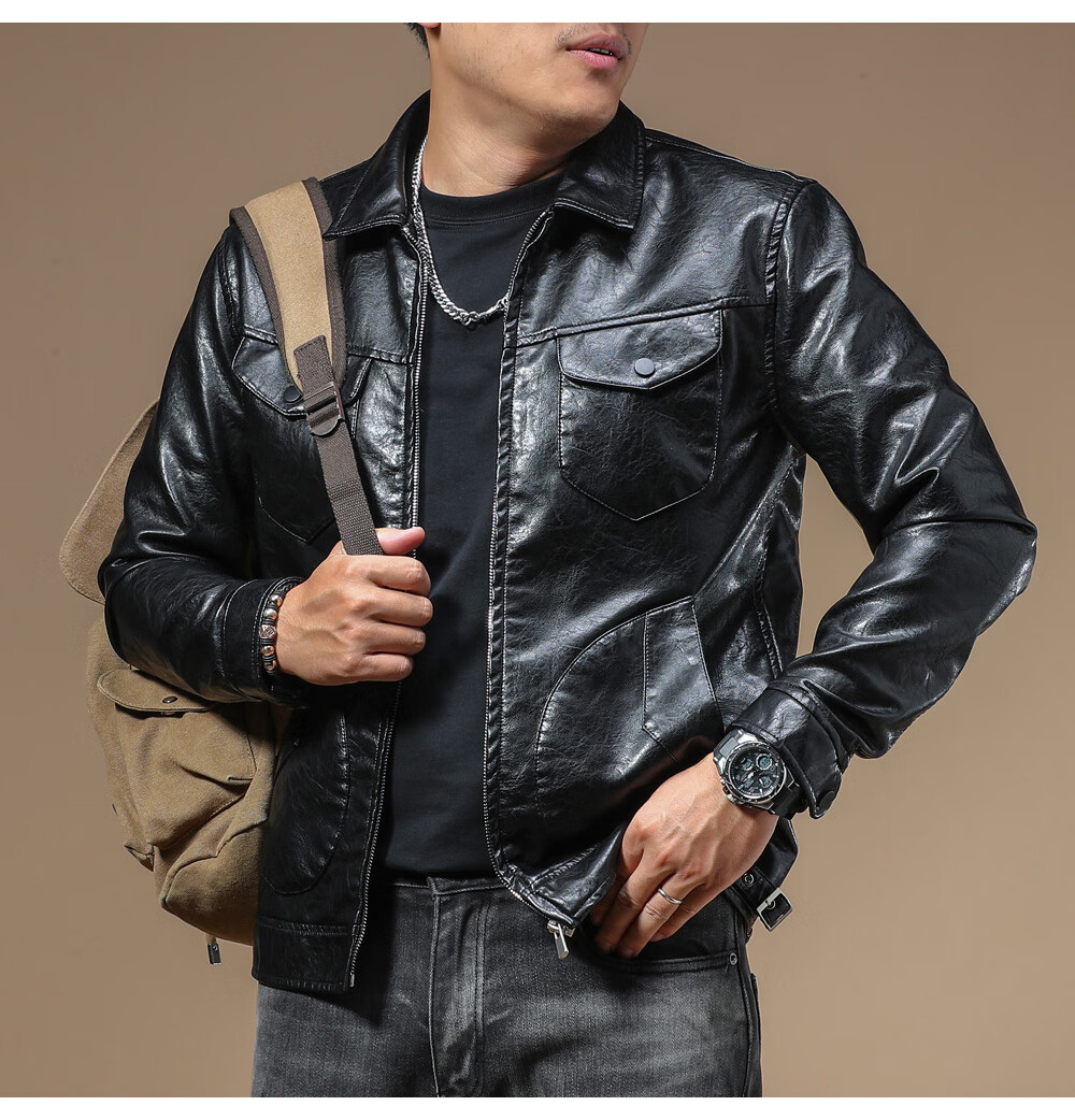 Ji Yan's high-end luxury jacket is trendy and handsome for men. American retro casual lapel leather jacket for men in spring and autumn with a high-end feel. Brown M