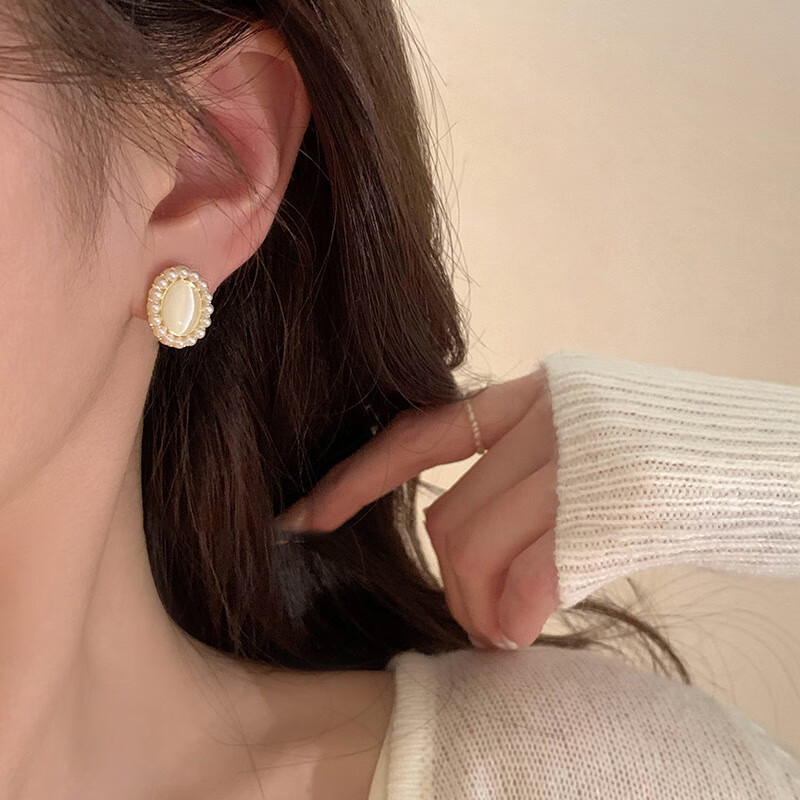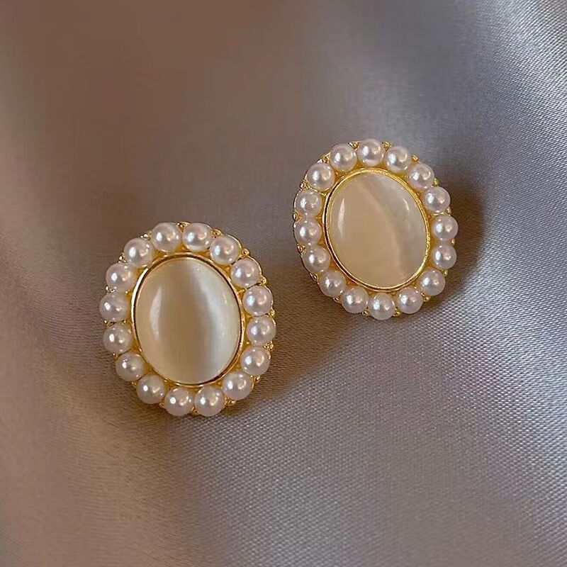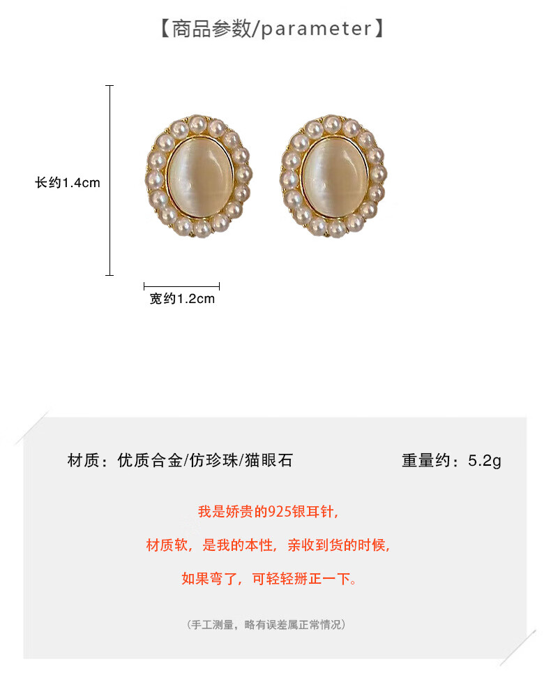 S925 silver needle cat's eye pearl earrings for women niche design earrings 2023 new light luxury earrings main picture