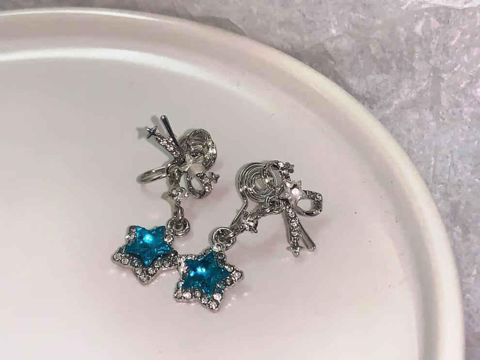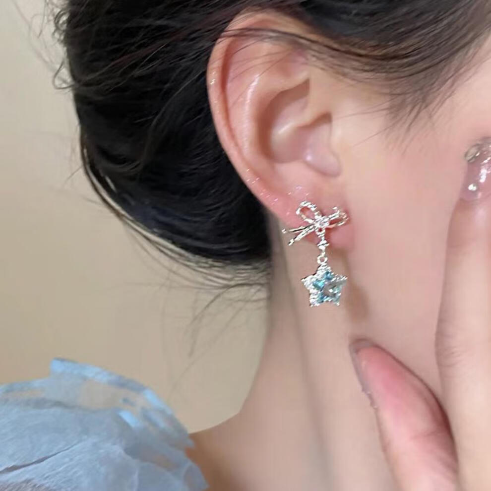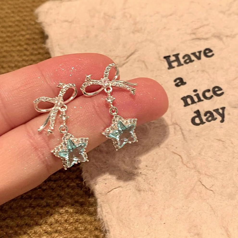 S925 silver needle bow bright diamond earrings fresh and sweet five-pointed star earrings niche design earrings for women s925 silver needle full diamond star earrings
