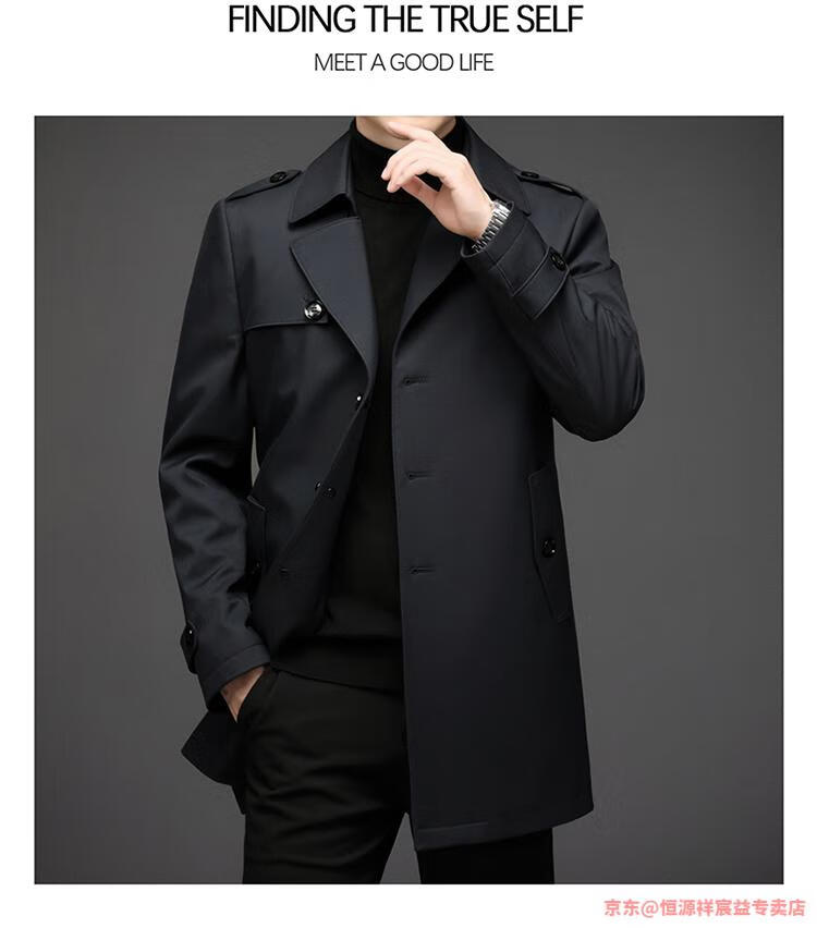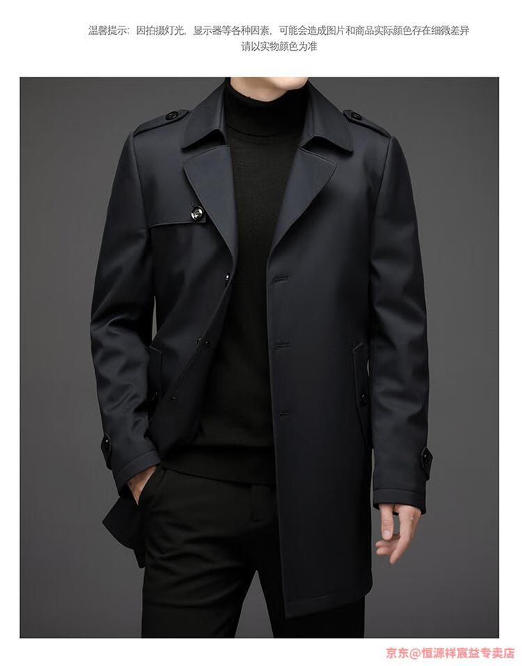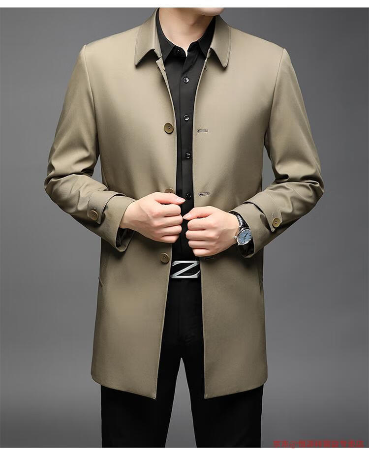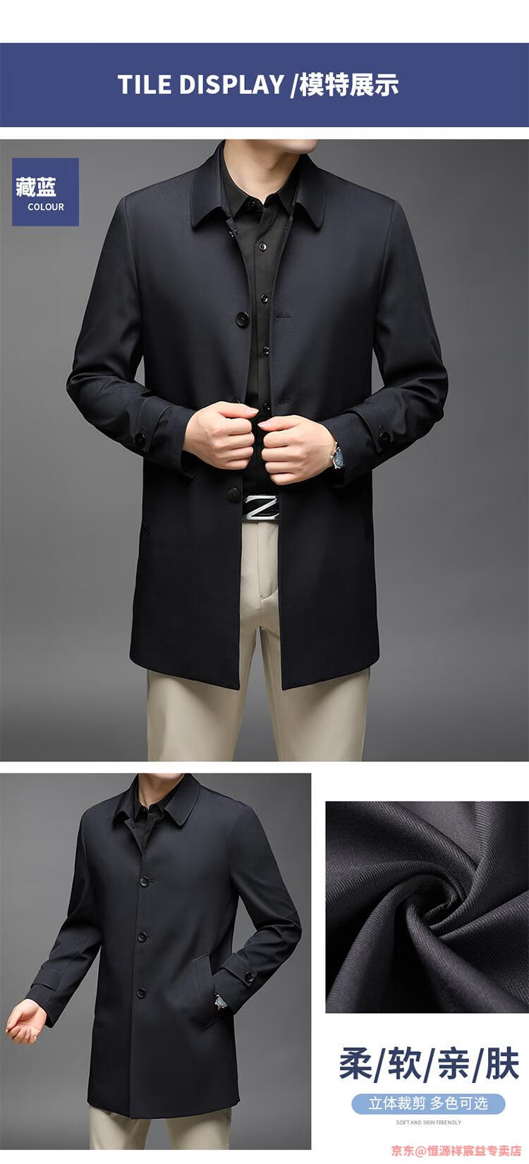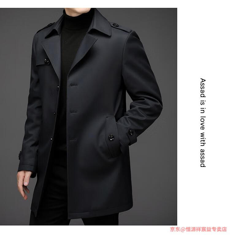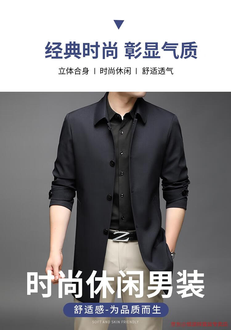 Hengyuanxiang Men's Windbreaker Medium Long Executive Suit Collar Spring and Autumn Middle-aged Dad's Thin Jacket Single Clothes Black (Suit Cloth Single Clothes) M 170