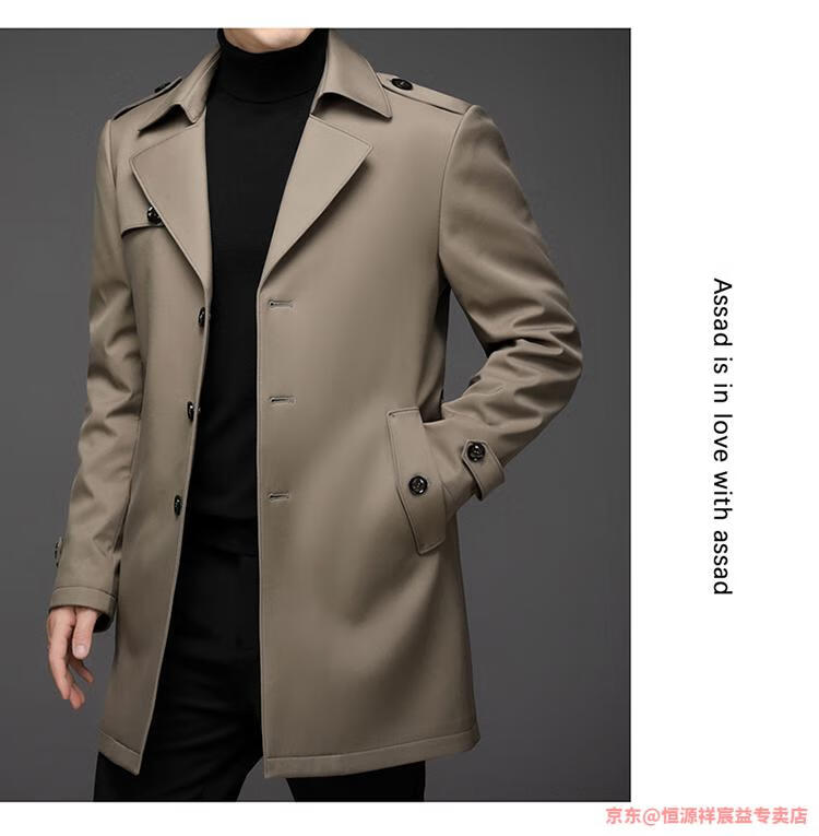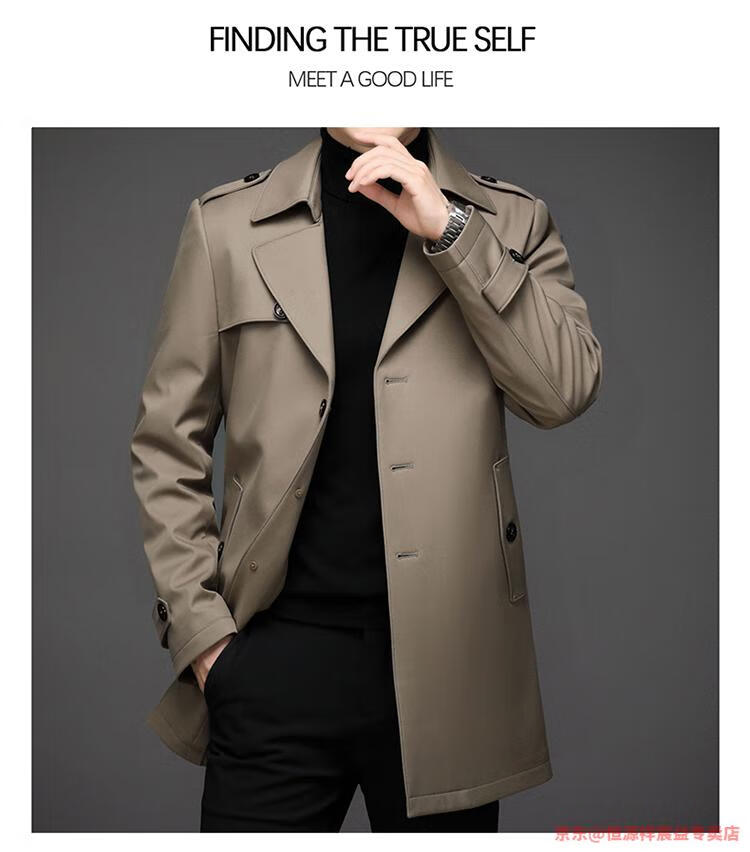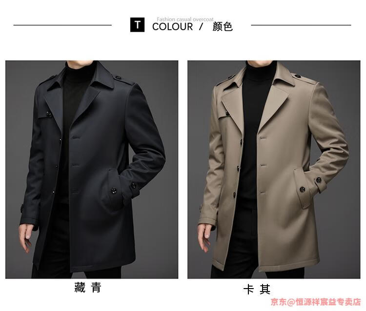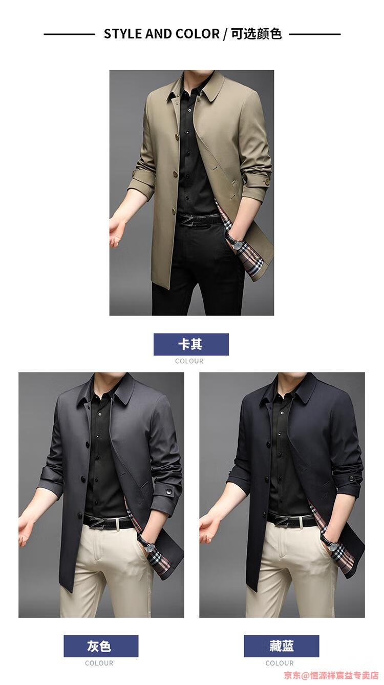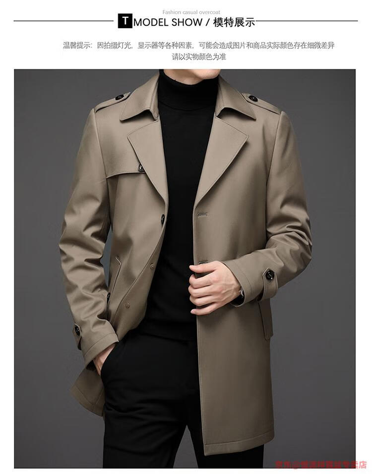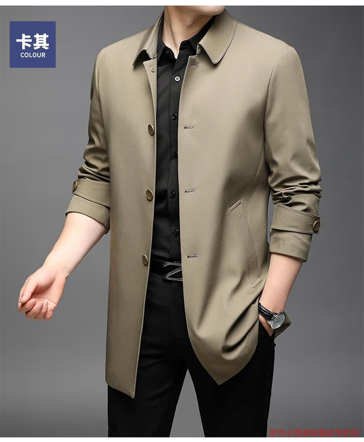 Hengyuanxiang Men's Windbreaker Medium Long Executive Suit Collar Spring and Autumn Middle-aged Dad's Thin Jacket Single Clothes Black (Suit Cloth Single Clothes) M 170
