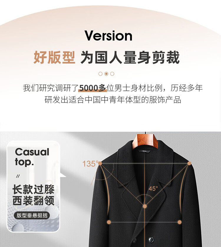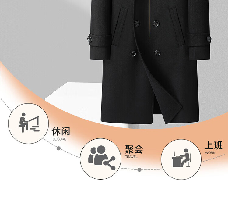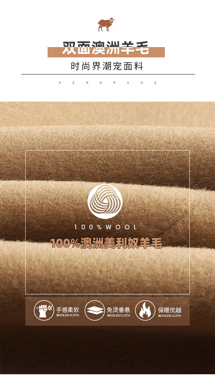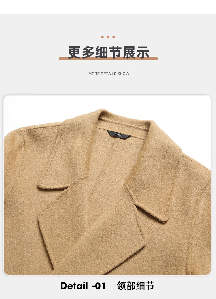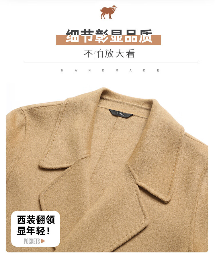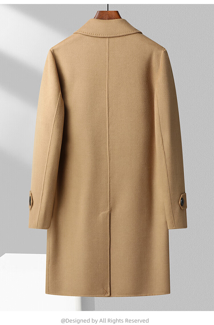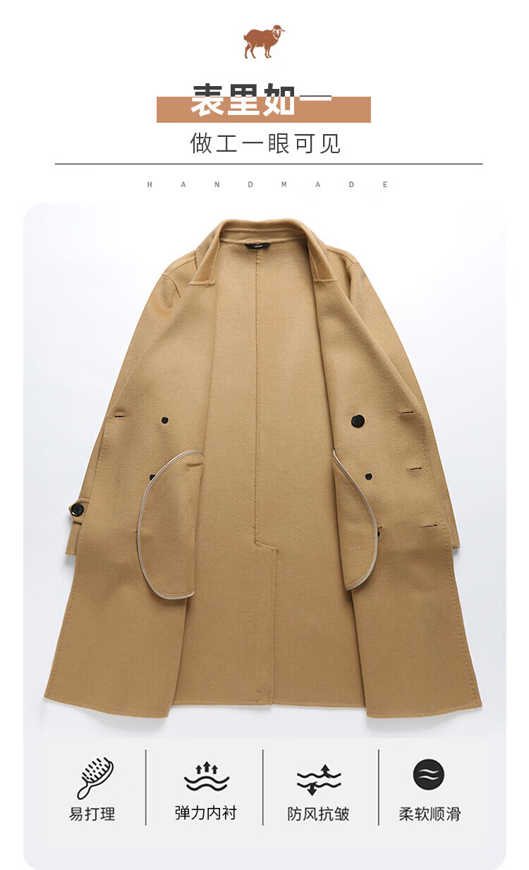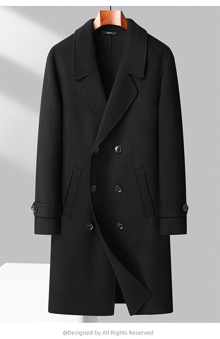 Hengyuanxiang double-sided woolen coat for men 24 autumn and winter new fashion pure handmade double-breasted long anti-wrinkle non-iron black 170