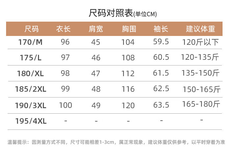 China (cm) 165 / 88-90 170 / 96-98 175 / 108-110 180 / 118-122 185 / 126-130