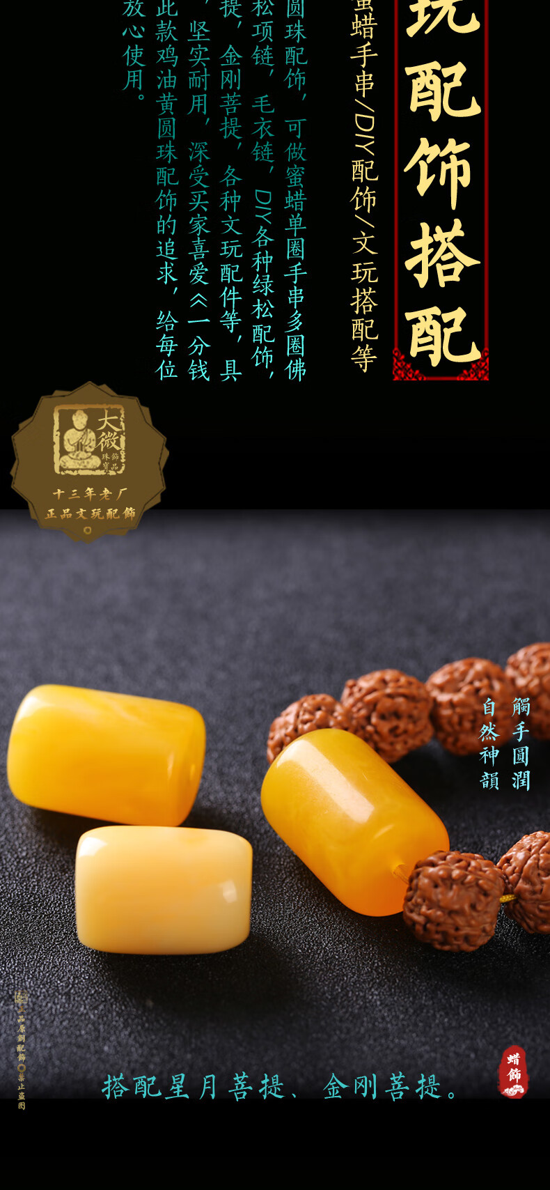 Fat Donglai's Valentine's Day gift, beeswax single bead bucket beads second generation single top bead bracelet with chicken fat yellow bucket beads 16*21mm/single