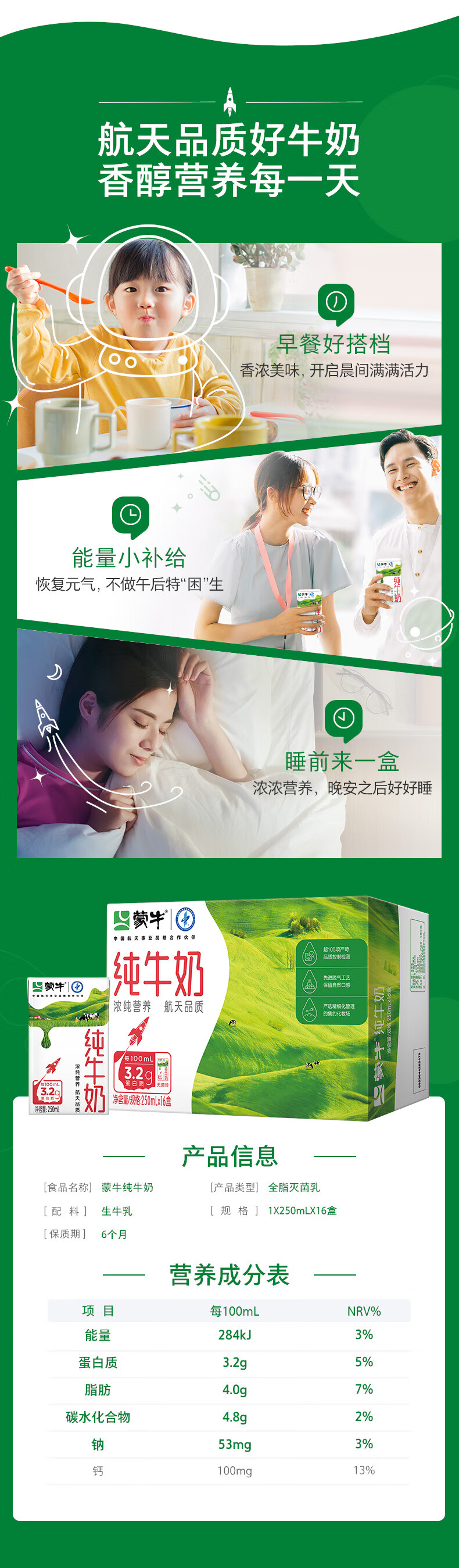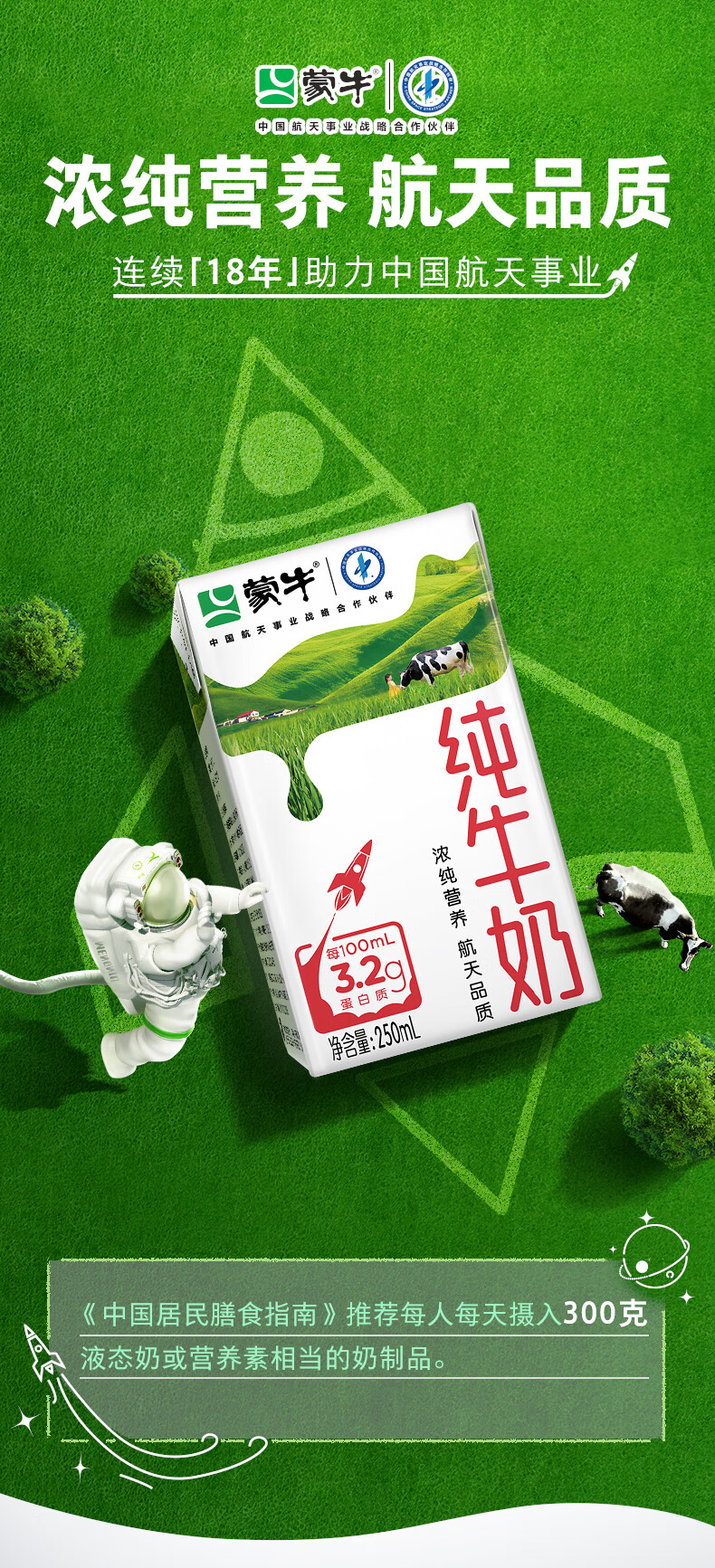 Mengniu (MENGNIU) Mengniu whole milk pure milk box 250ml*16 boxes aerospace quality 2 pieces Mengniu pure milk