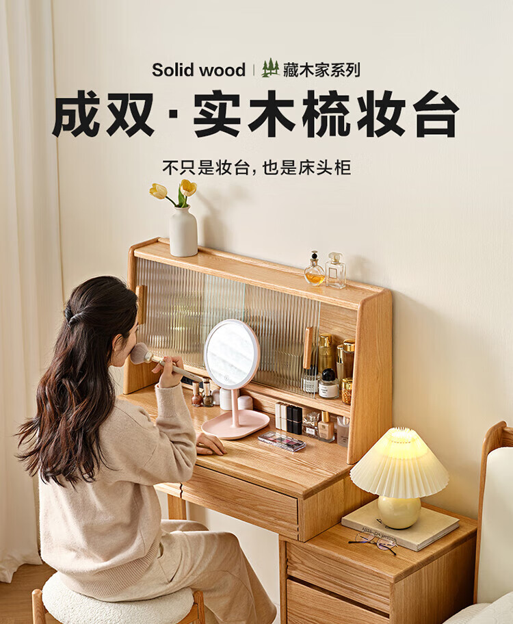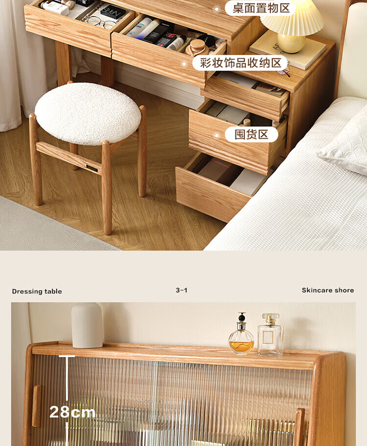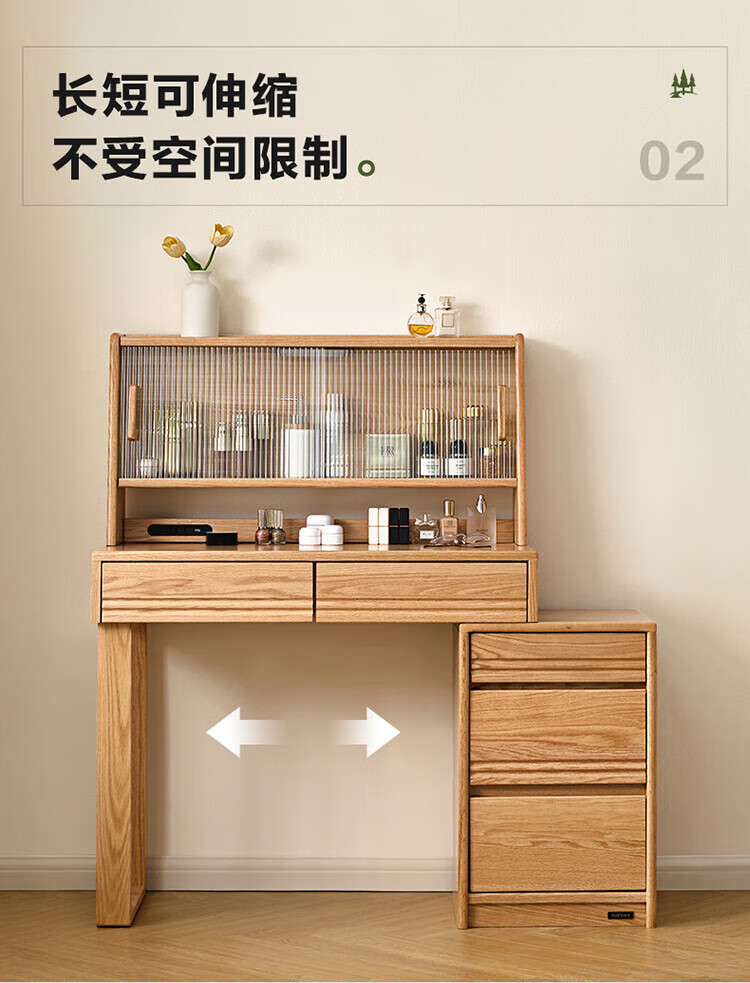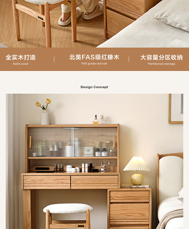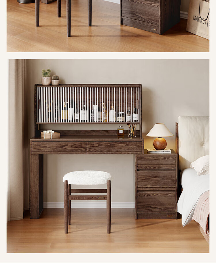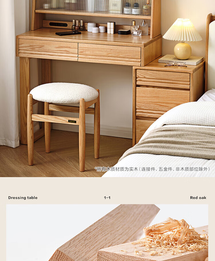 Quanyou (QUANU) home multifunctional solid wood retractable dressing table integrated bedroom bedside table desk cosmetics storage cabinet red oak 0.9m dressing table A + makeup stool A