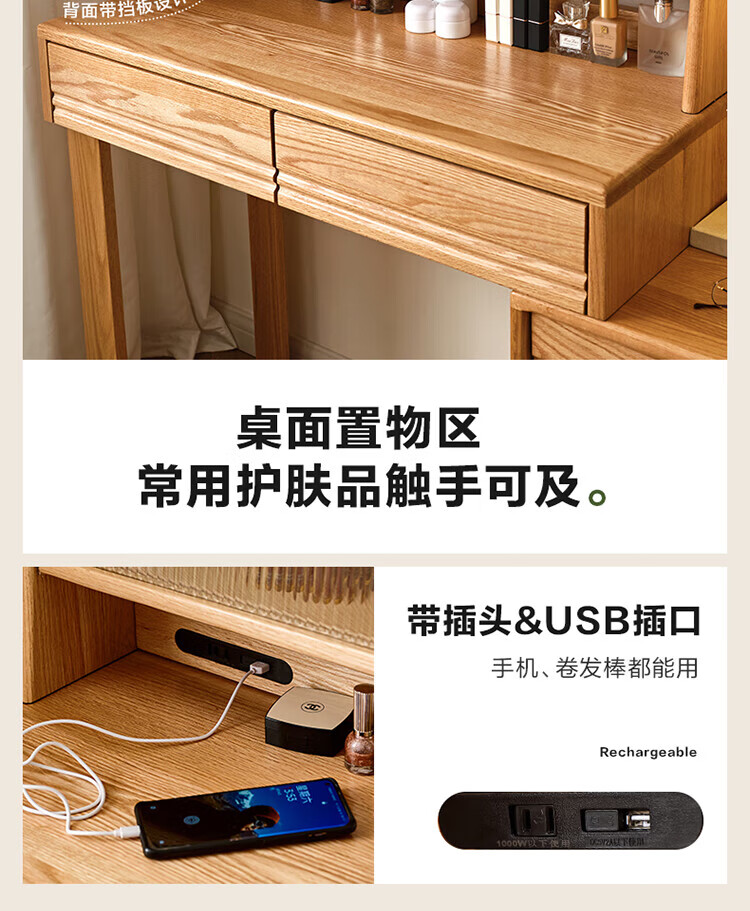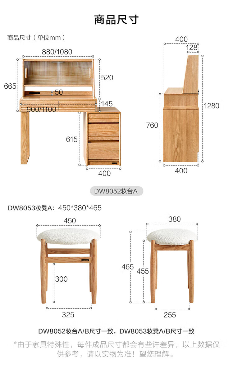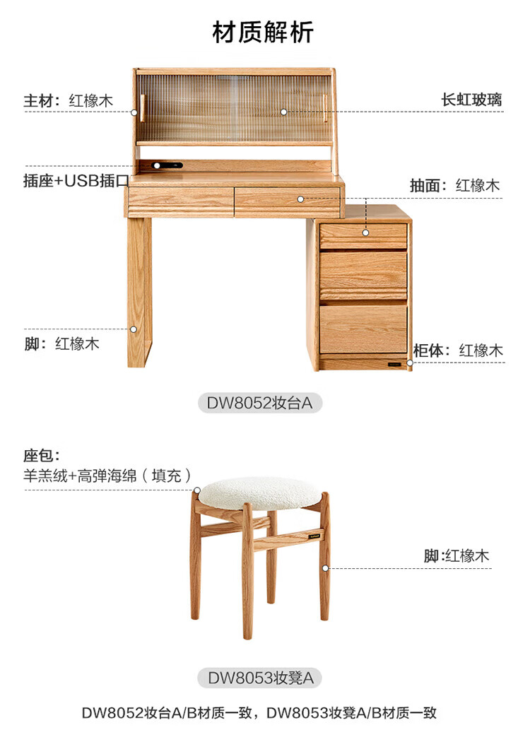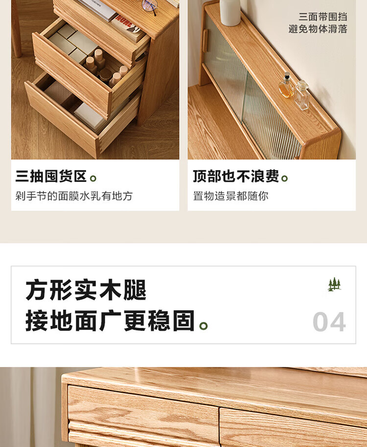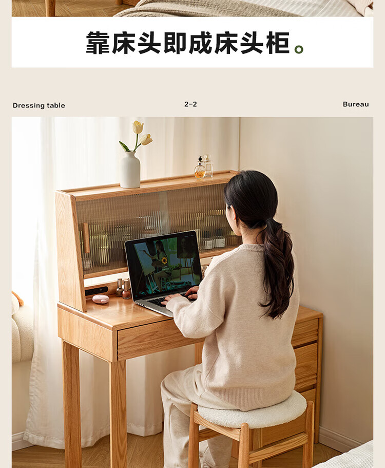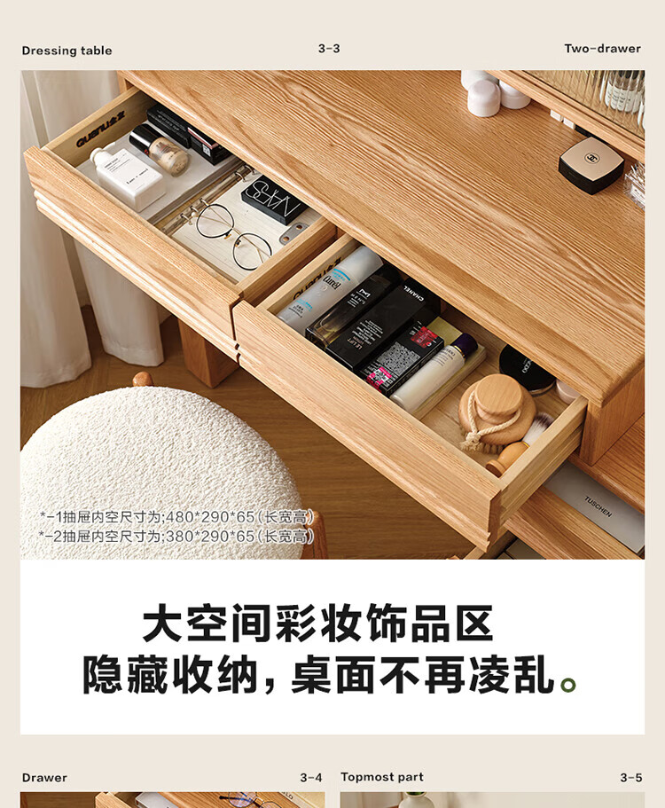 Quanyou (QUANU) home multifunctional solid wood retractable dressing table integrated bedroom bedside table desk cosmetics storage cabinet red oak 0.9m dressing table A + makeup stool A